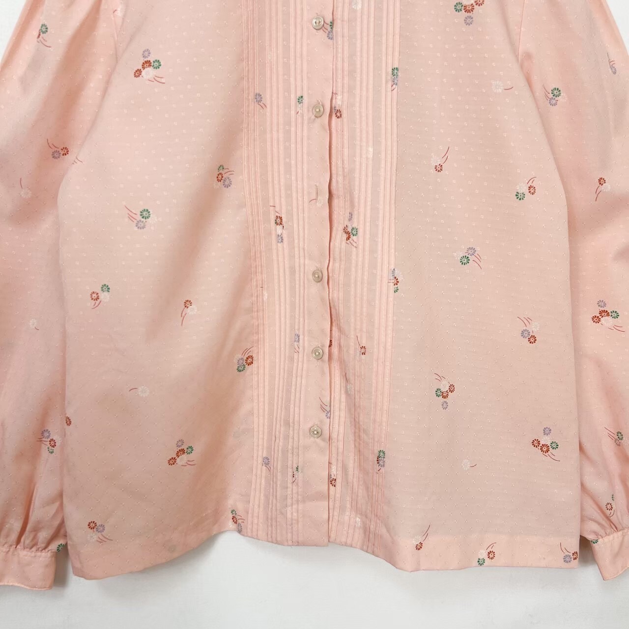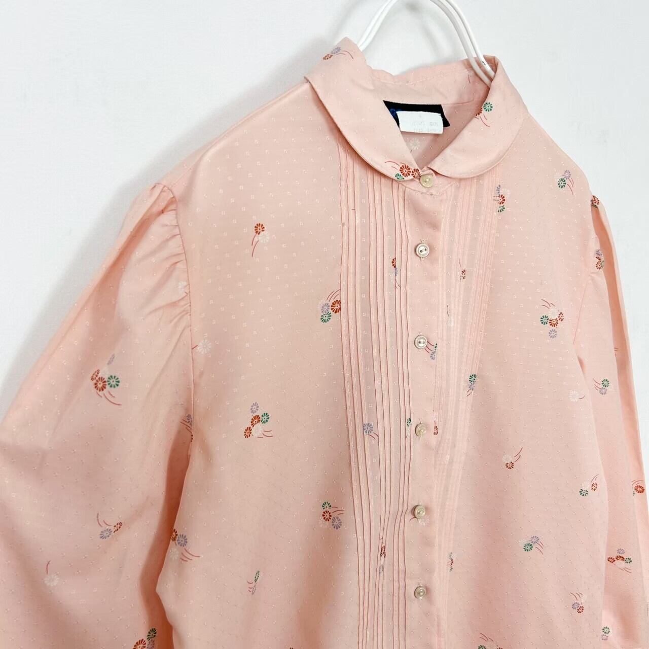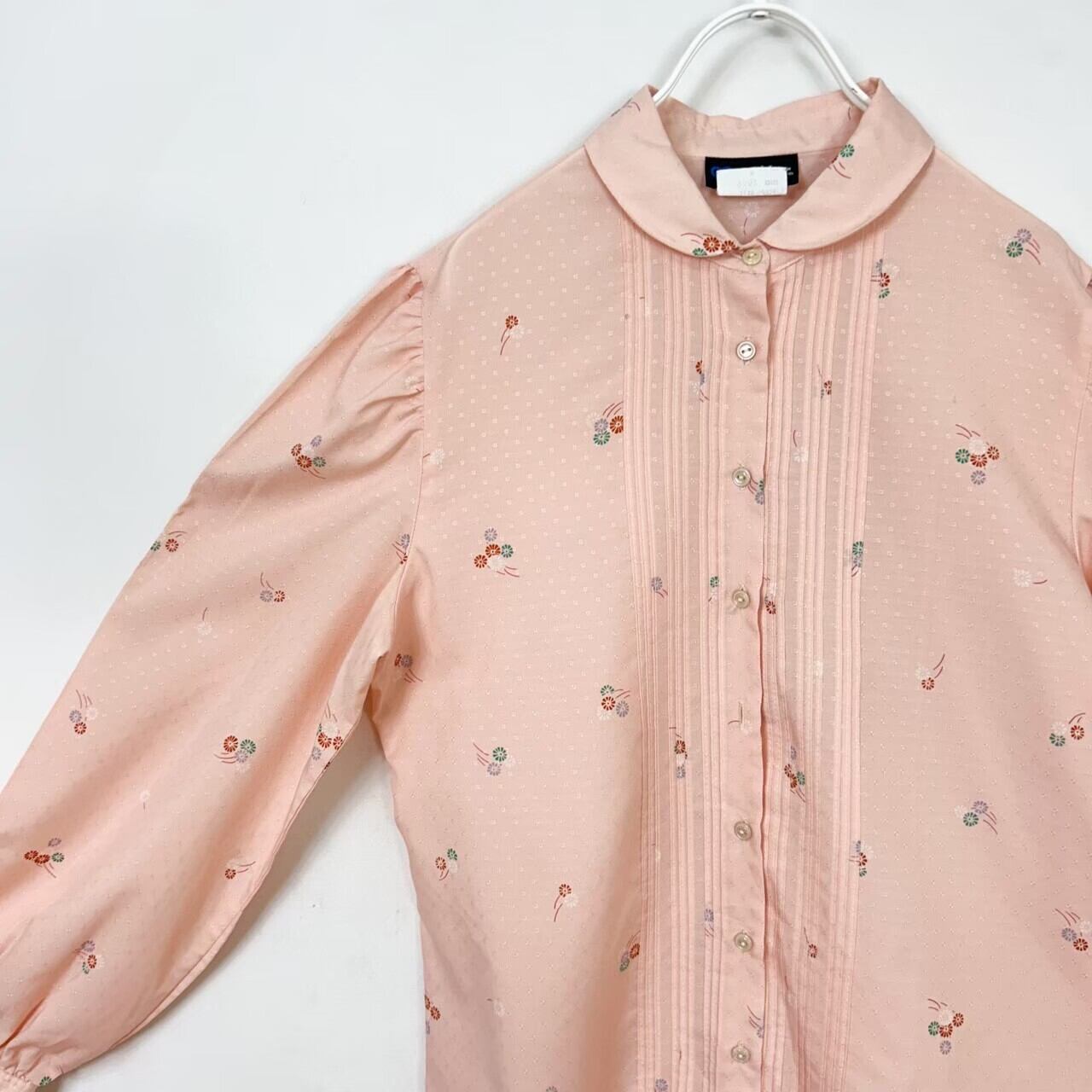 ヴィンテージ 80s 丸襟 和柄 花柄 ピンタック 長袖 シャツ ブラウス トップス