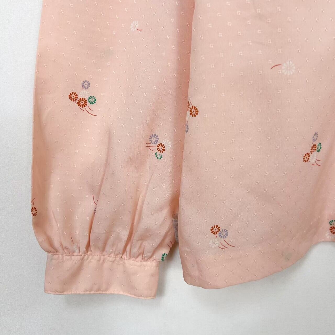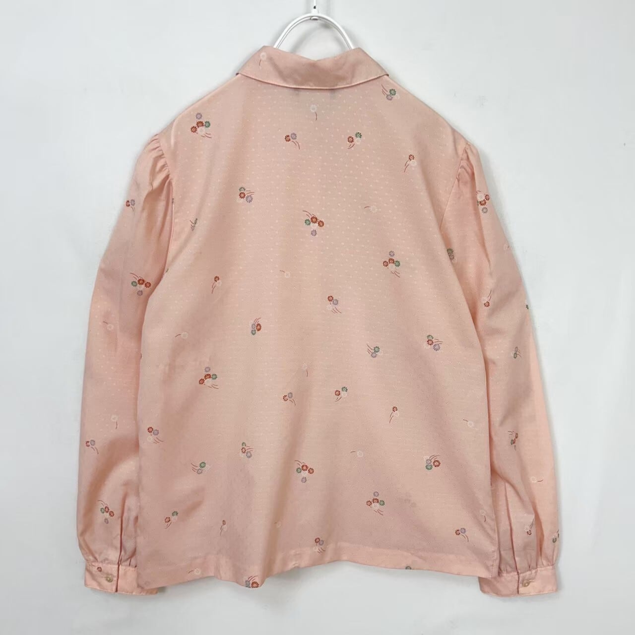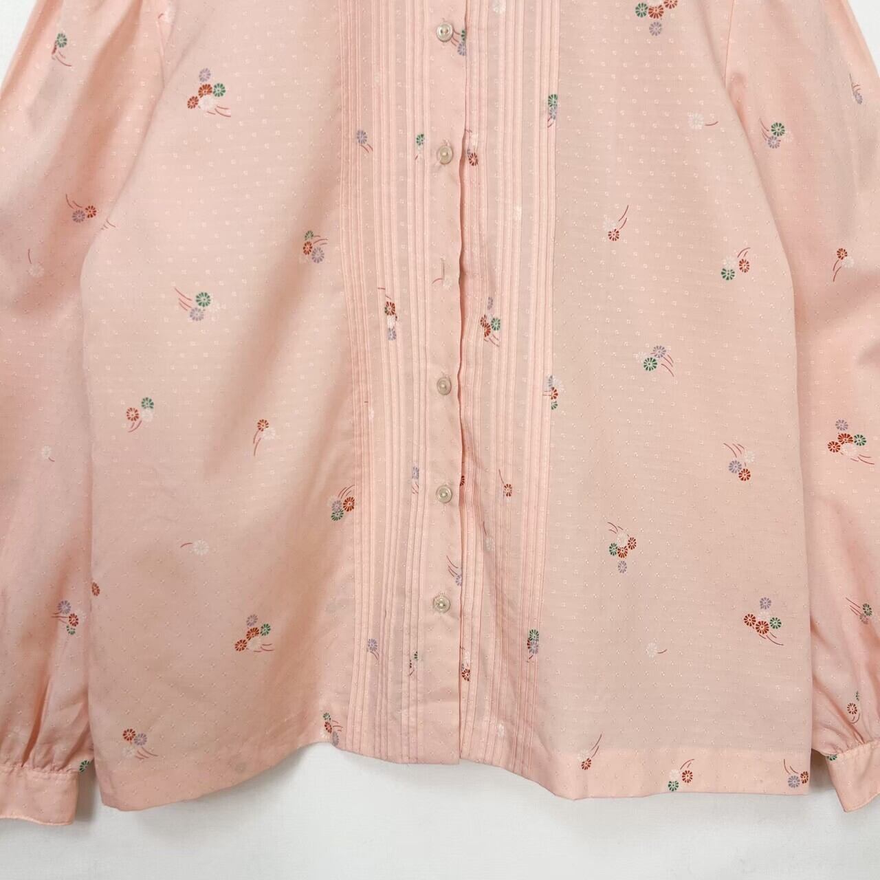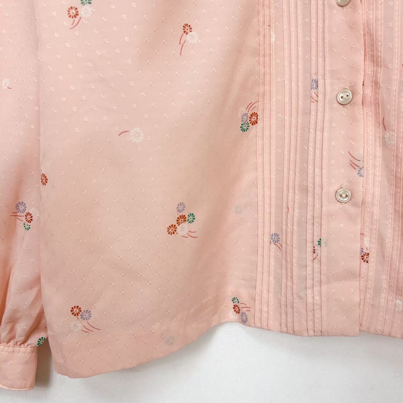 ヴィンテージ 80s 丸襟 和柄 花柄 ピンタック 長袖 シャツ ブラウス トップス