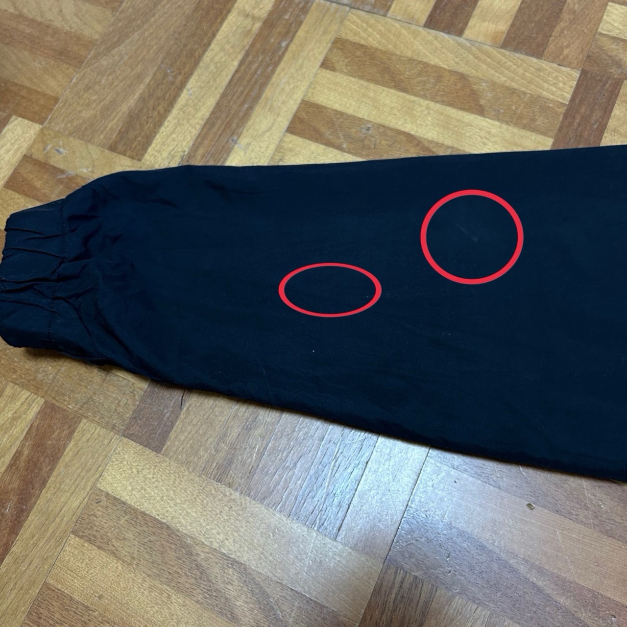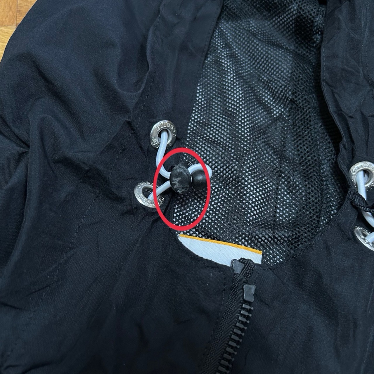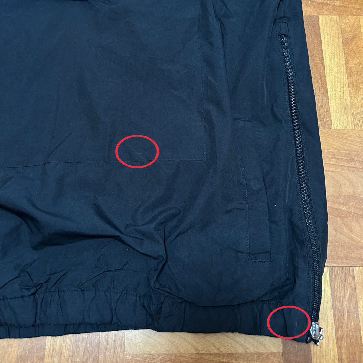 右フードの金具ダメージあり。右袖、フロントポケット下、左裾、バック裾、腰に薄汚れ数カ所あり。