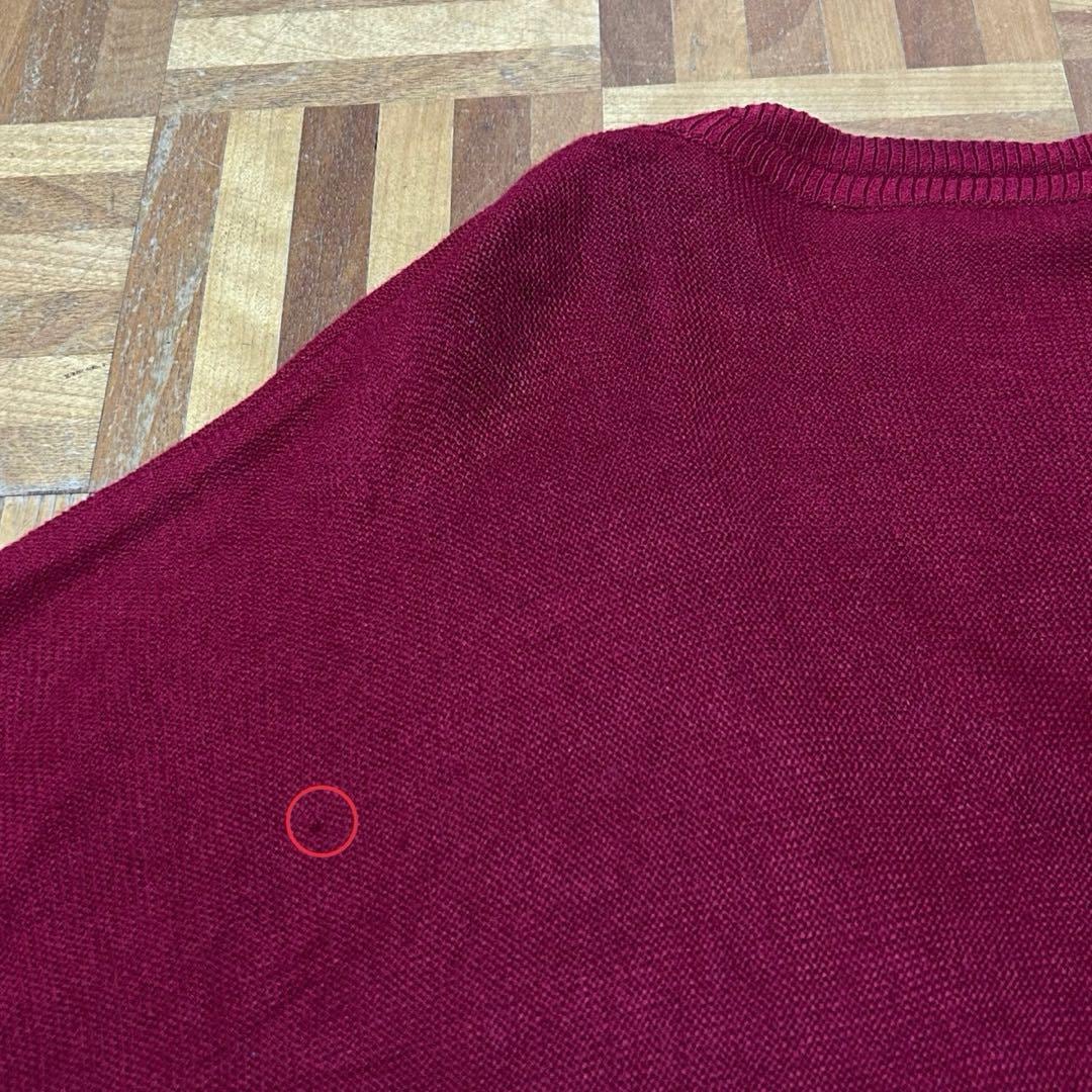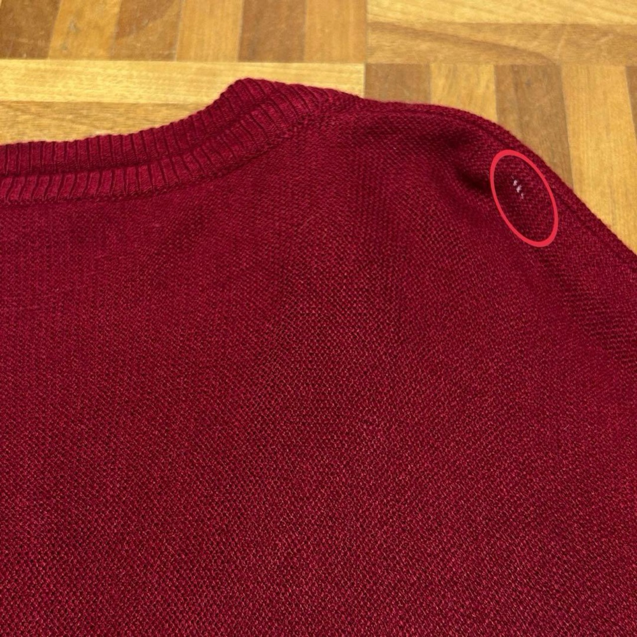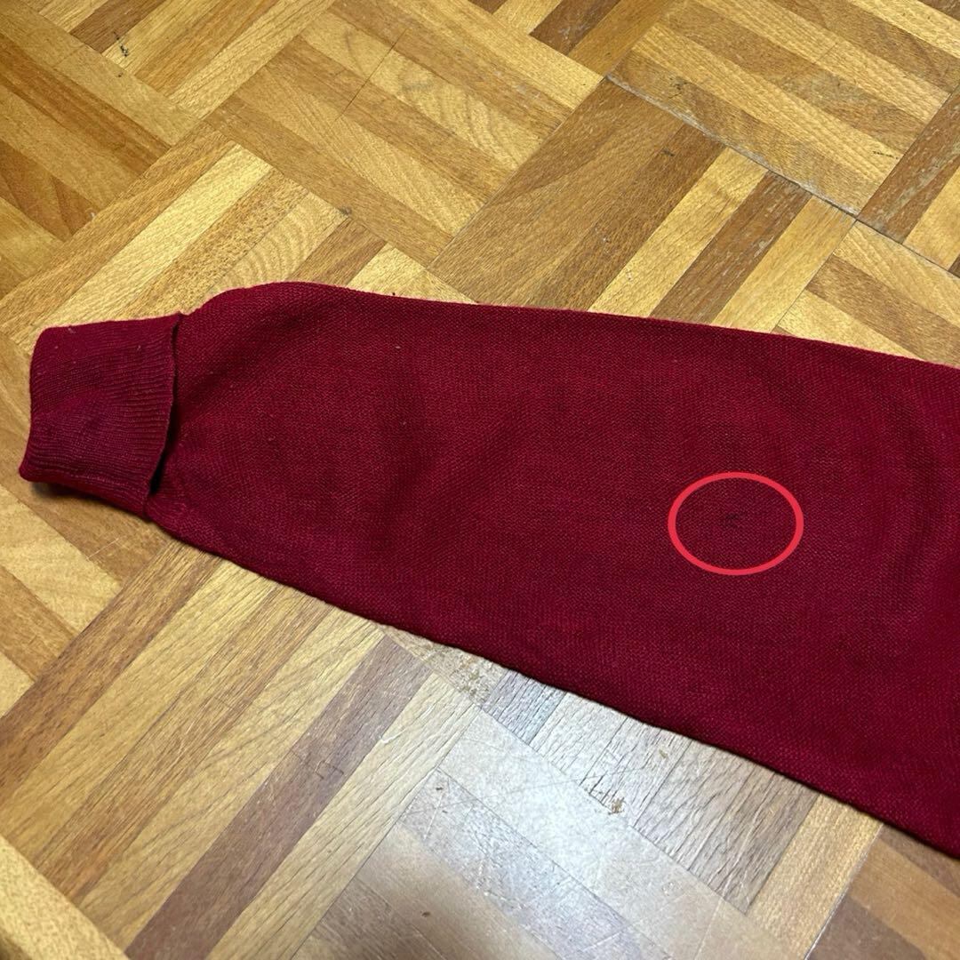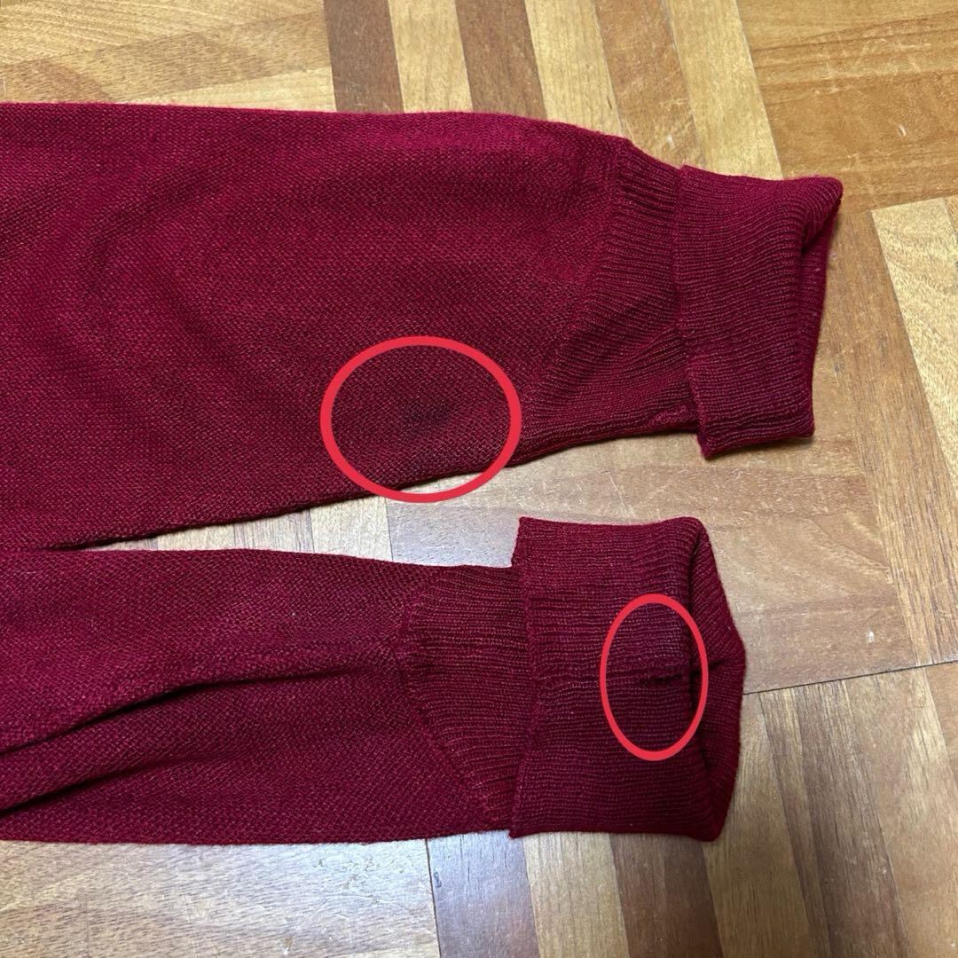 袖、右胸、左胸下、バック右肩に薄汚れ数カ所あり。右袖先1.5㎝程度のダメージあり。バック左肩下糸引けあり。