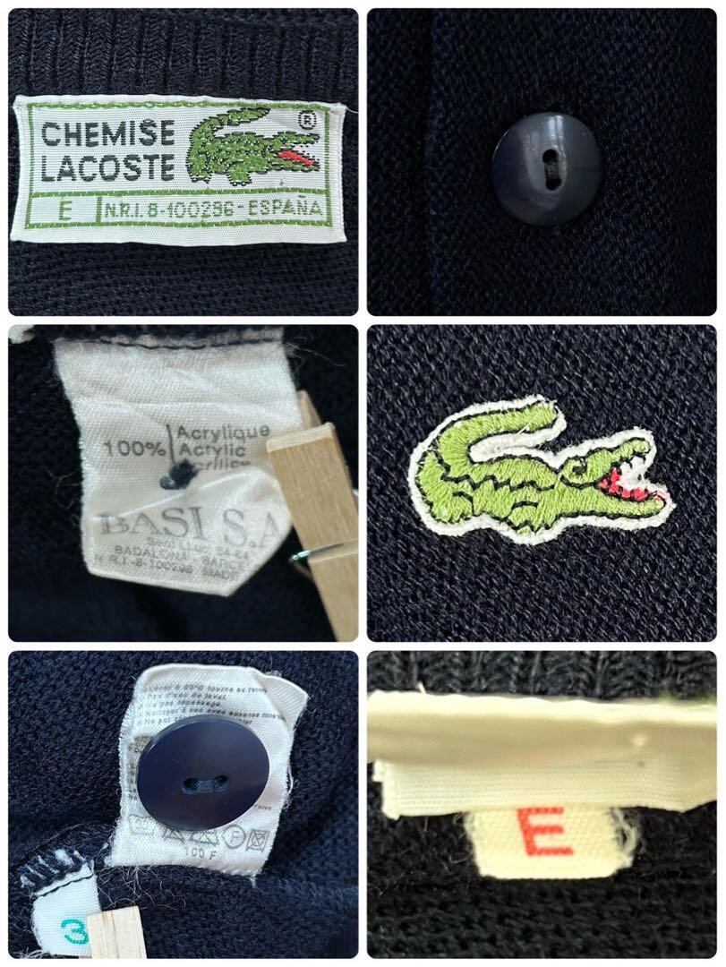 70s 80s スペイン製 CHEMISE LACOSTE アクリルニットカーディガン