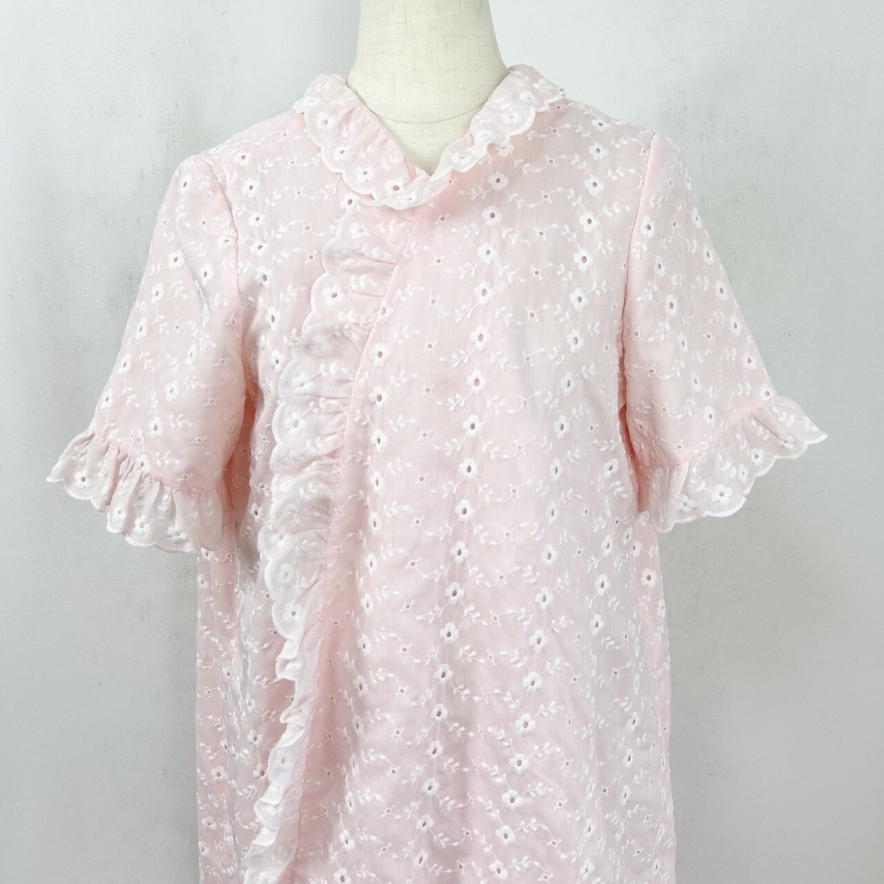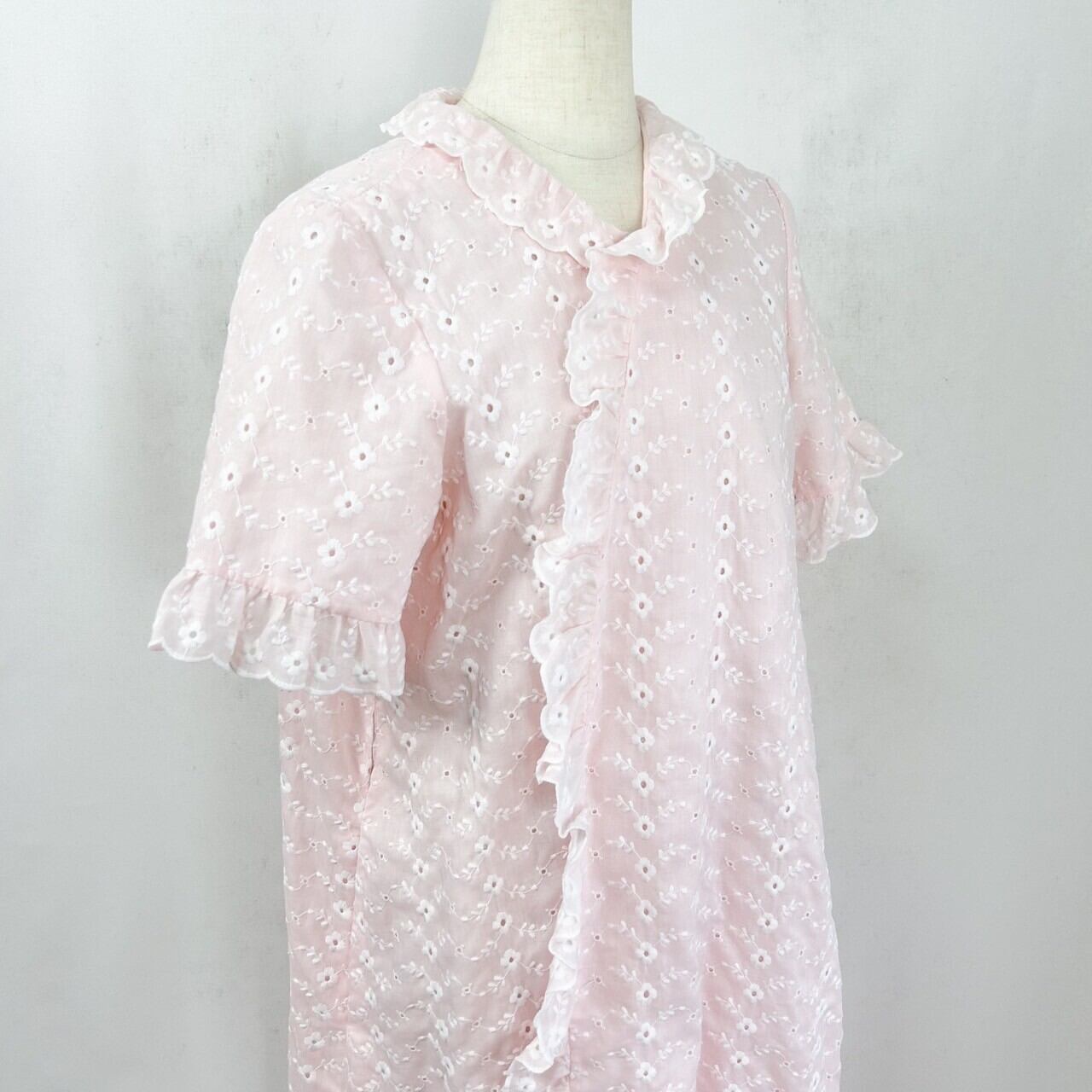 ヴィンテージ 花柄総刺繍 フリル ナイティガウン ナイトガウン