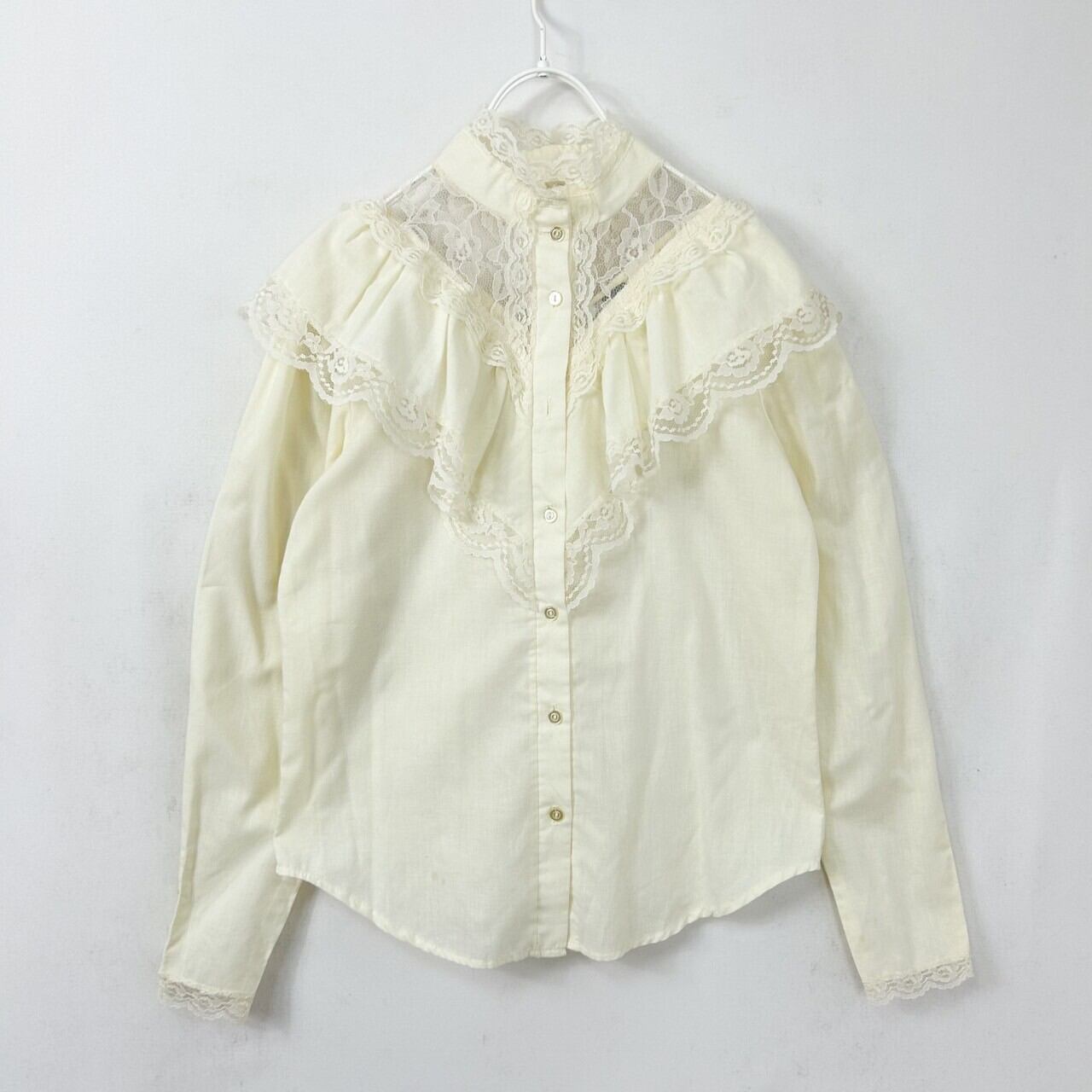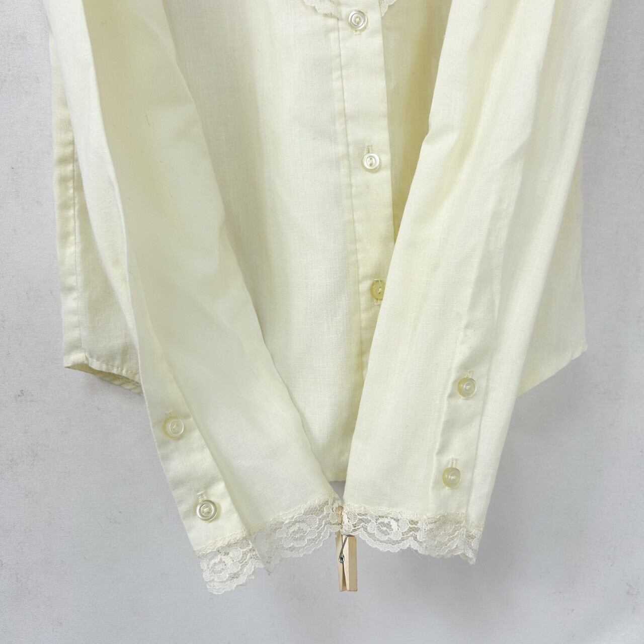 透け感あり。左袖、お腹、右裾上に薄汚れ数カ所あり。1番目と4番目ボタン無し。