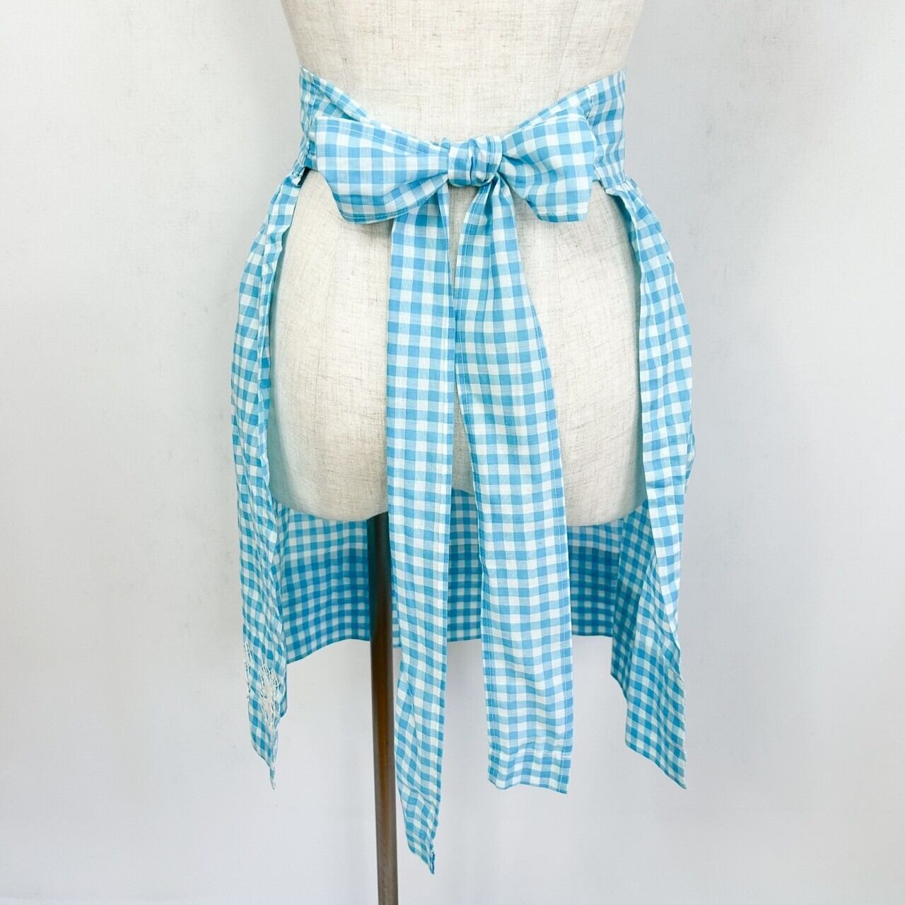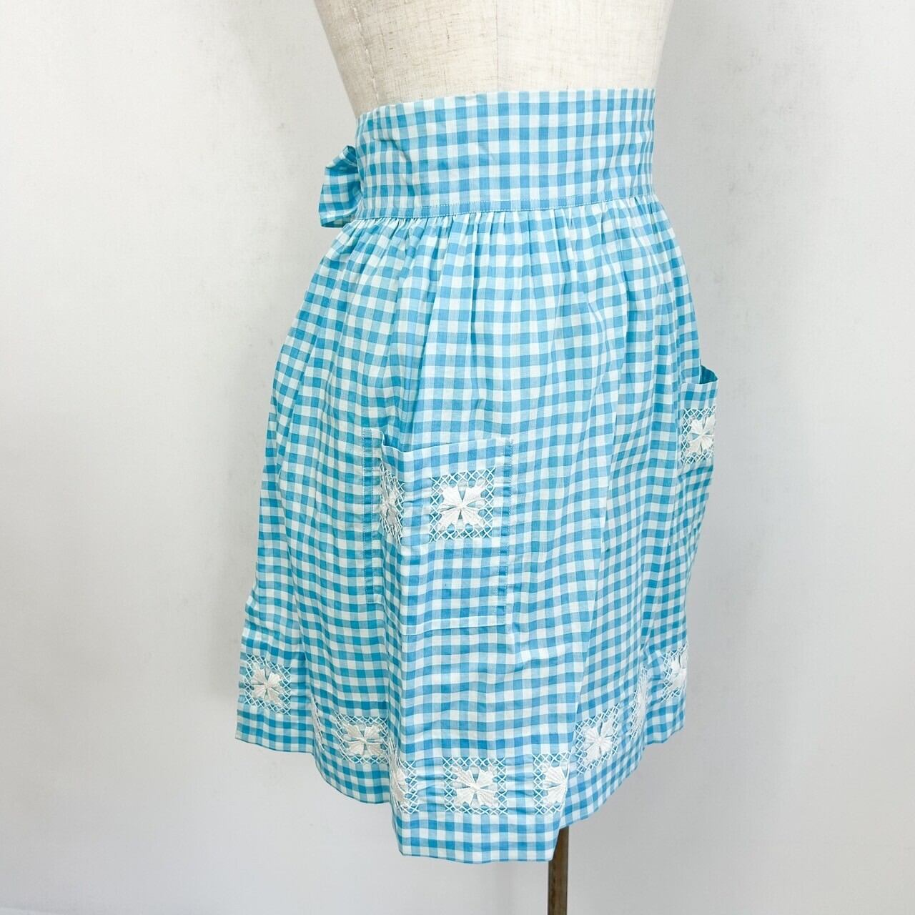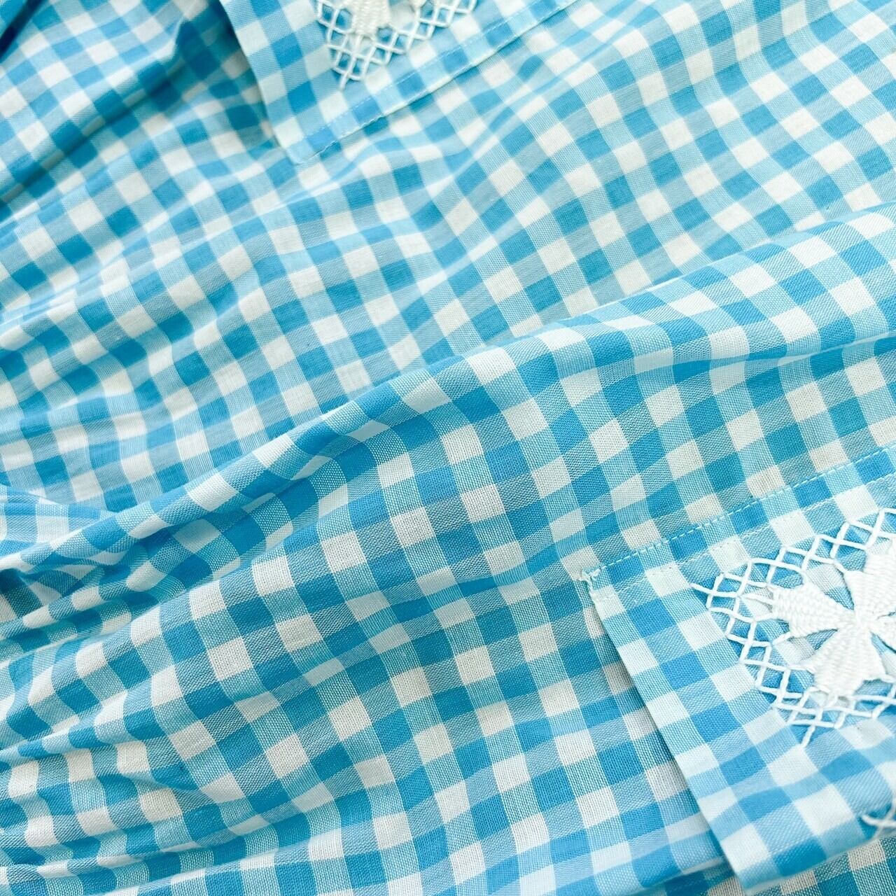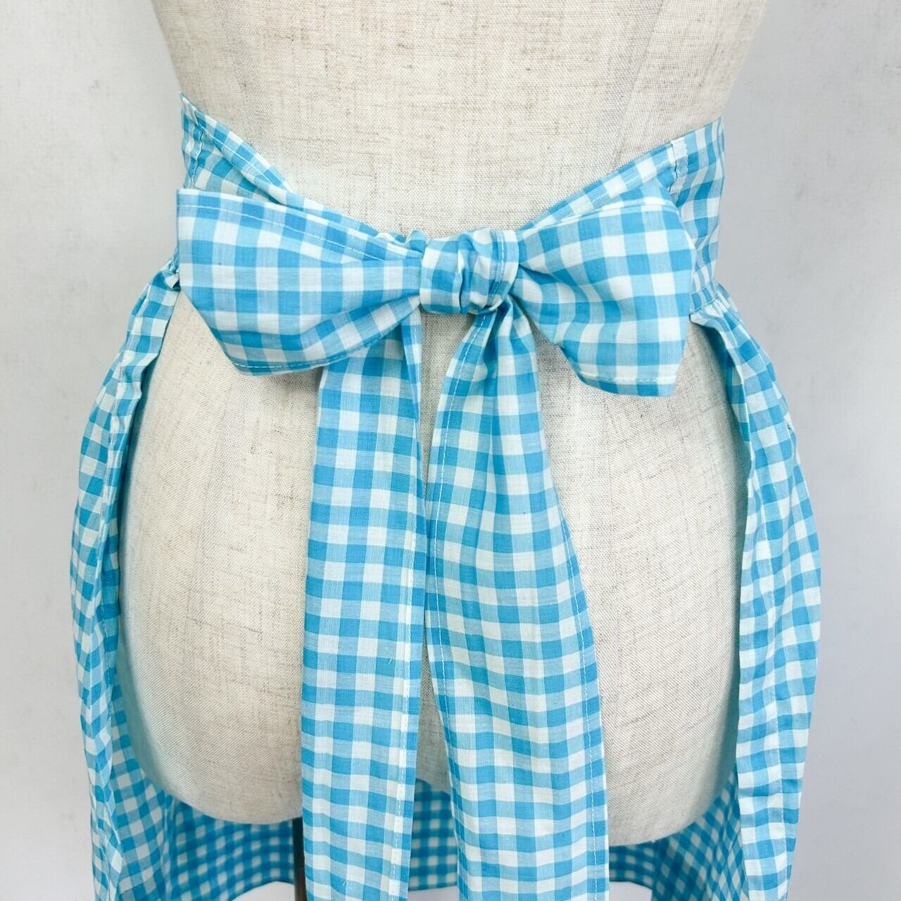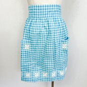 ホワイト×ブルーのギンガムチェックに刺繍デザインが可愛いエプロンです✳︎