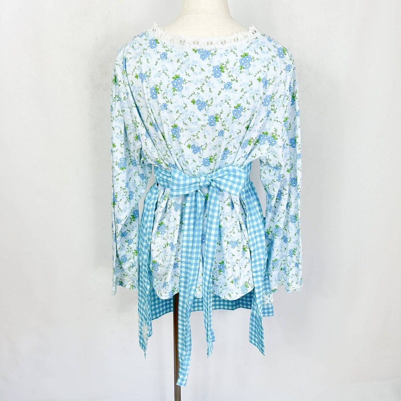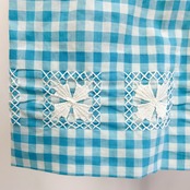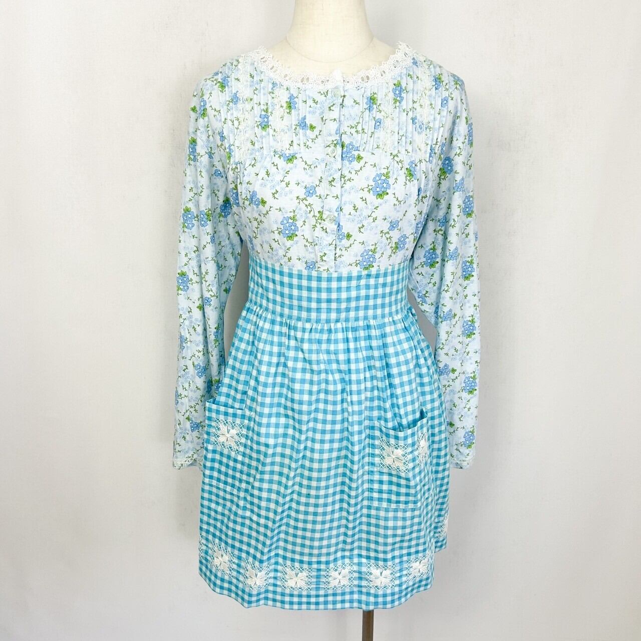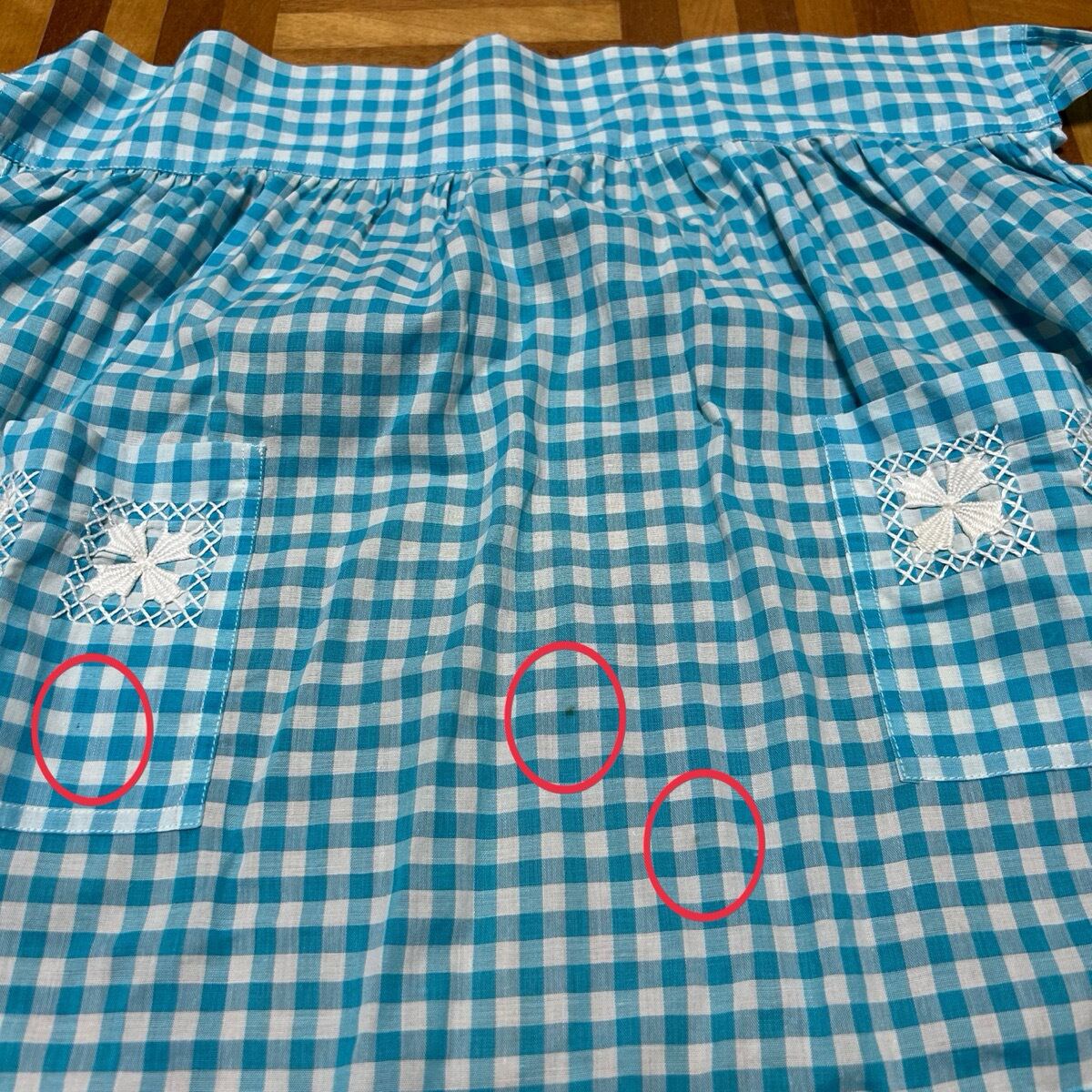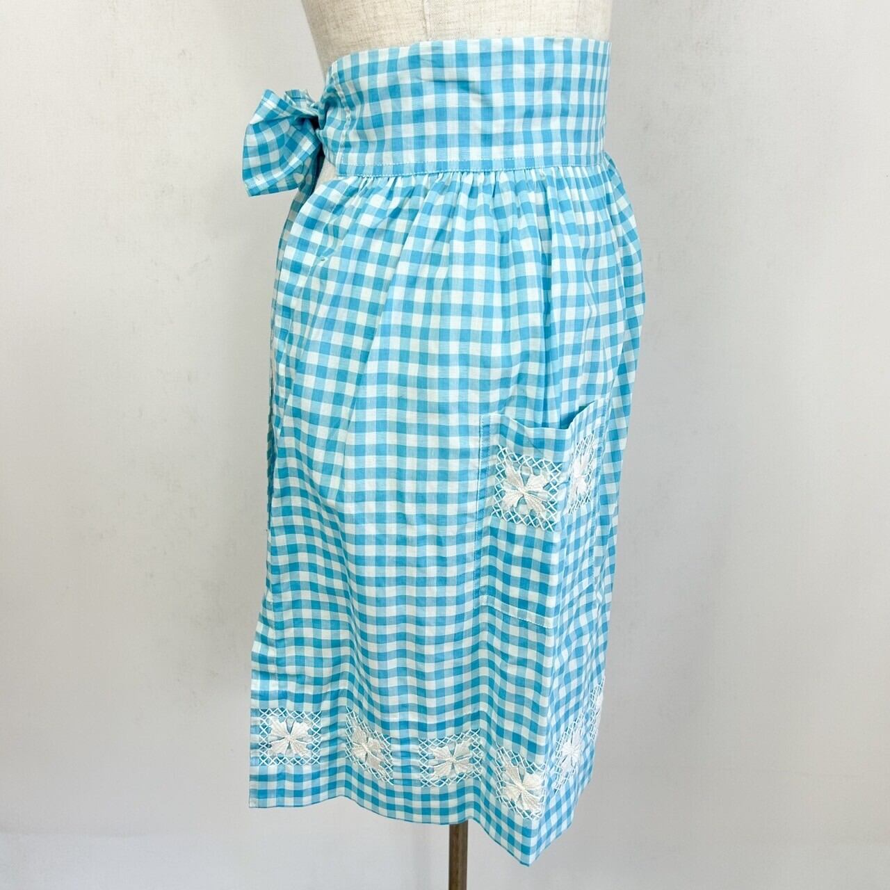 ホワイト×ブルーのギンガムチェックに刺繍デザインが可愛いエプロンです✳︎