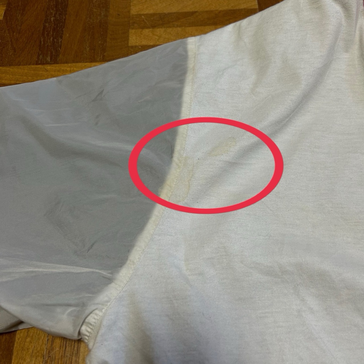 中央に2㎜程度のピンホールあり。右袖先、生地引けダメージあり。右袖先、バック右肩下に薄汚れ数カ所あり。裏地左脇、裾に薄汚れ数カ所あり。