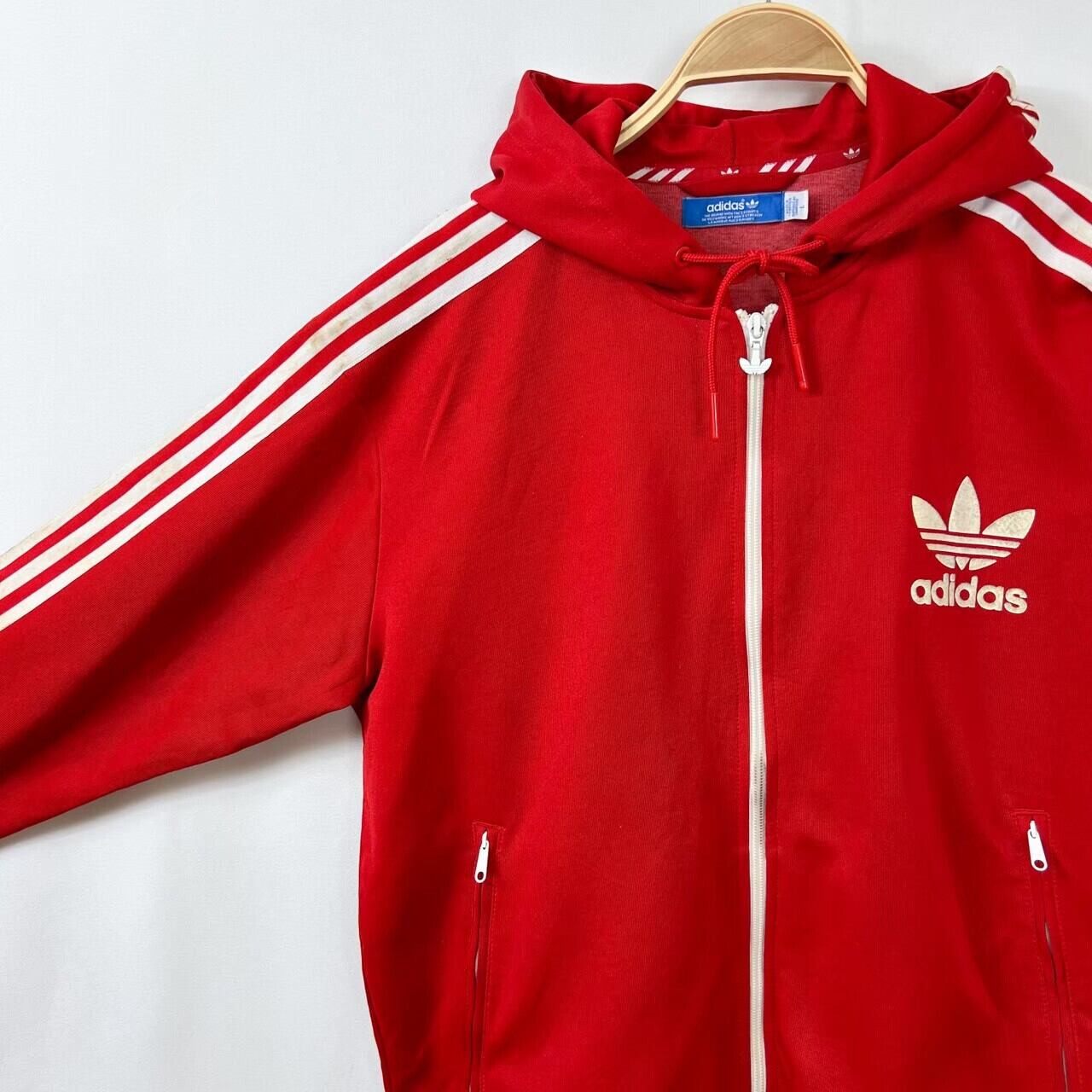 adidas アディダス トレフォイルロゴ フロッキープリント スリーライン フーディー トラックジャケット ジャージ パーカー