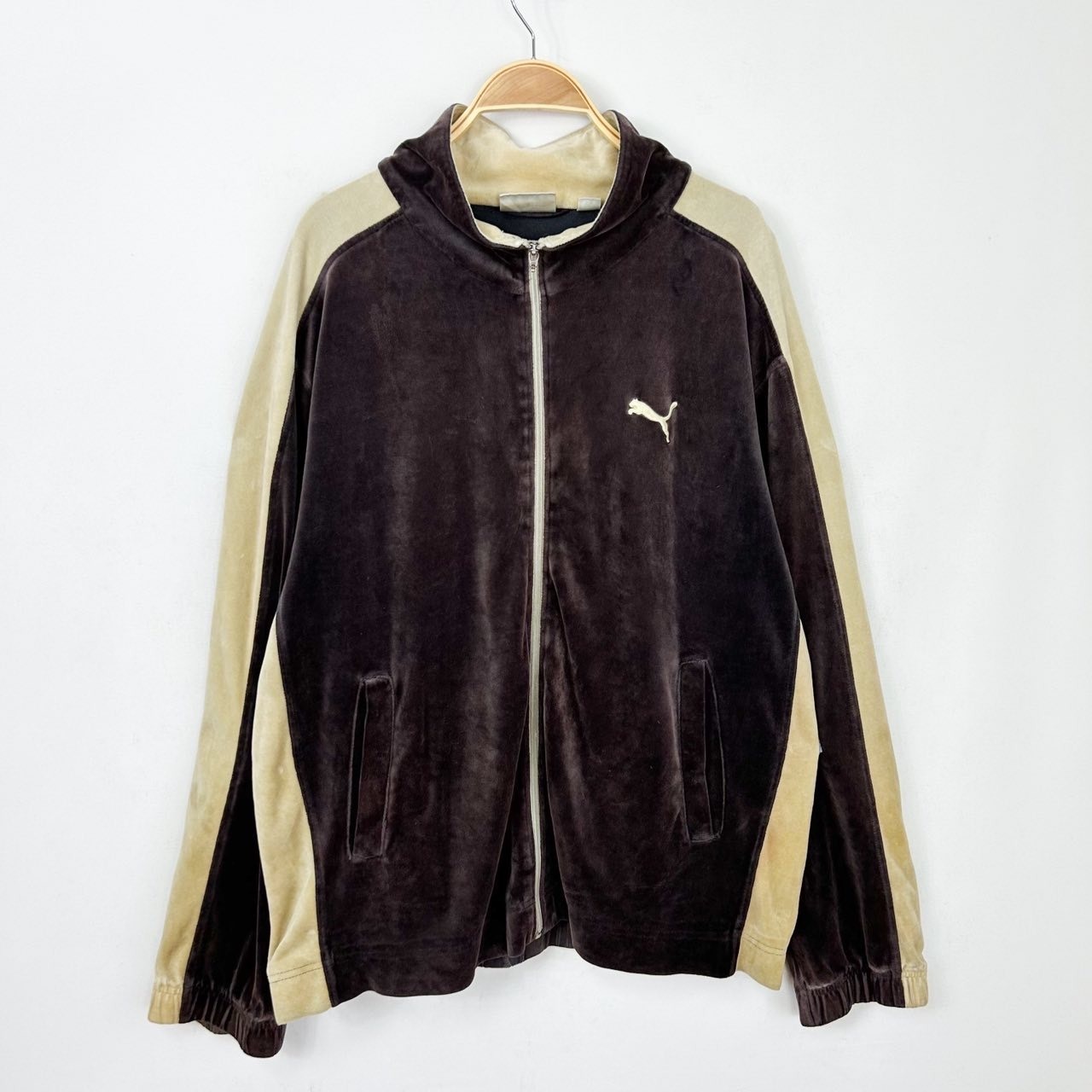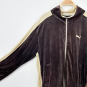 PUMA プーマ 刺繍ロゴ ツートンカラー ジップアップ ベロア トラックジャケット ジャージ ブルゾン
