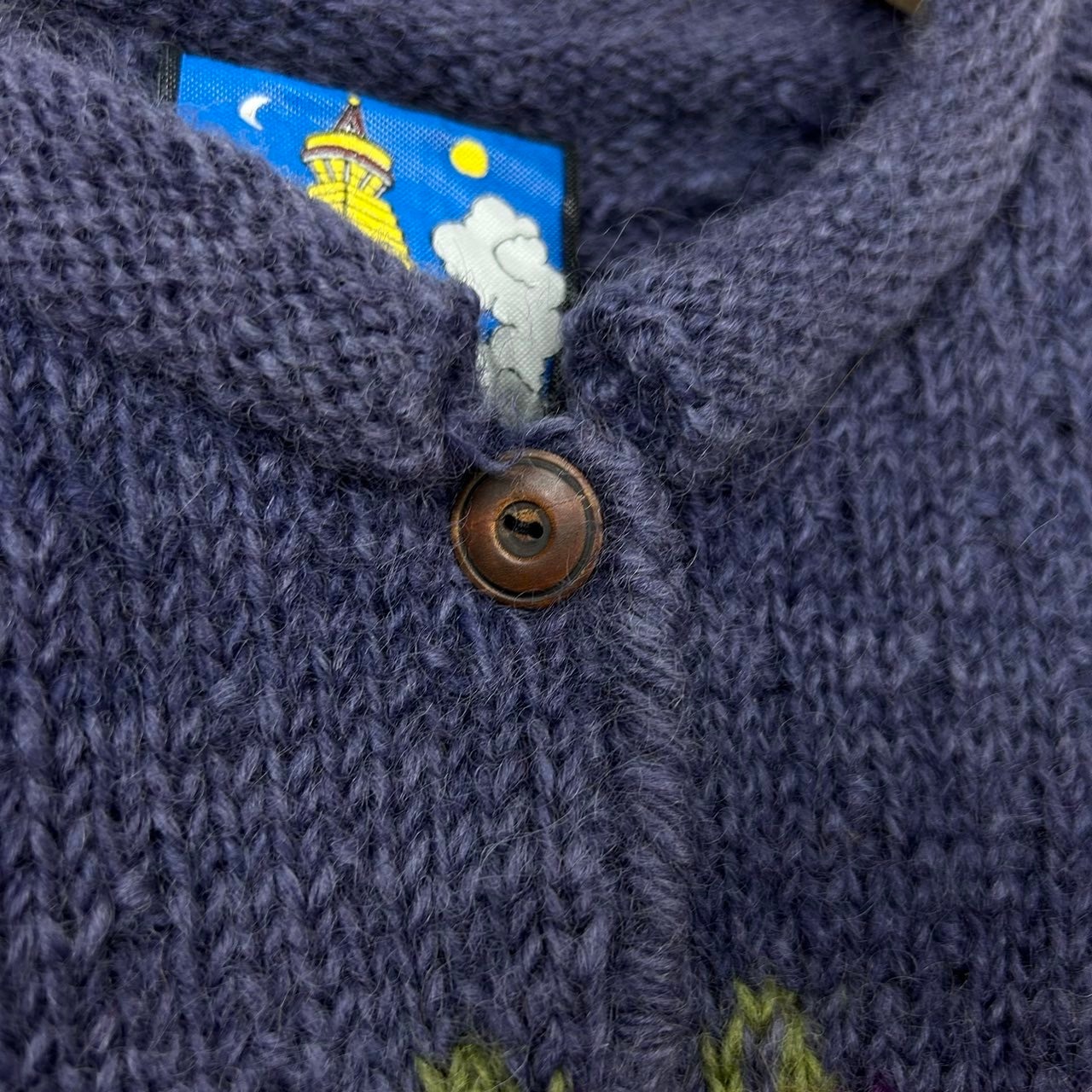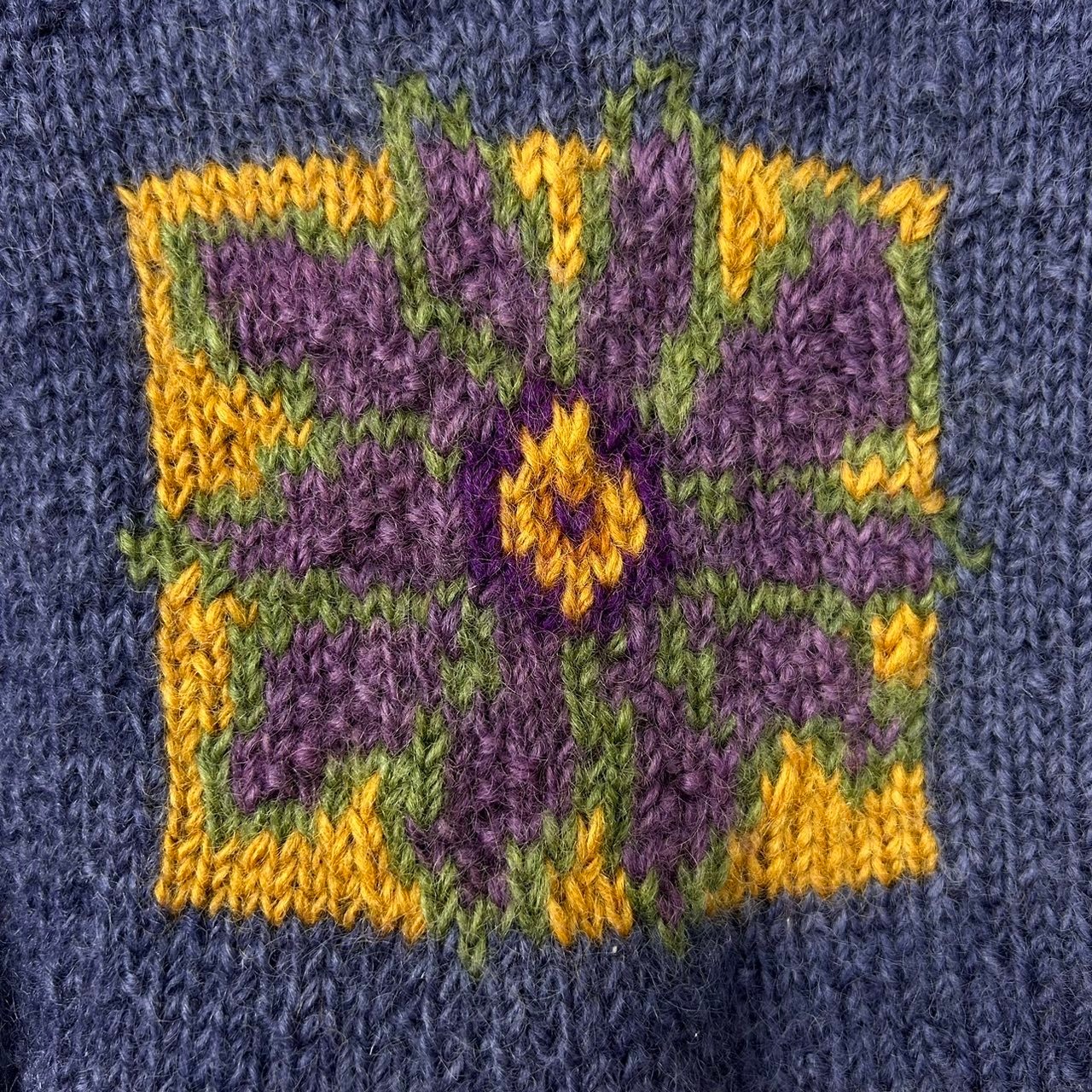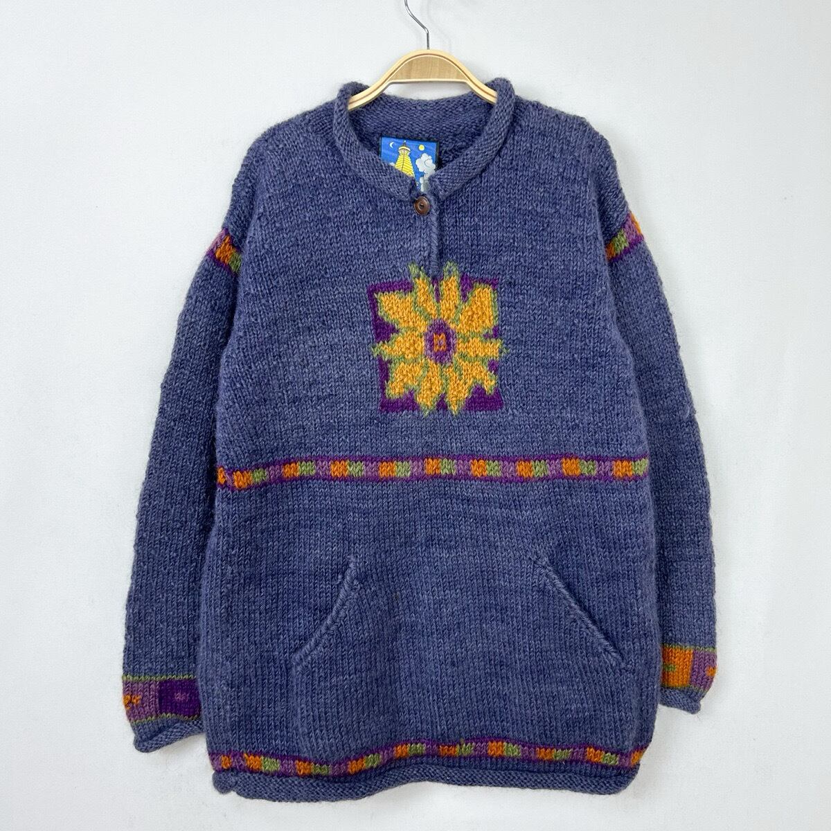 ヴィンテージ ネパール製 花柄 フラワーデザイン 肉厚 ウール 手編み ハンドニット セーター