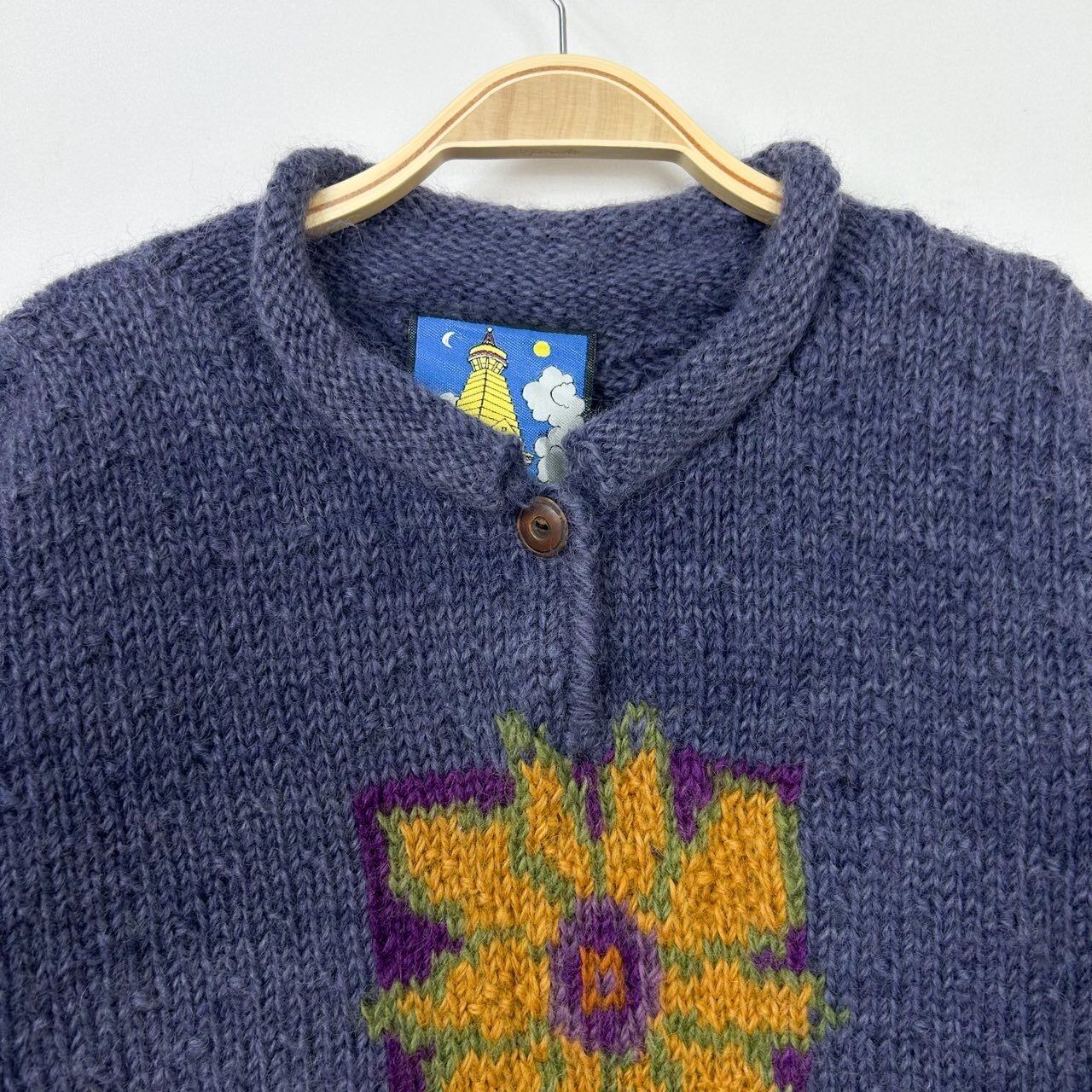 ヴィンテージ ネパール製 フラワーデザイン ウール ハンドニットセーター