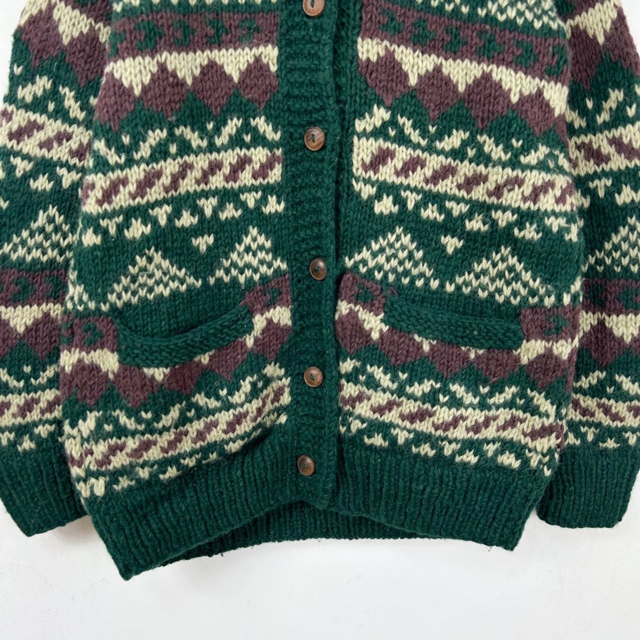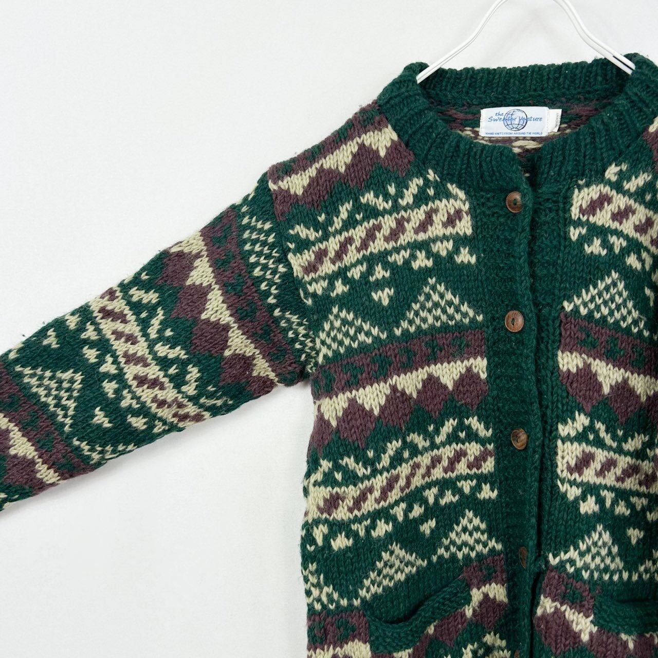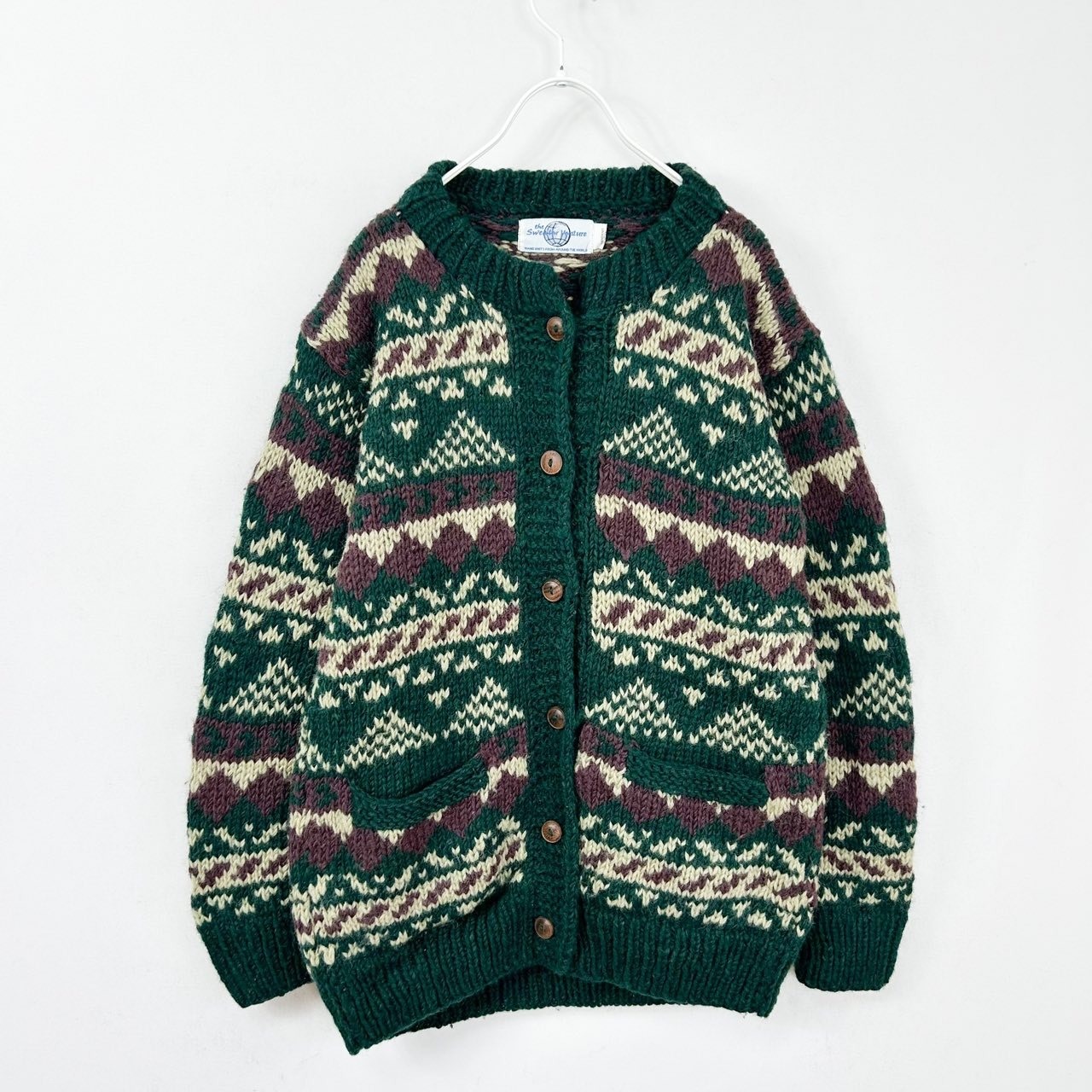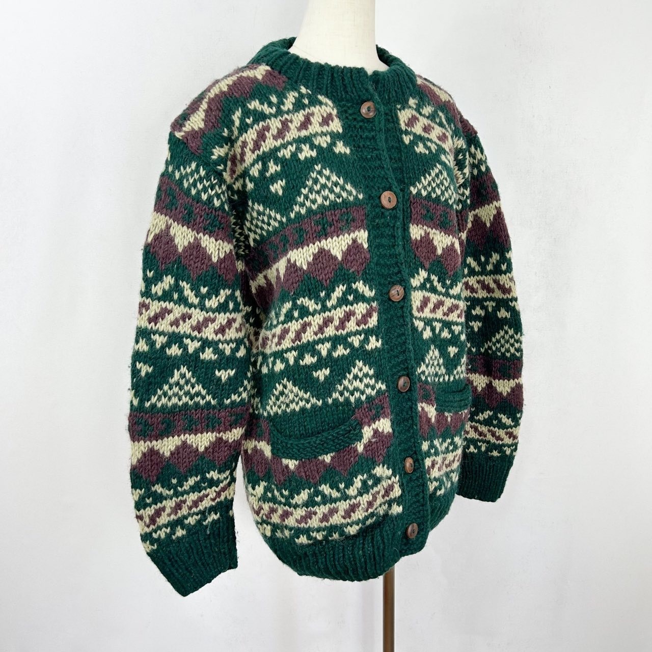 ヴィンテージ ネパール製 肉厚 総柄 ノルディック柄 ウール 手編み ハンドニット セーター カーディガン レディース