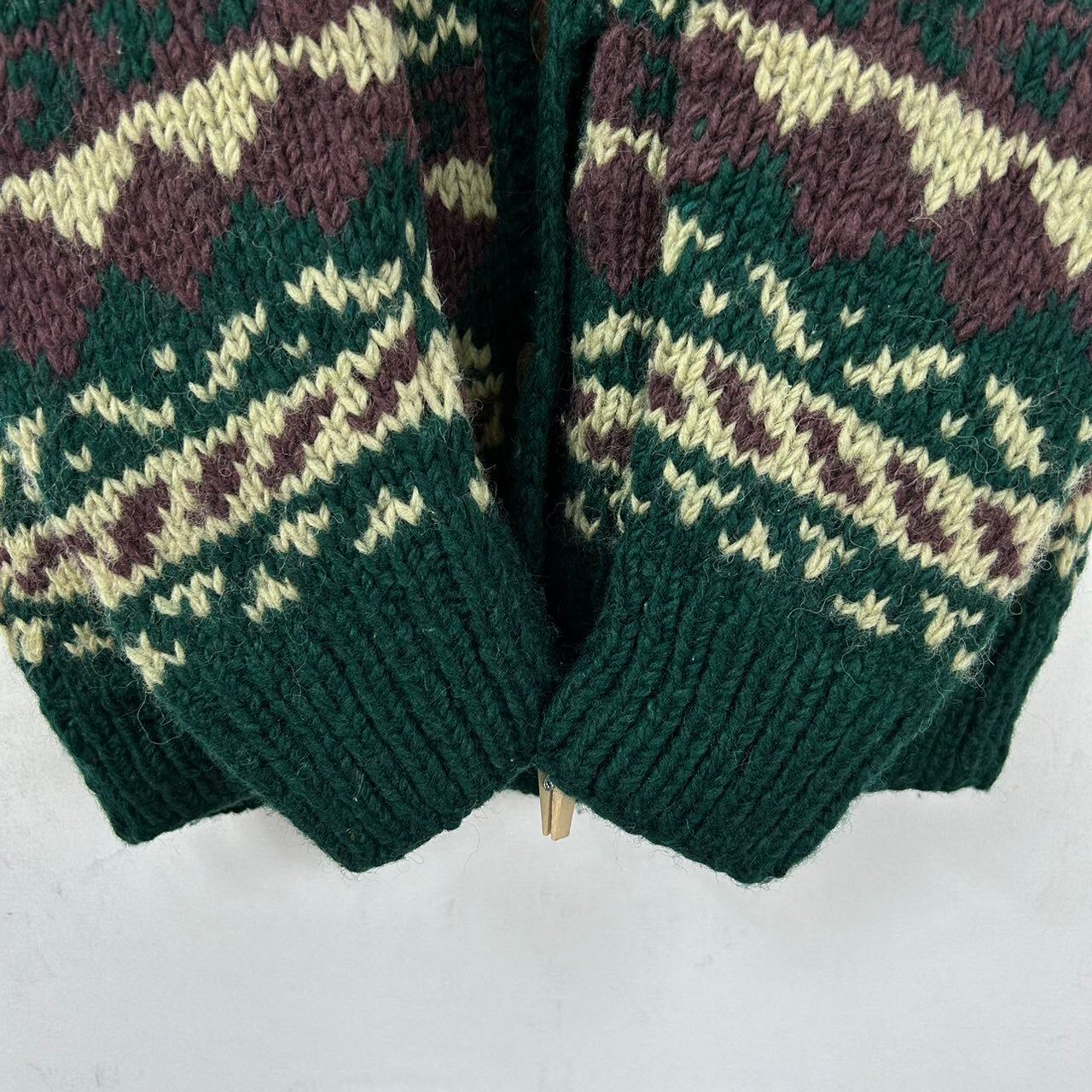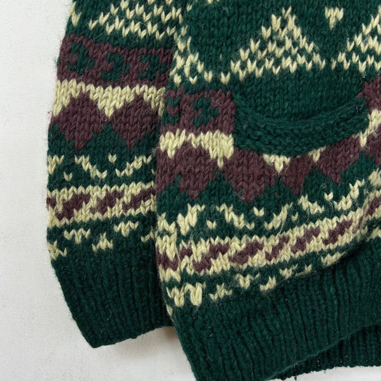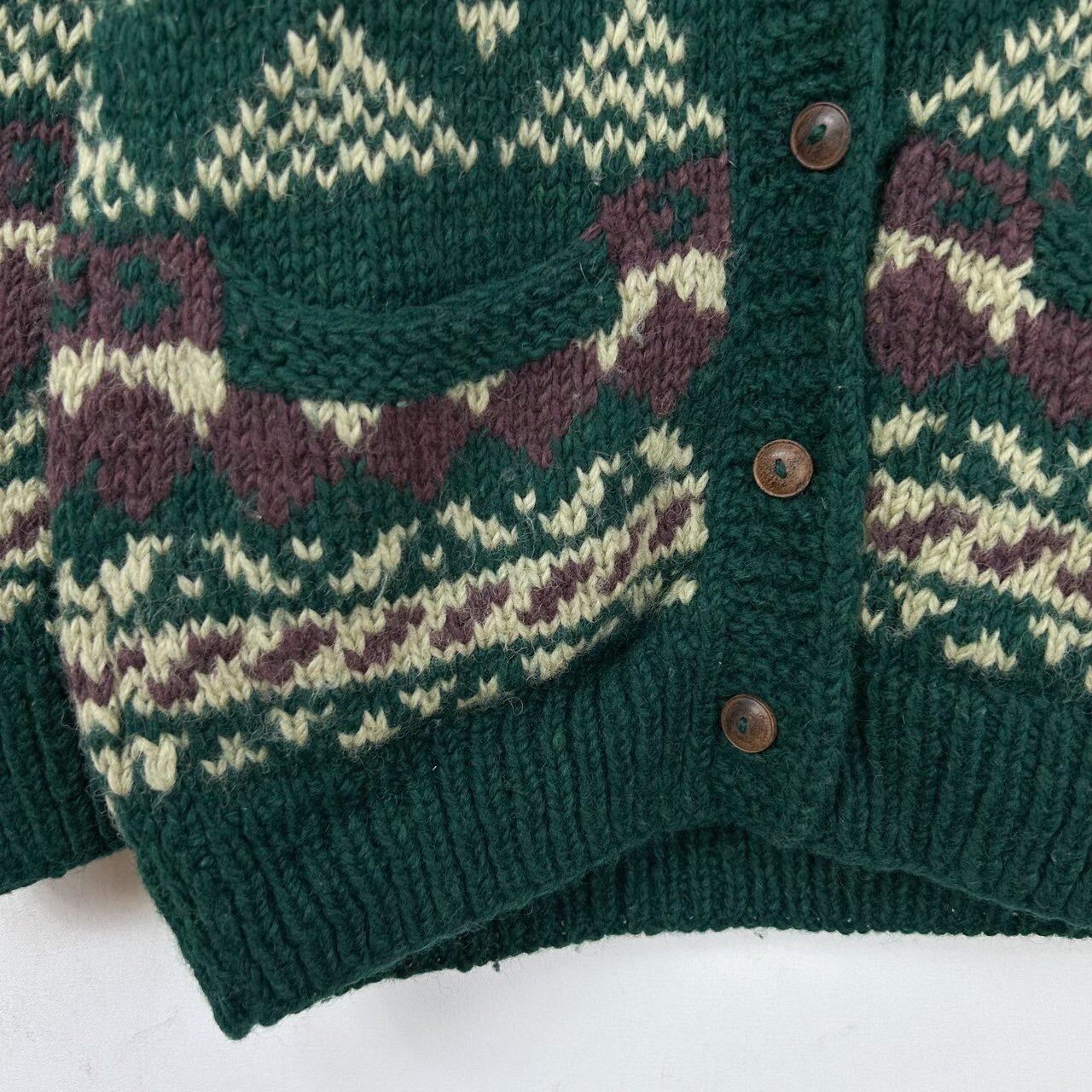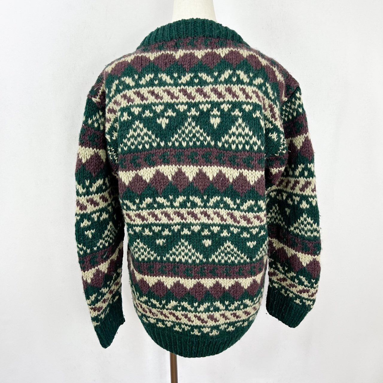 ヴィンテージ ネパール製 肉厚 総柄 ノルディック柄 ウール 手編み ハンドニット セーター カーディガン レディース