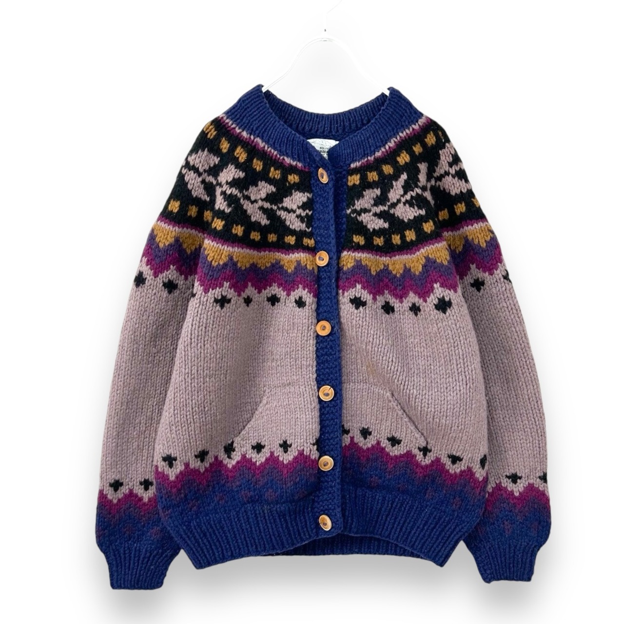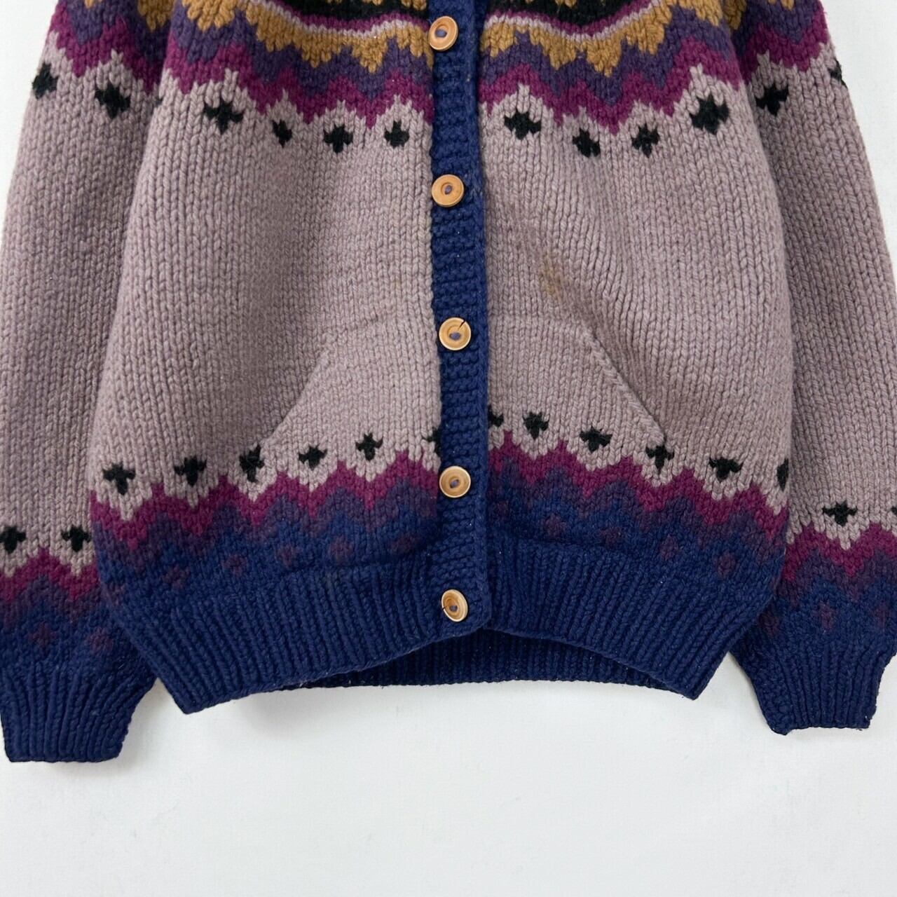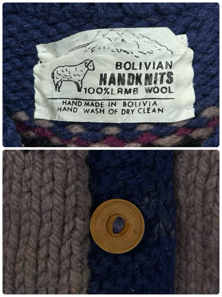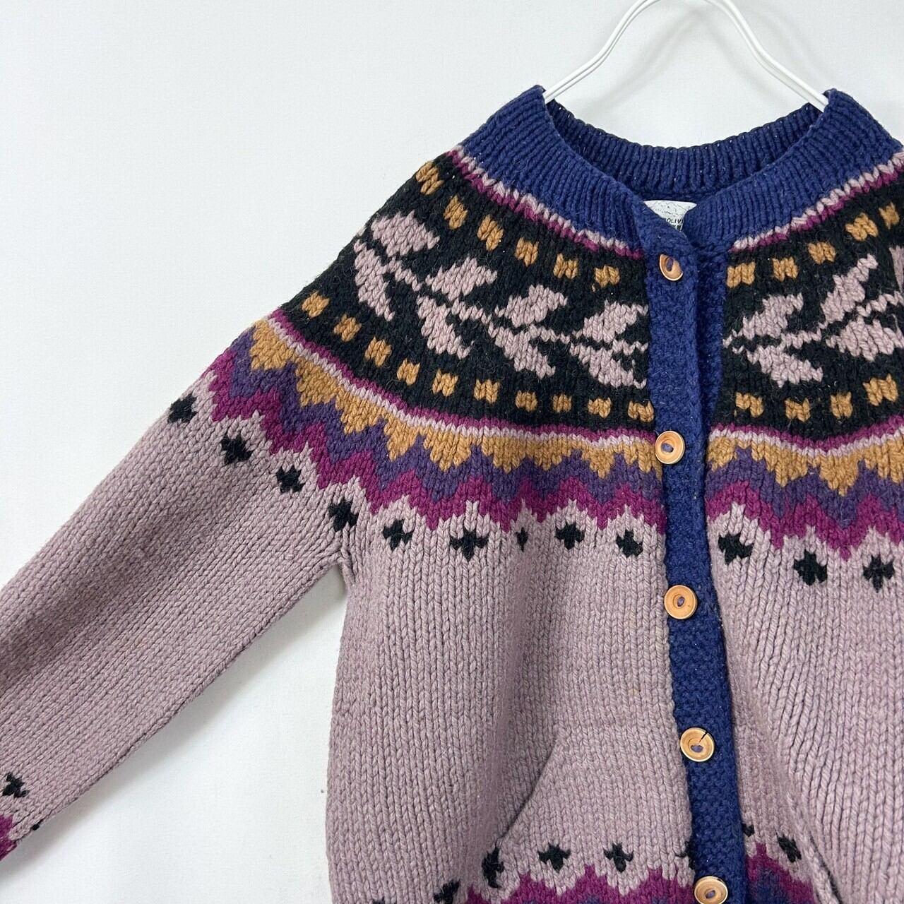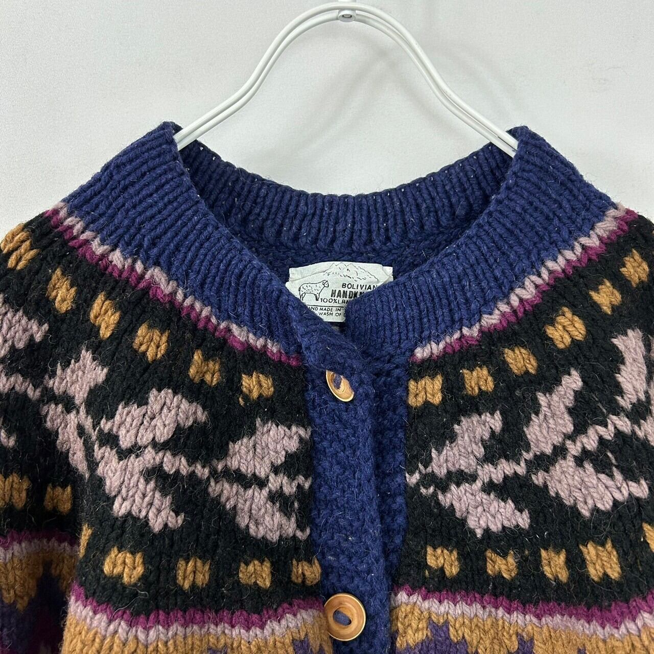 ヴィンテージ ボリビア製 フェアアイル 肉厚 ladies ラムウール ハンドニットカーディガン セーター