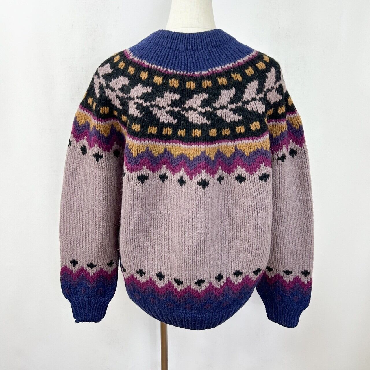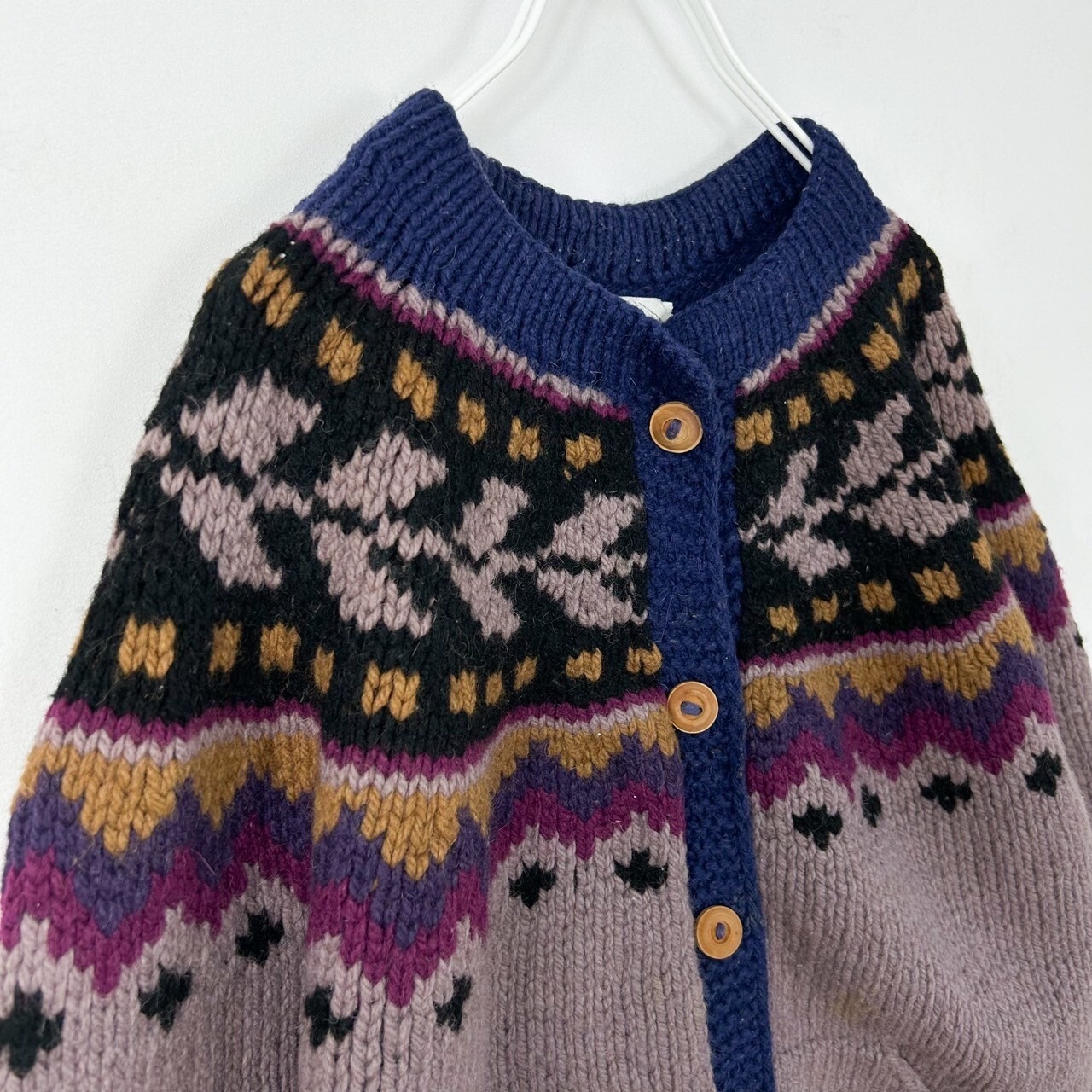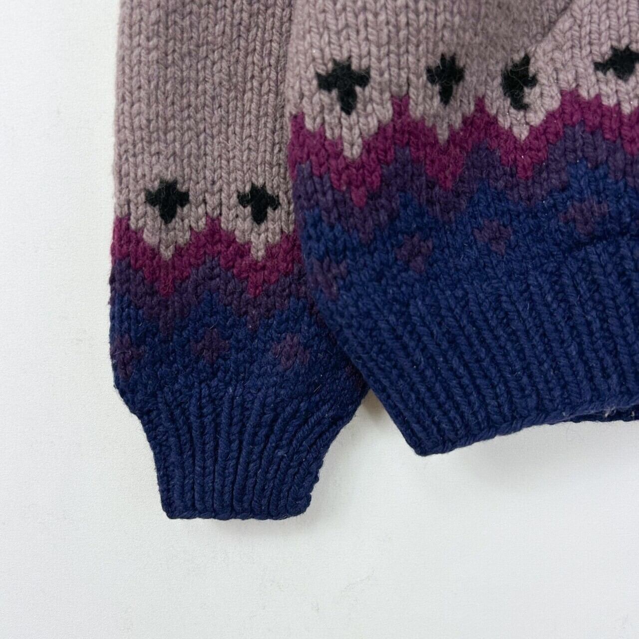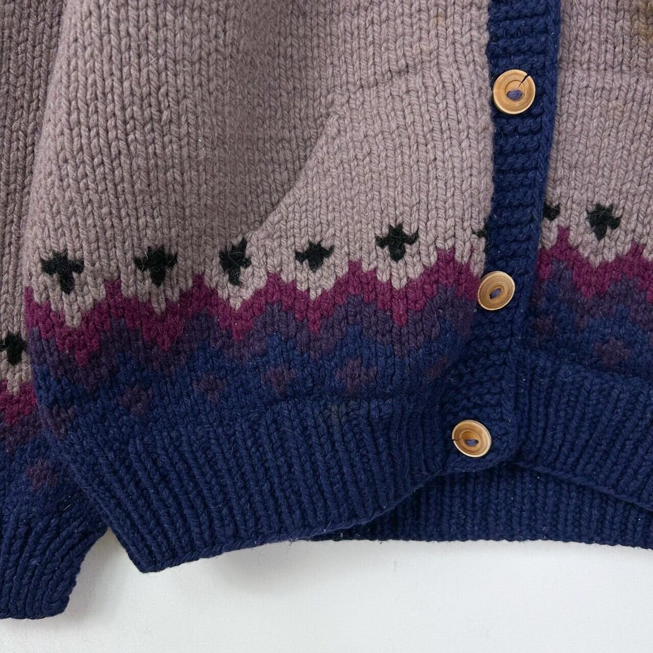ヴィンテージ ボリビア製 フェアアイル 肉厚 ladies ラムウール ハンドニットカーディガン セーター
