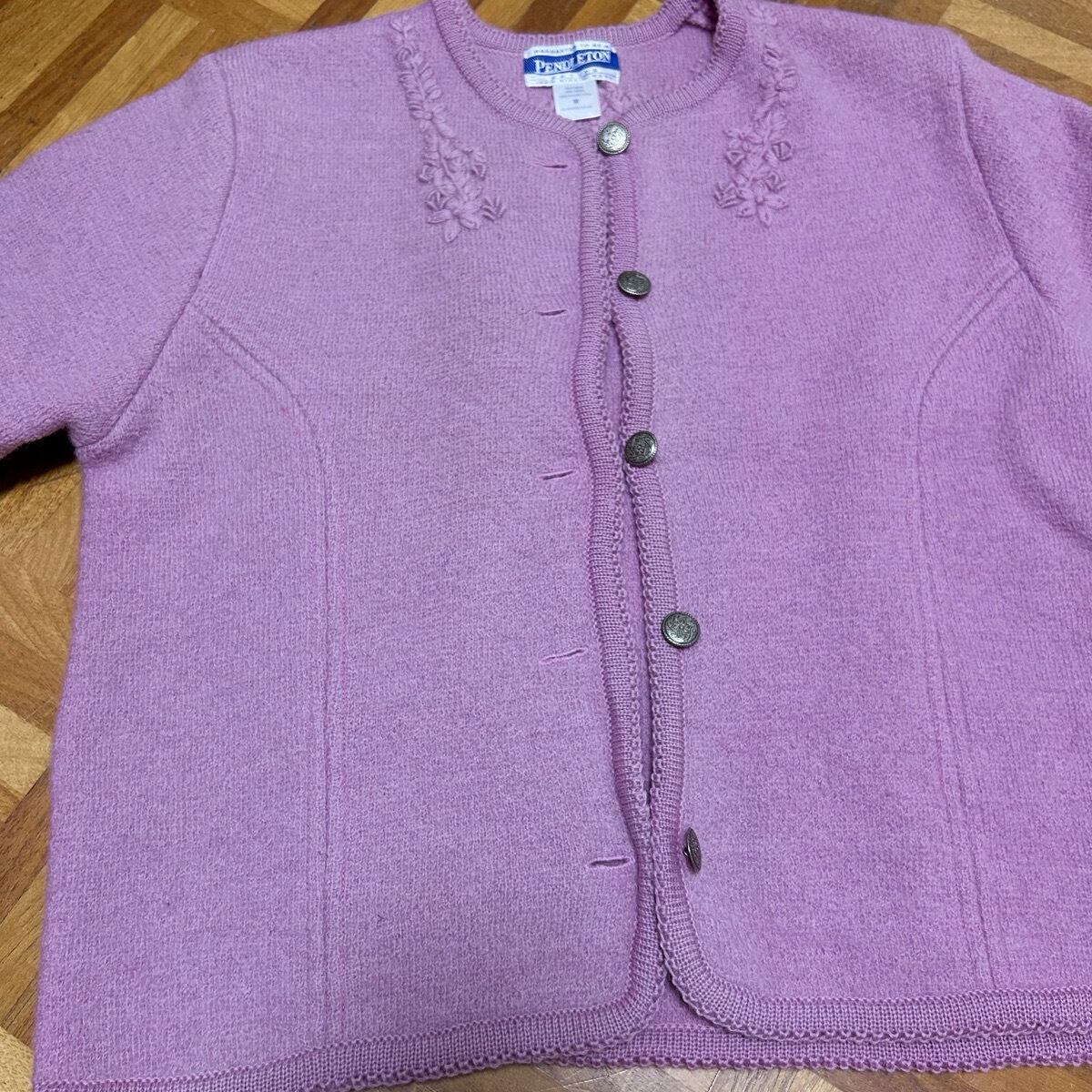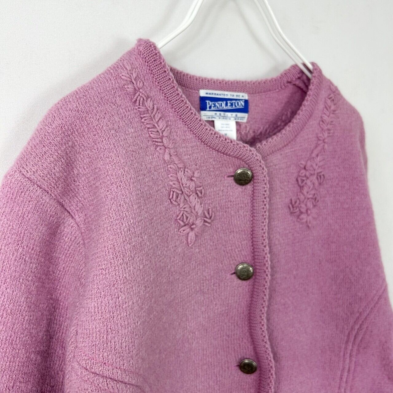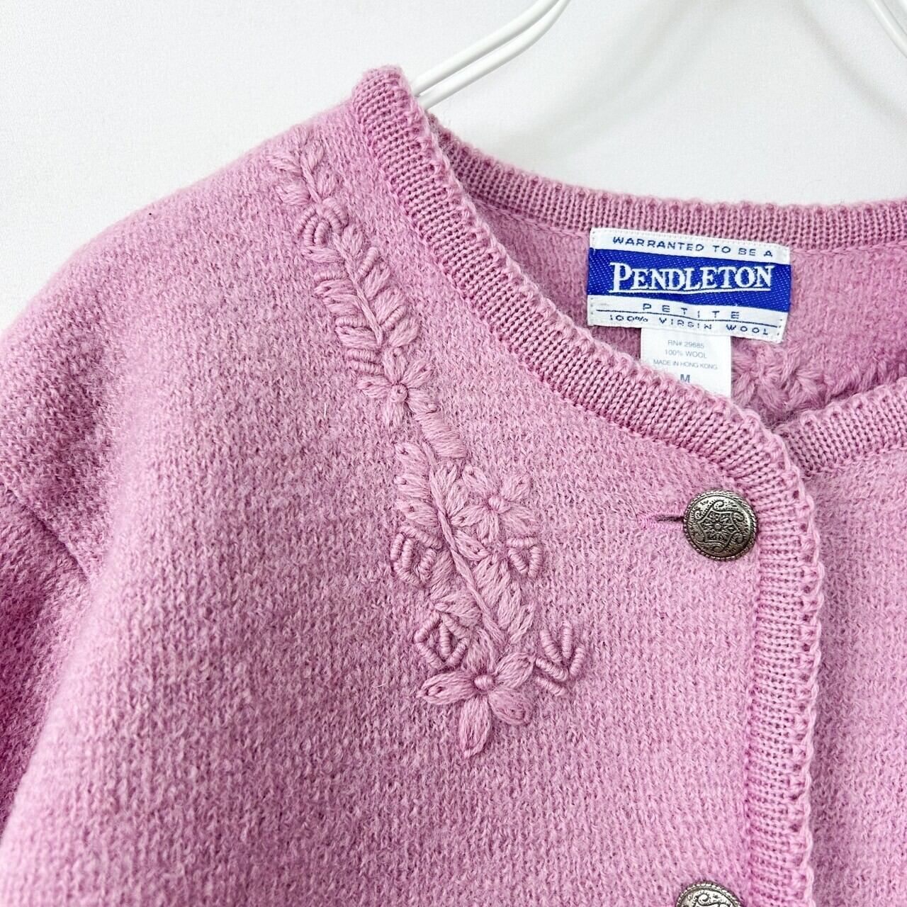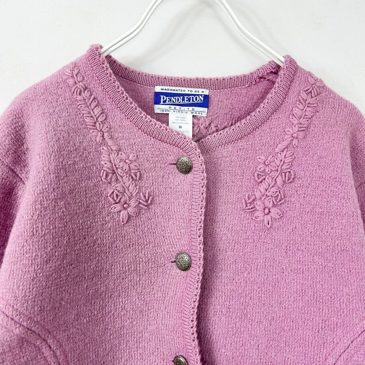 PENDLETON ペンドルトン 花柄刺繍 デザインボタン メタルボタン ウール ニットカーディガン セーター