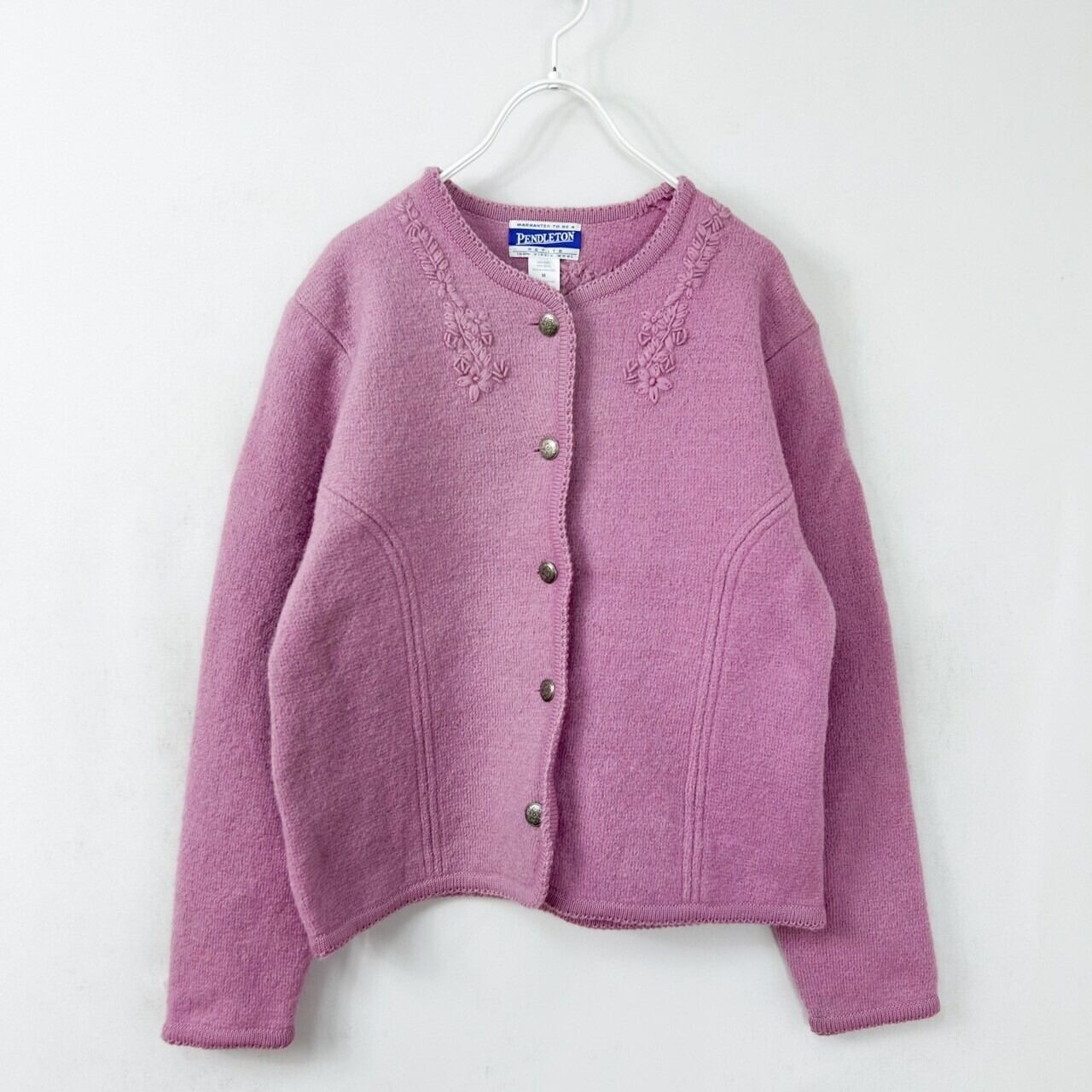 PENDLETON 花柄刺繍 メタルボタン ウール ニットカーディガン