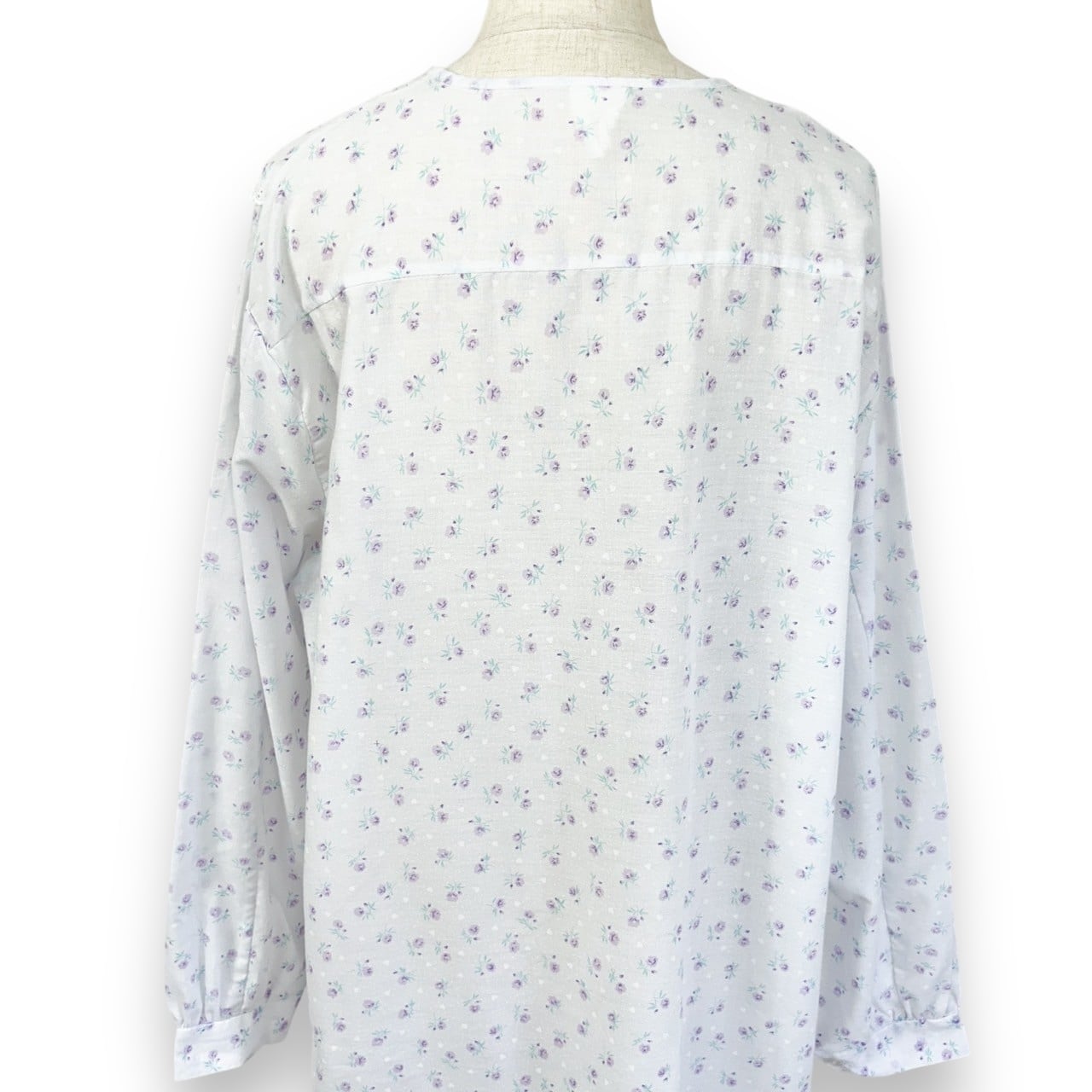 控えめなパープルカラーの小花柄にカットワークレースが可愛いナイトドレスです✳︎