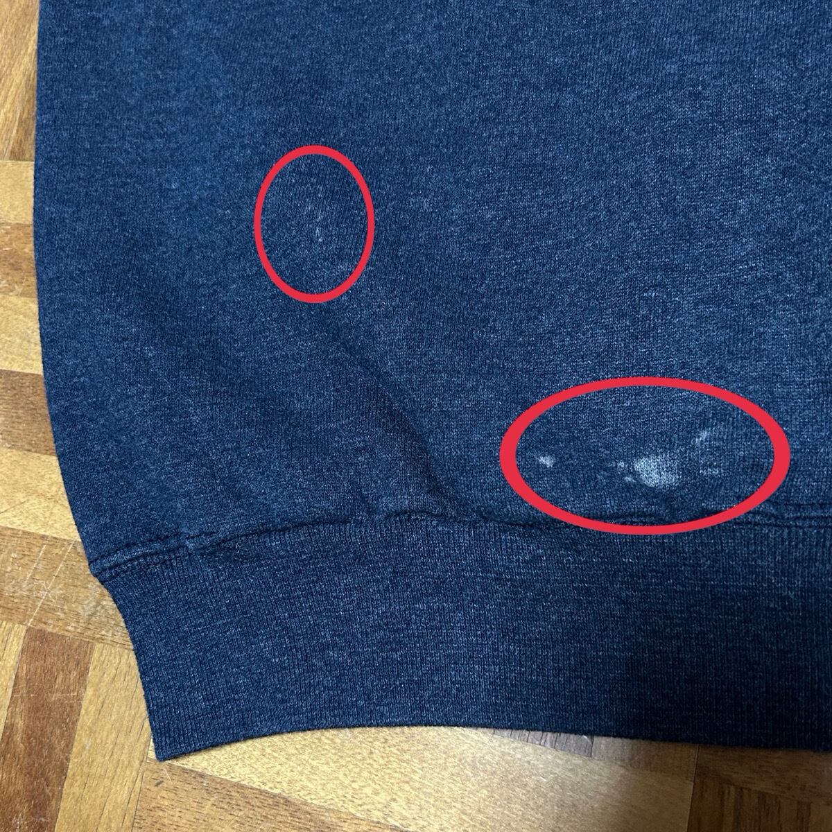 右袖、右サイド、擦れで白っぽくなっています。左袖先、左裾上白っぽく色抜け数カ所あり。