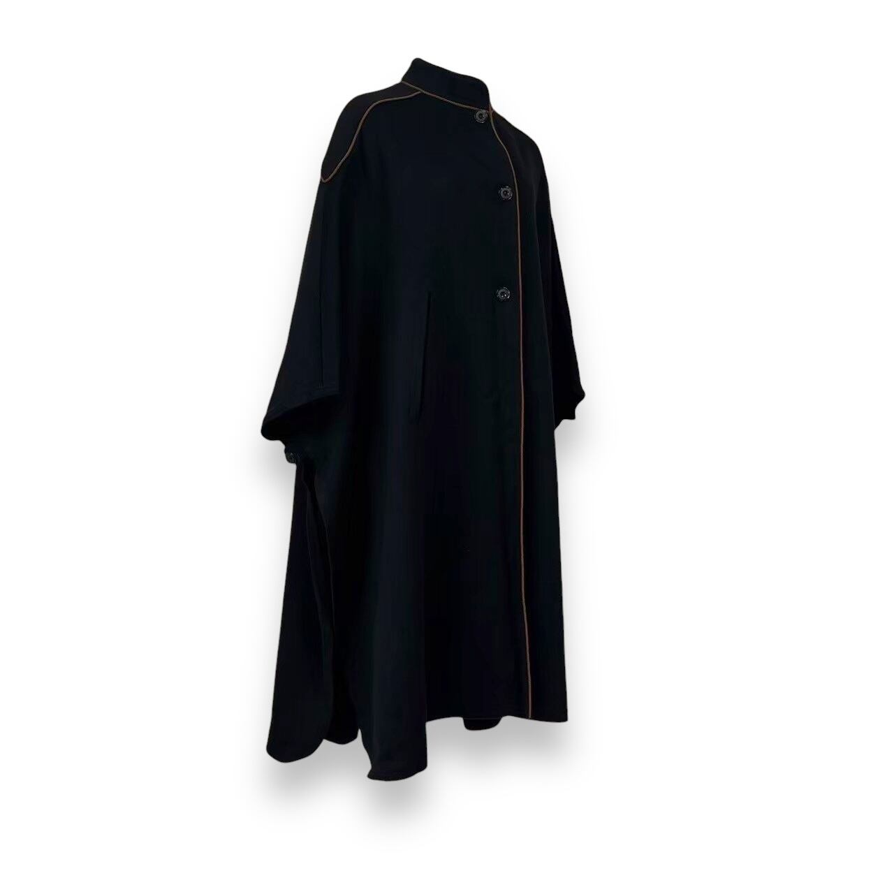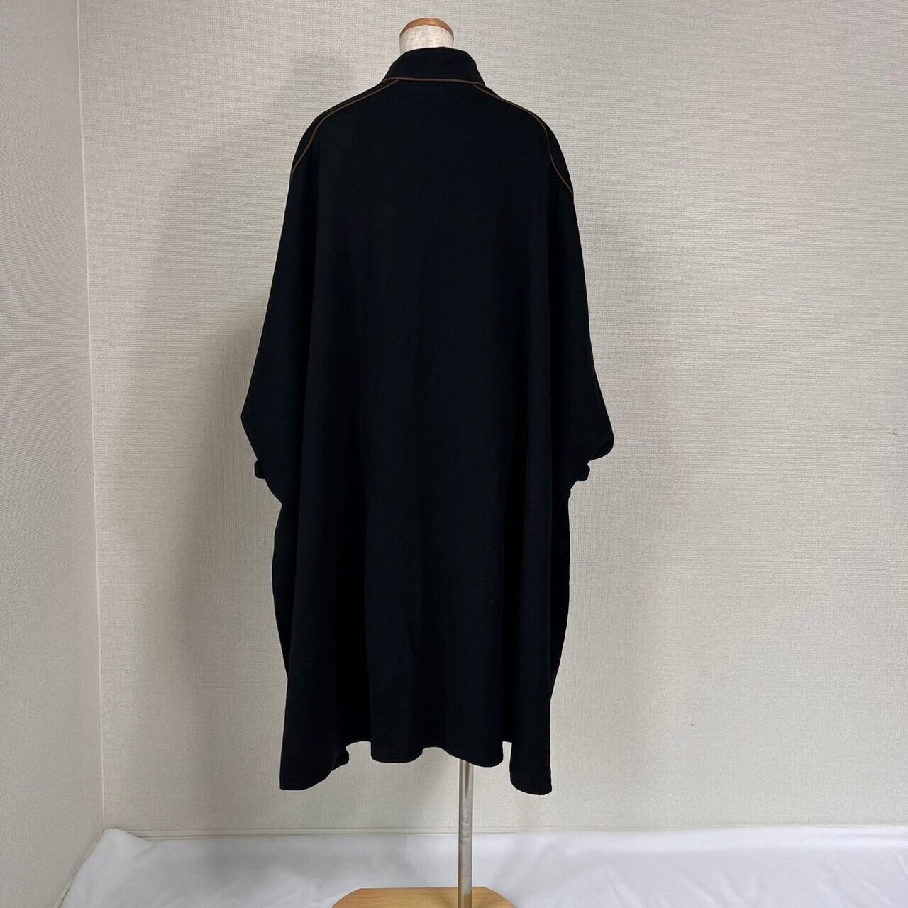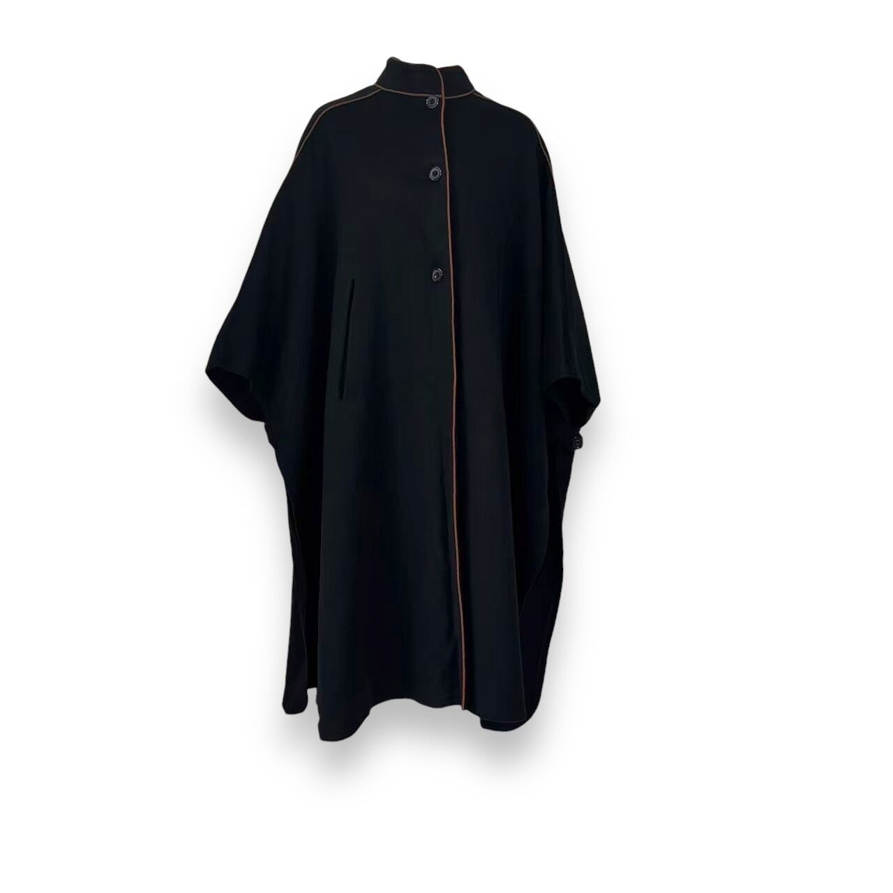 スタンドカラー パイピングデザイン ウール ポンチョ ロング ケープコート