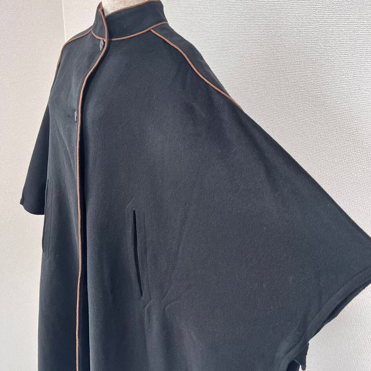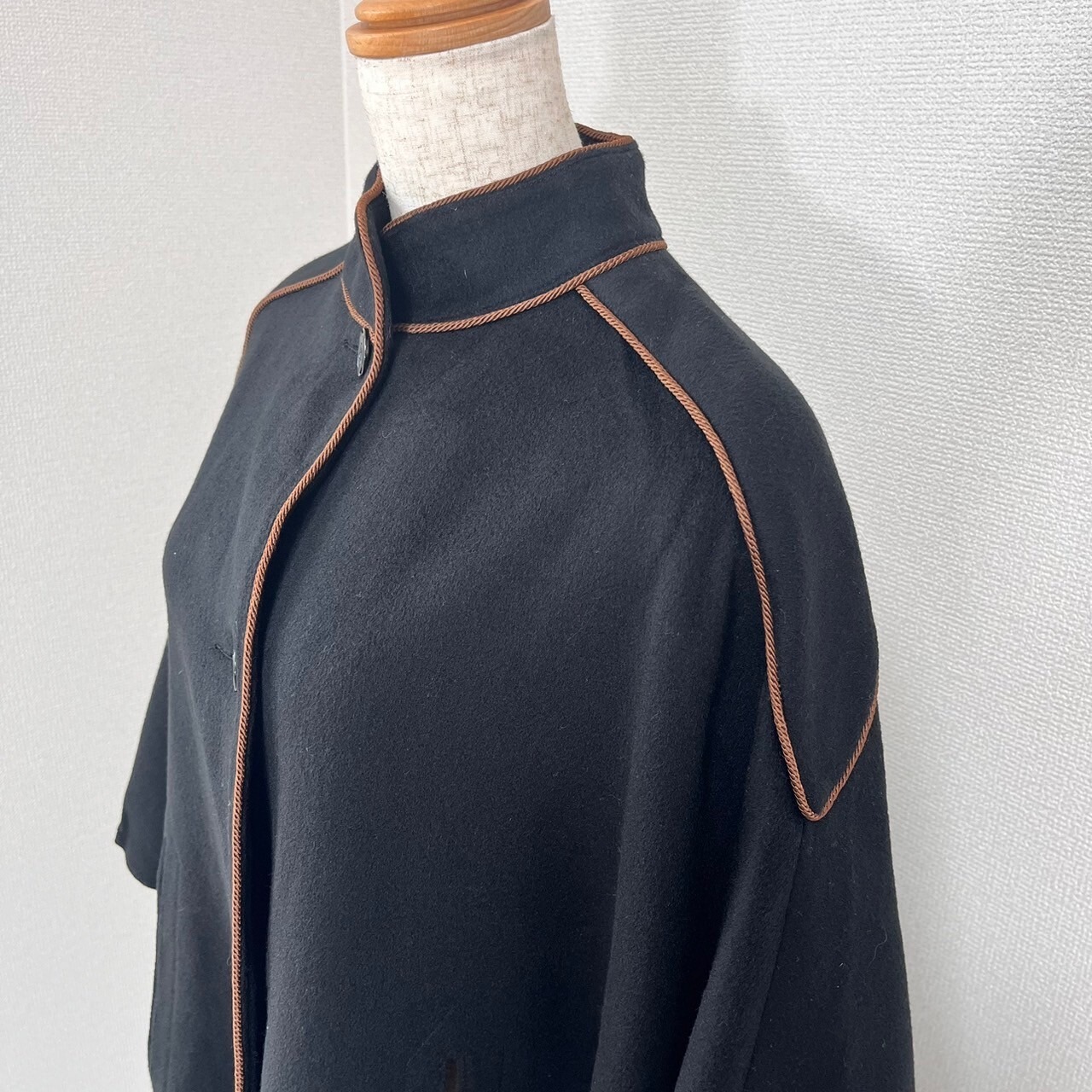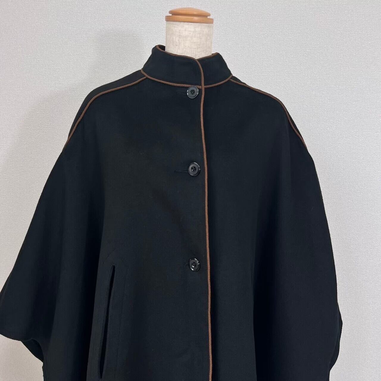 スタンドカラー パイピング ウール ポンチョ ケープコート