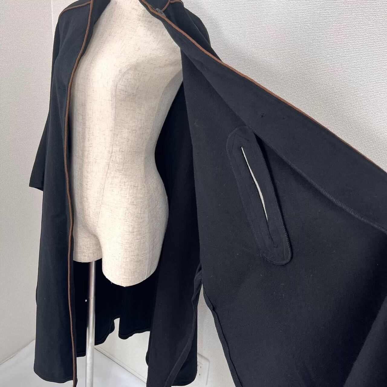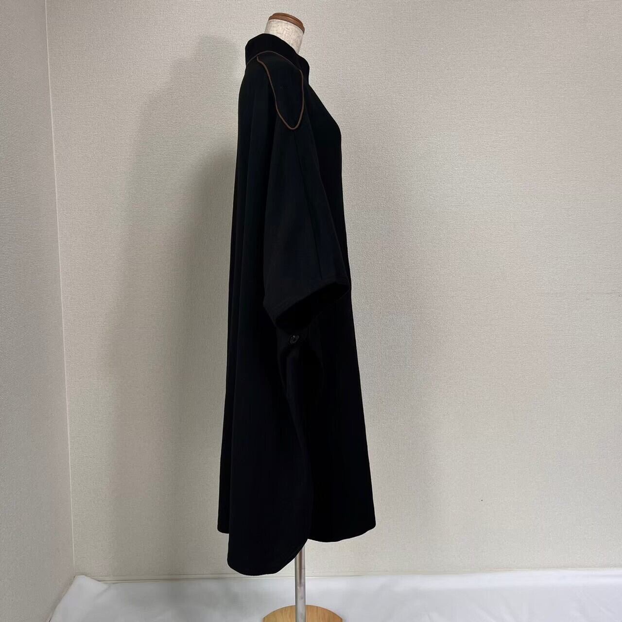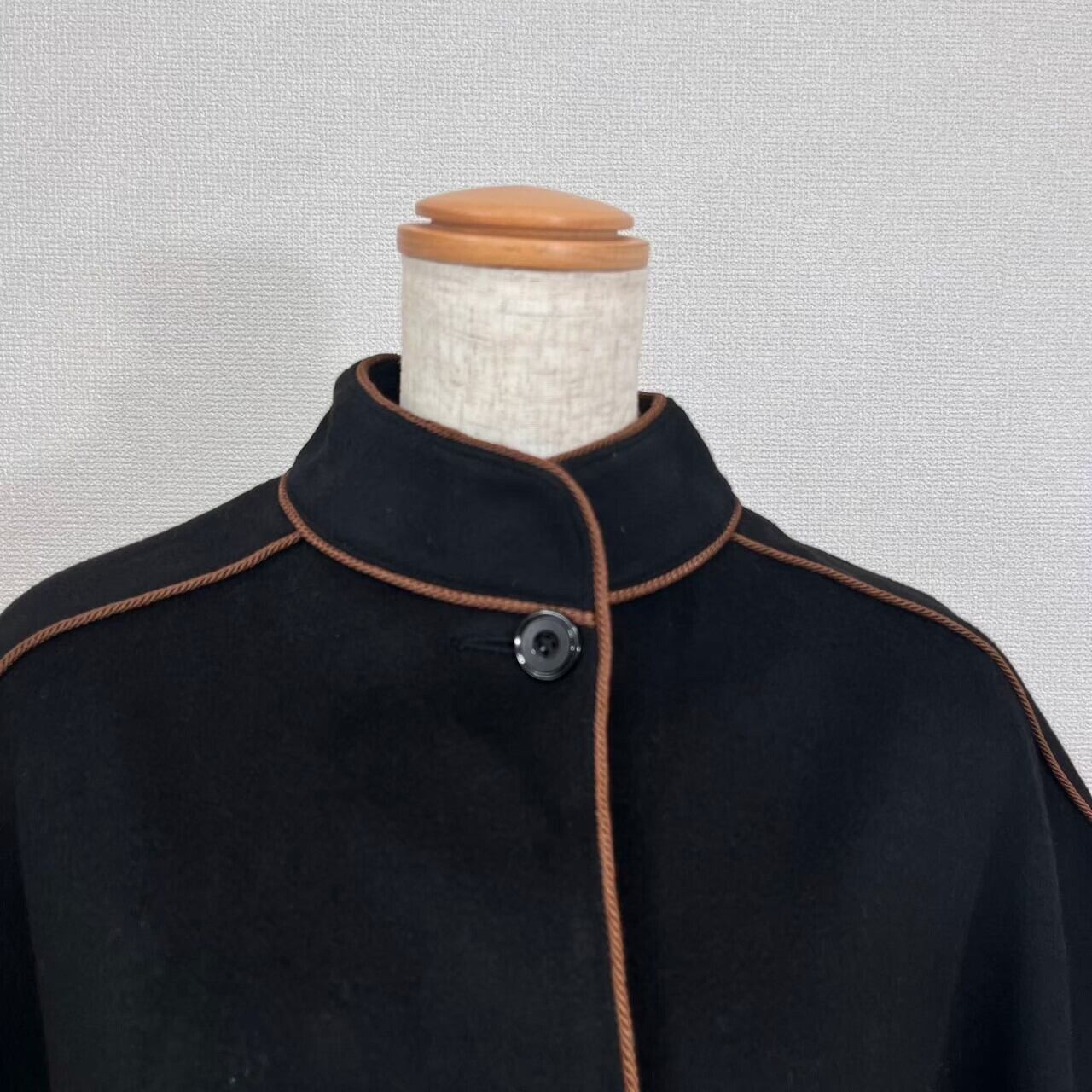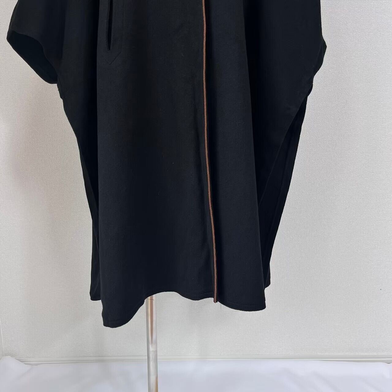 スタンドカラー パイピング ウール ポンチョ ケープコート