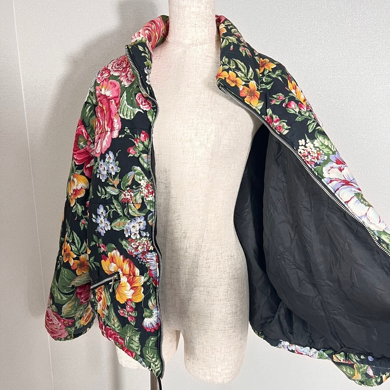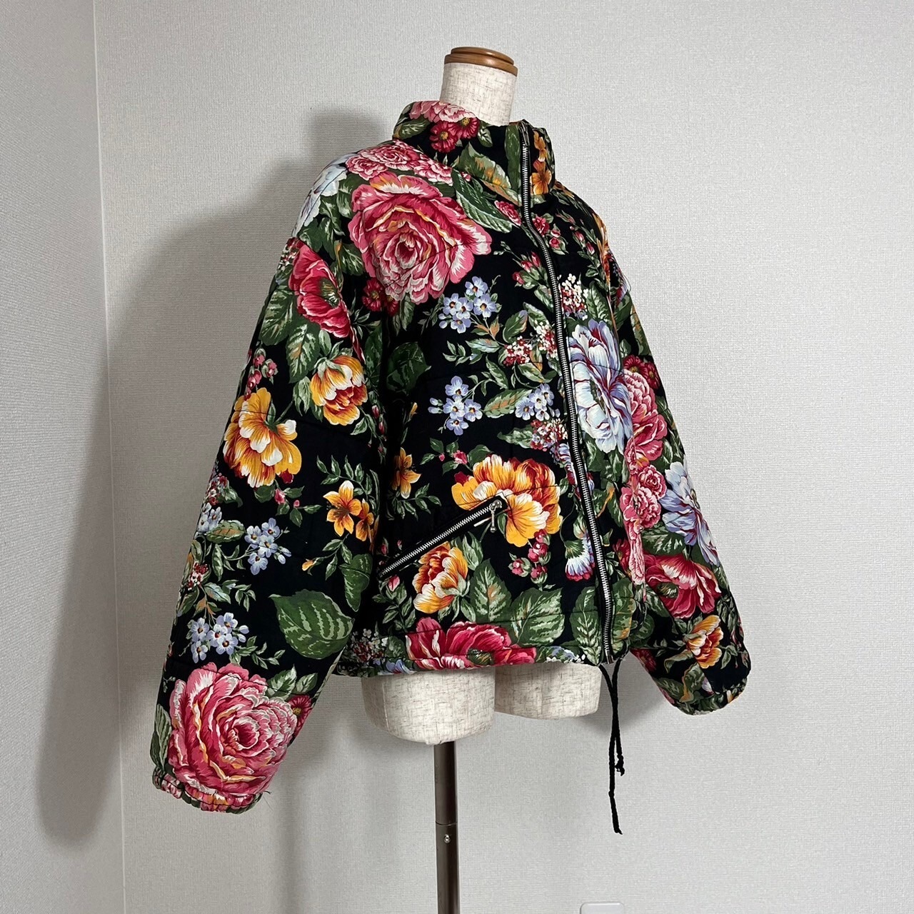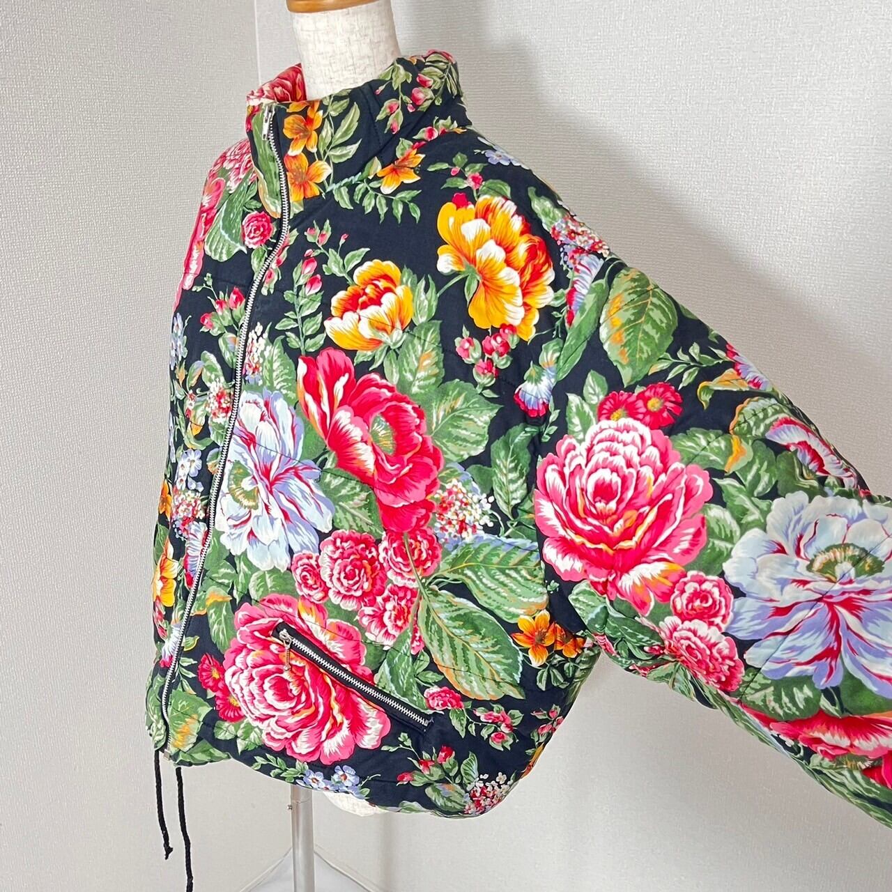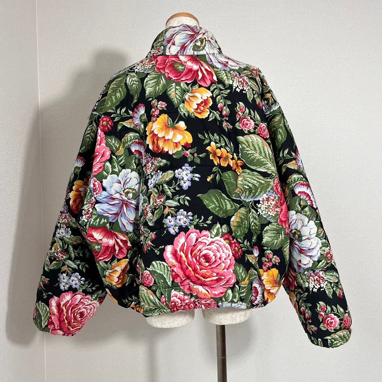 花柄 フラワープリント 総柄 ジップアップ スタンドカラー 中綿 キルティングジャケット