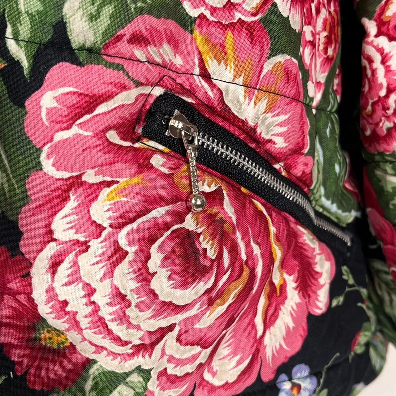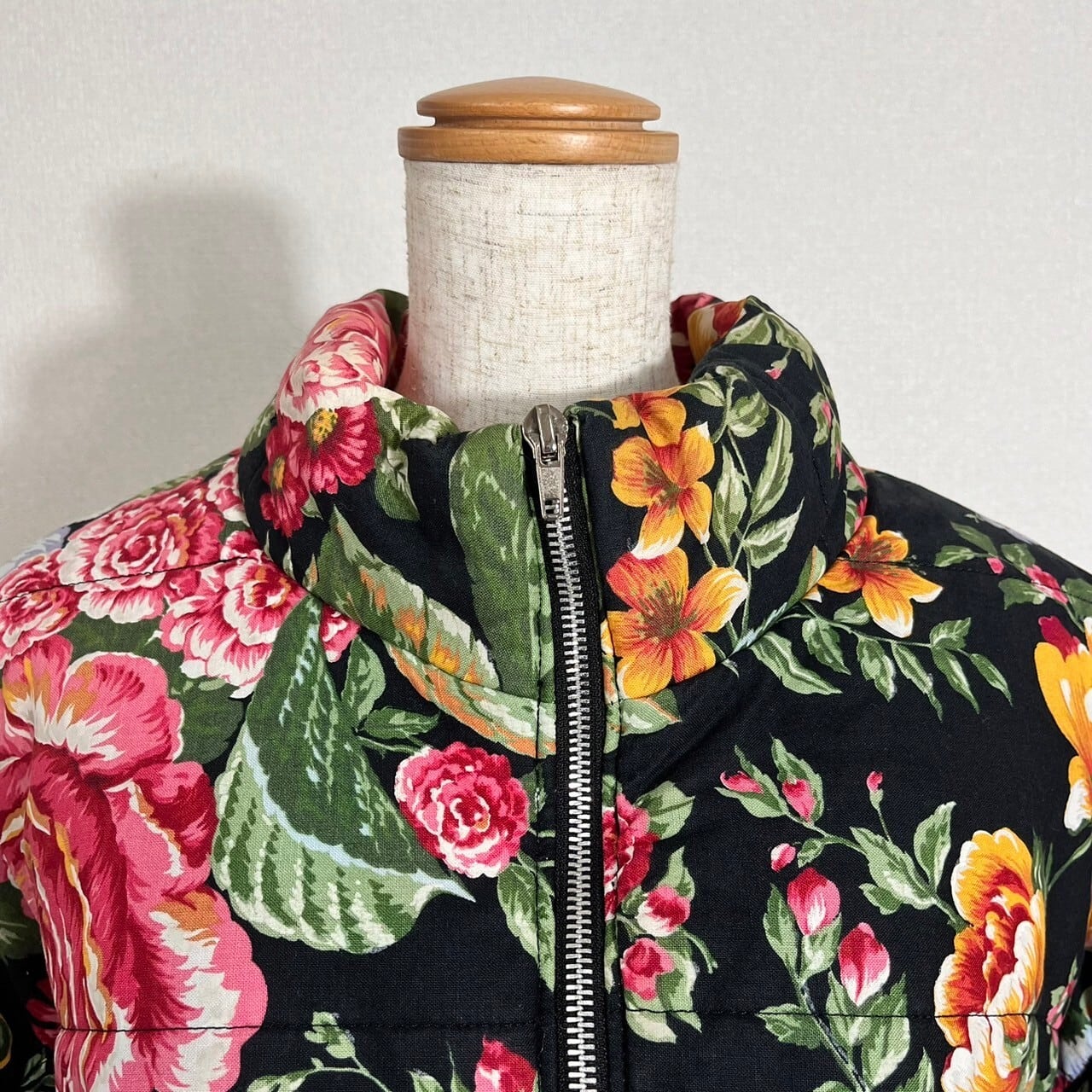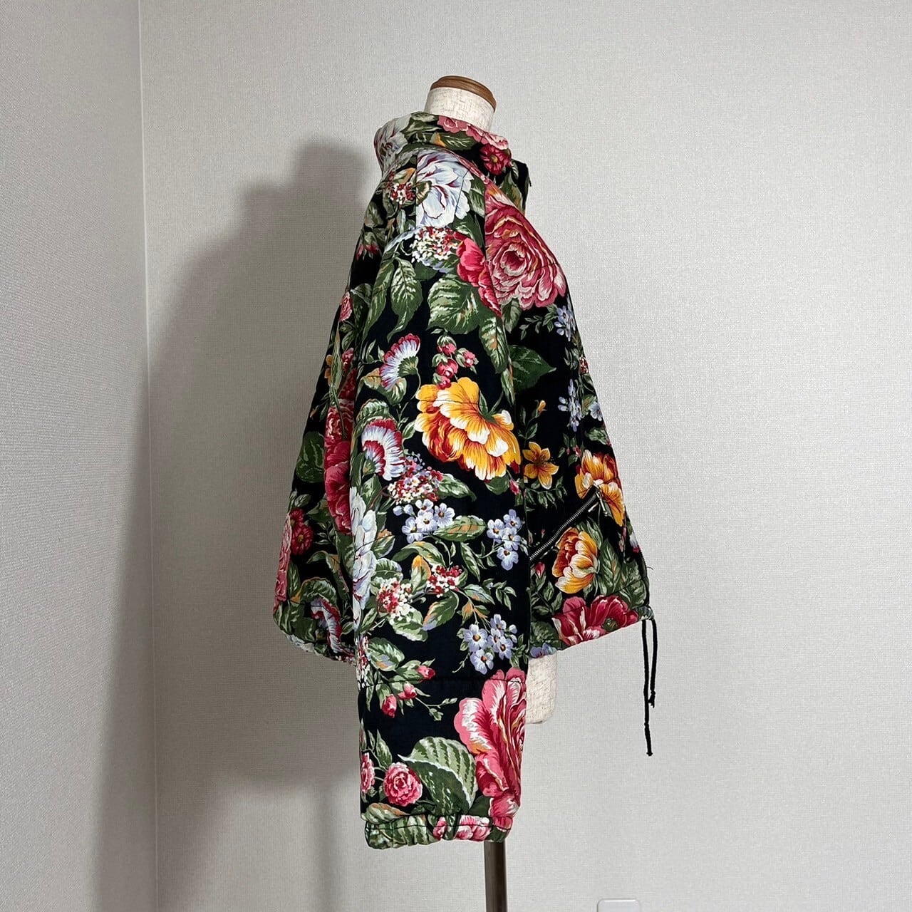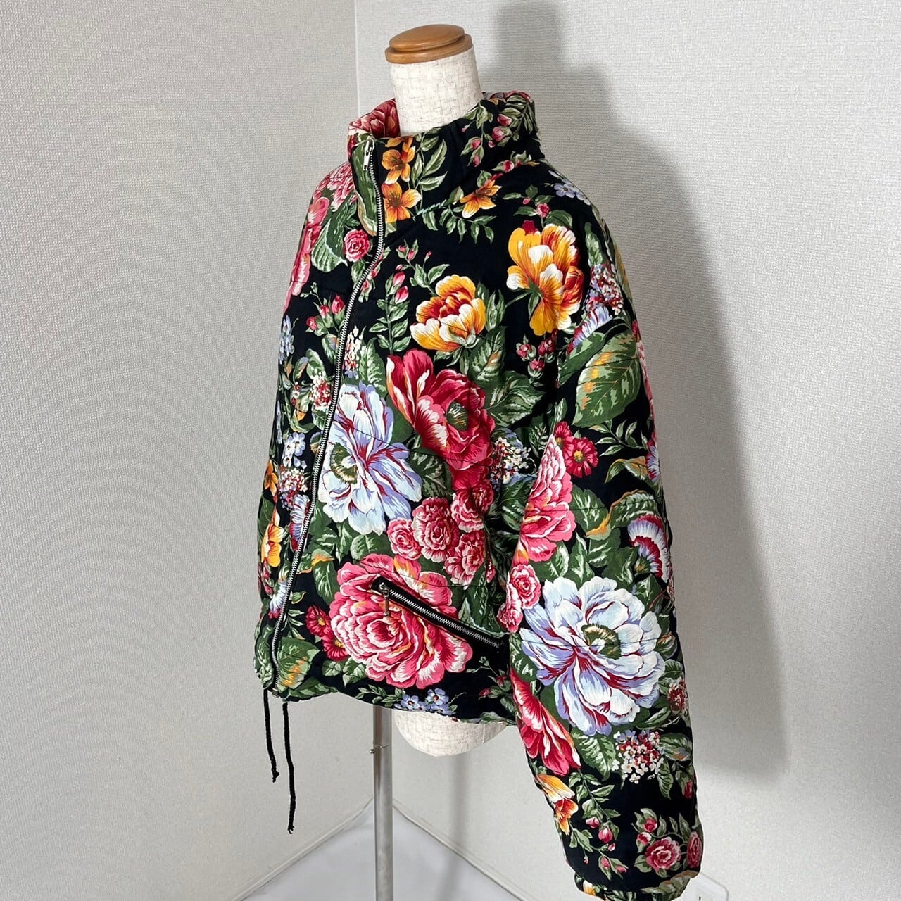花柄 フラワープリント 総柄 ジップアップ スタンドカラー 中綿 キルティングジャケット