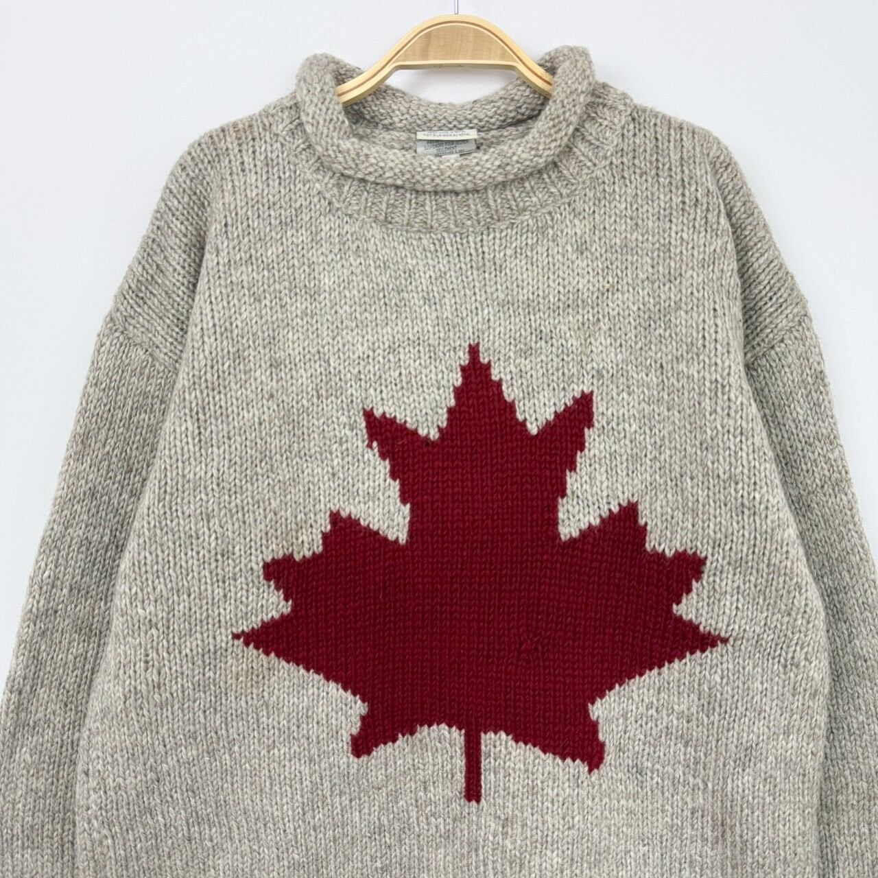 ネパール製 リーフ柄 ロールネック モックネック ウール ハンドニット 手編み 肉厚 セーター