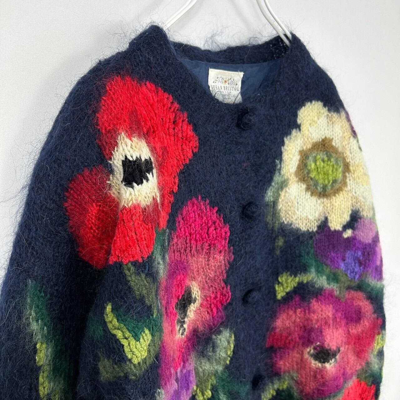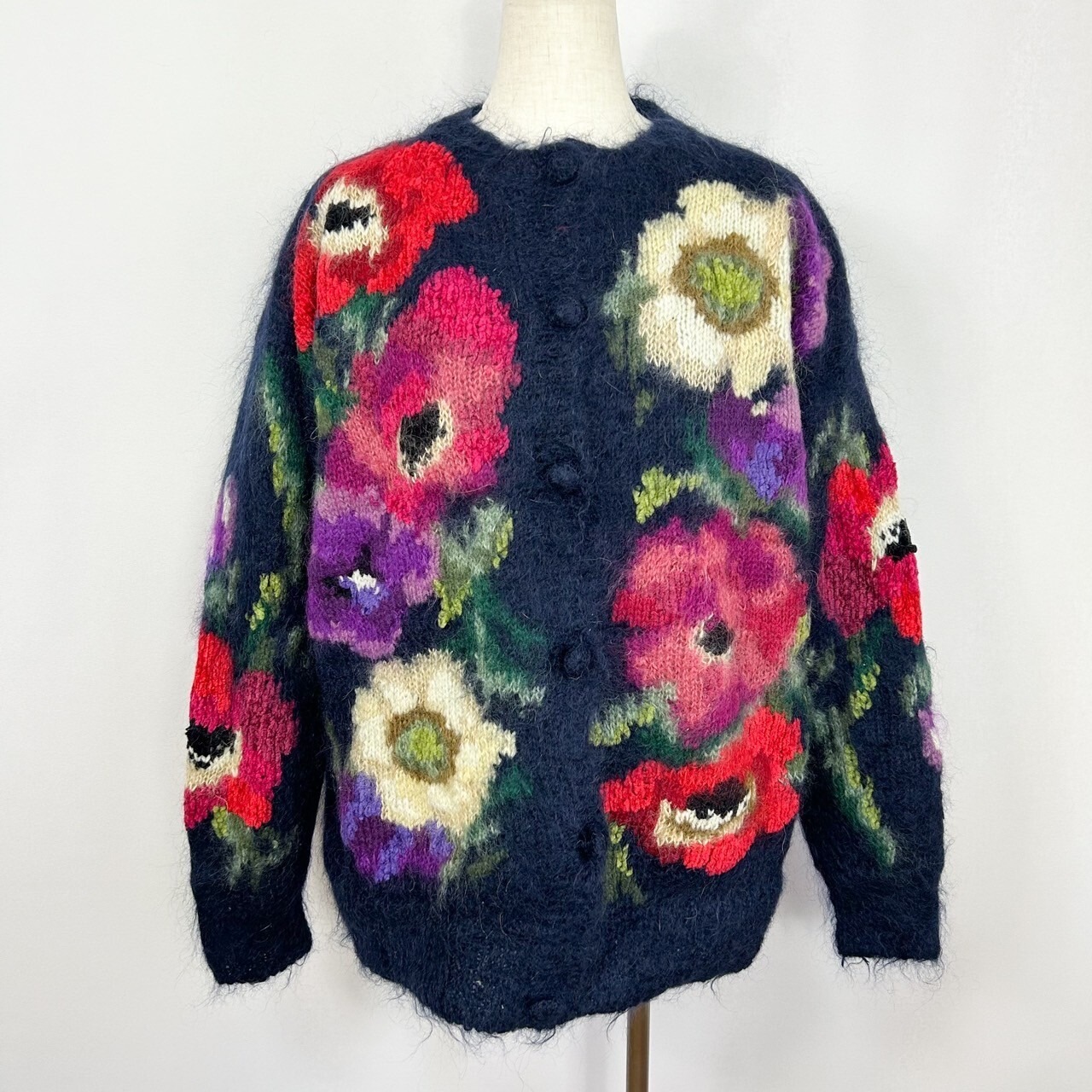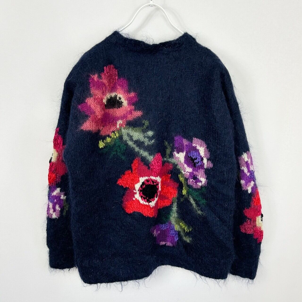 花柄 総柄 モヘア ハンドニット カーディガン セーター