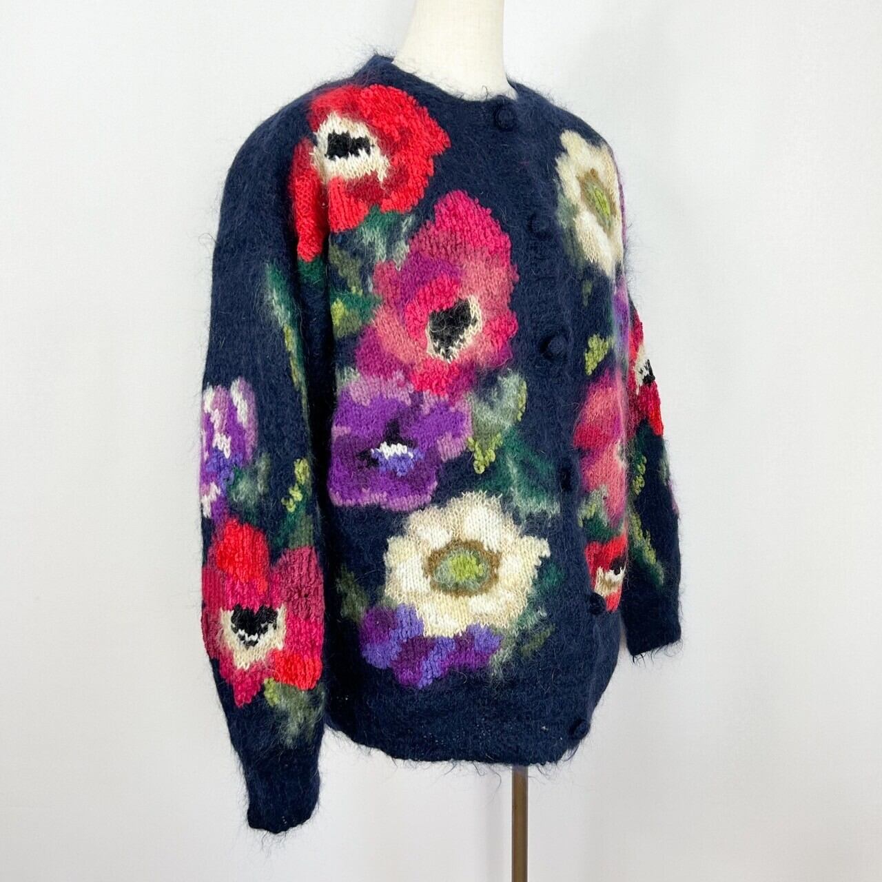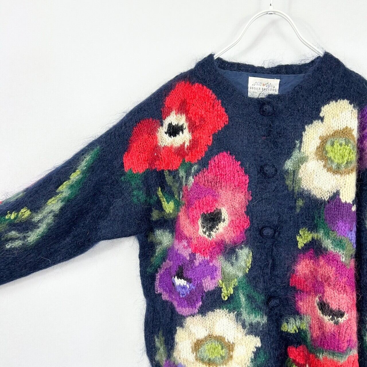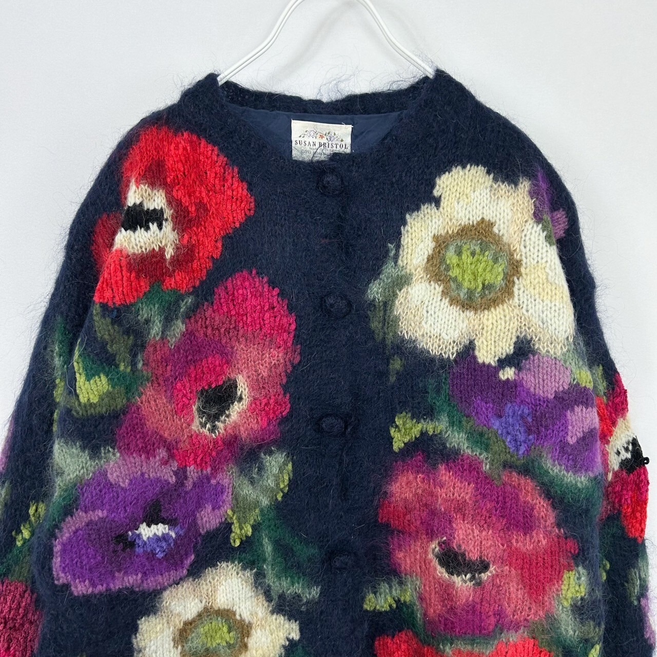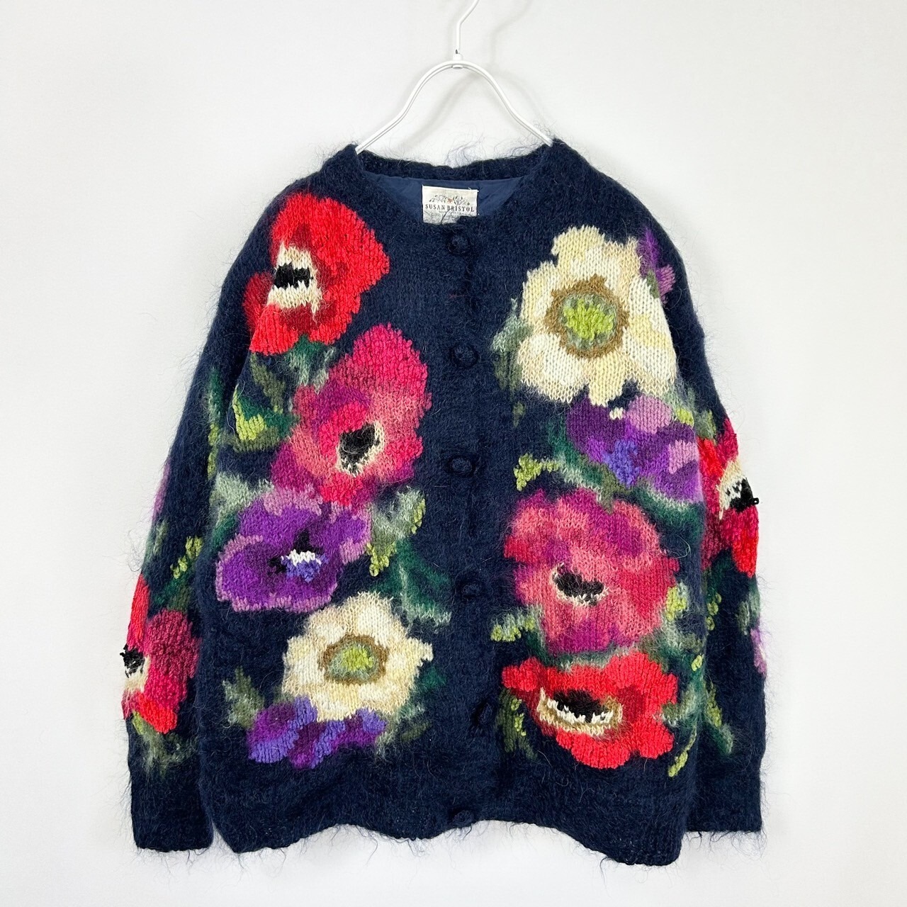 花柄 総柄 モヘア ハンドニット カーディガン セーター