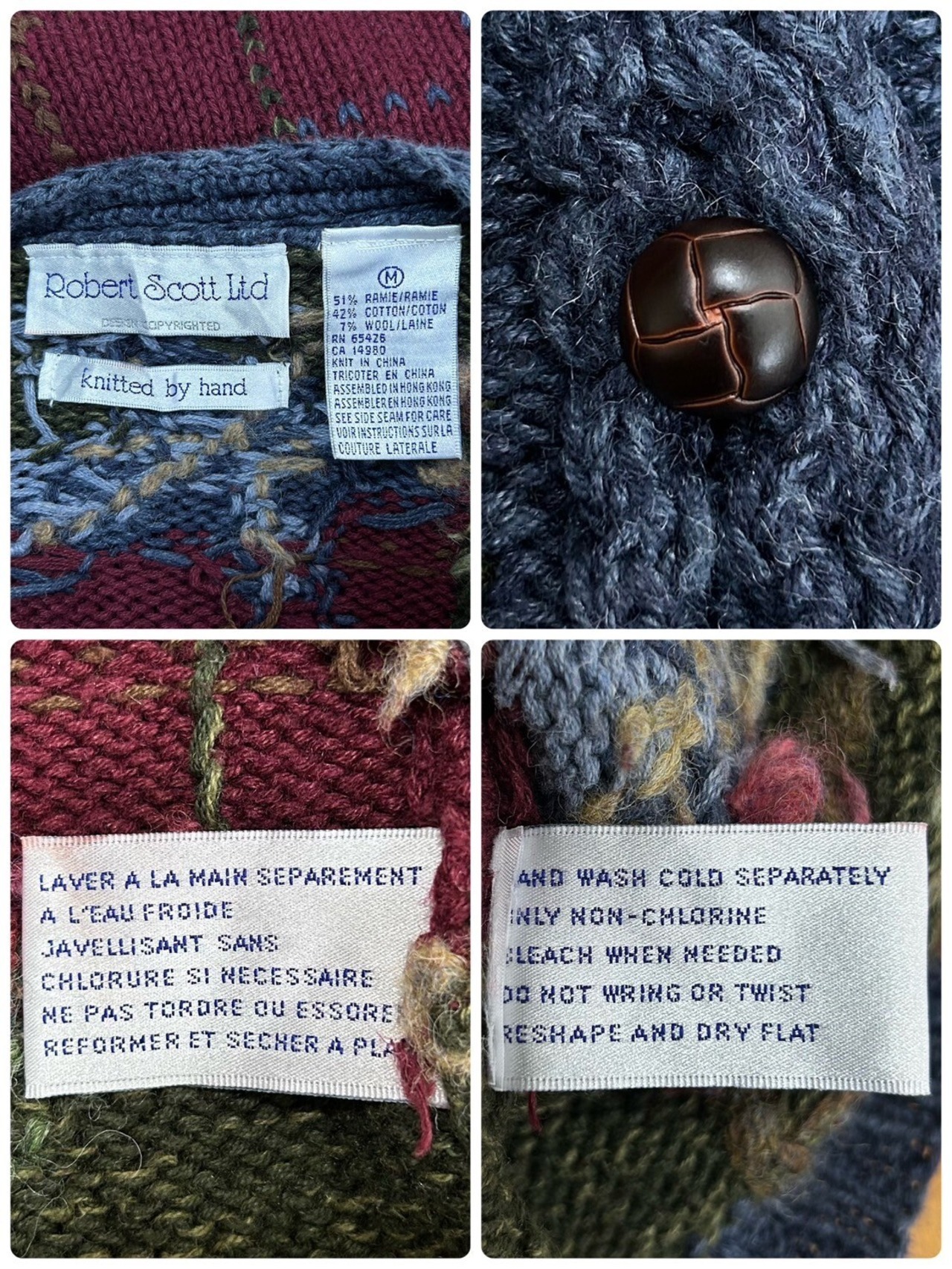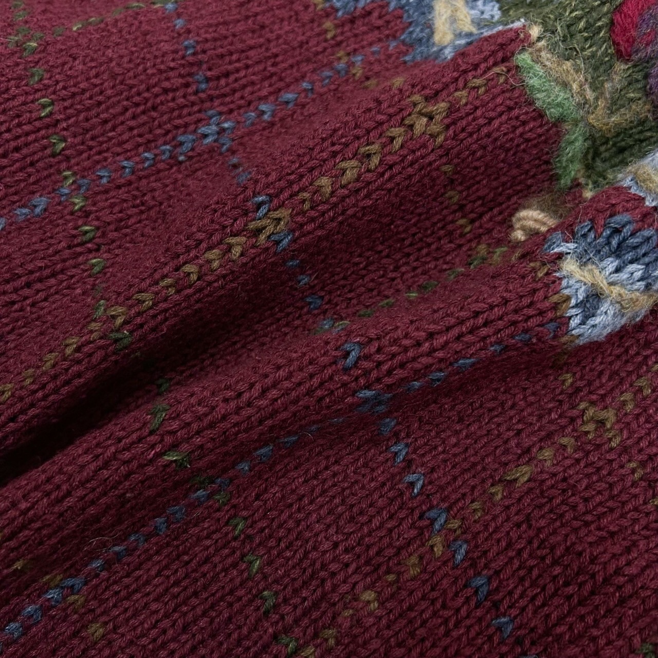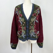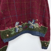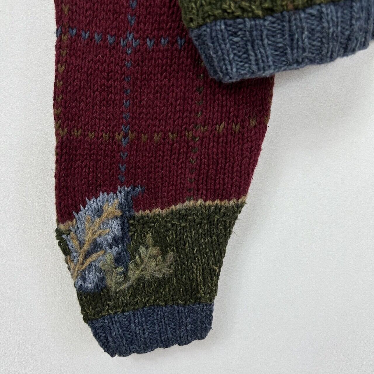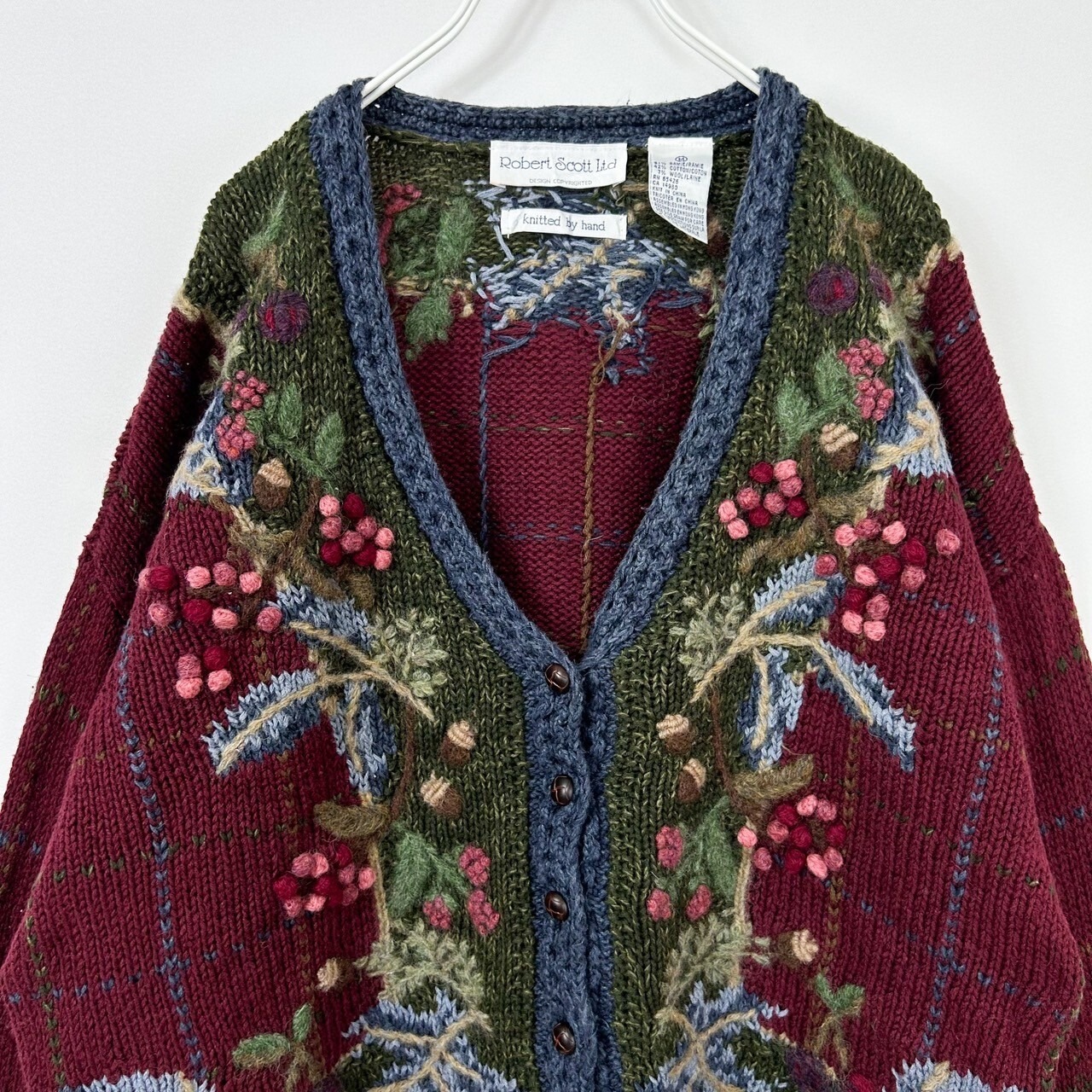 木の実 3D 立体 刺繍 総柄 チェック ラミー コットン ウール ハンドニット セーター カーディガン