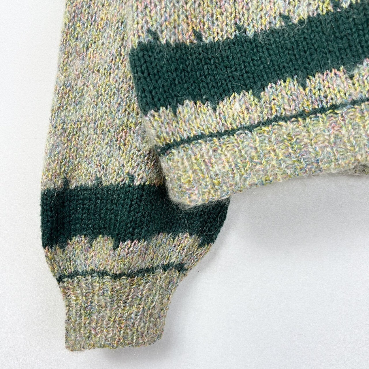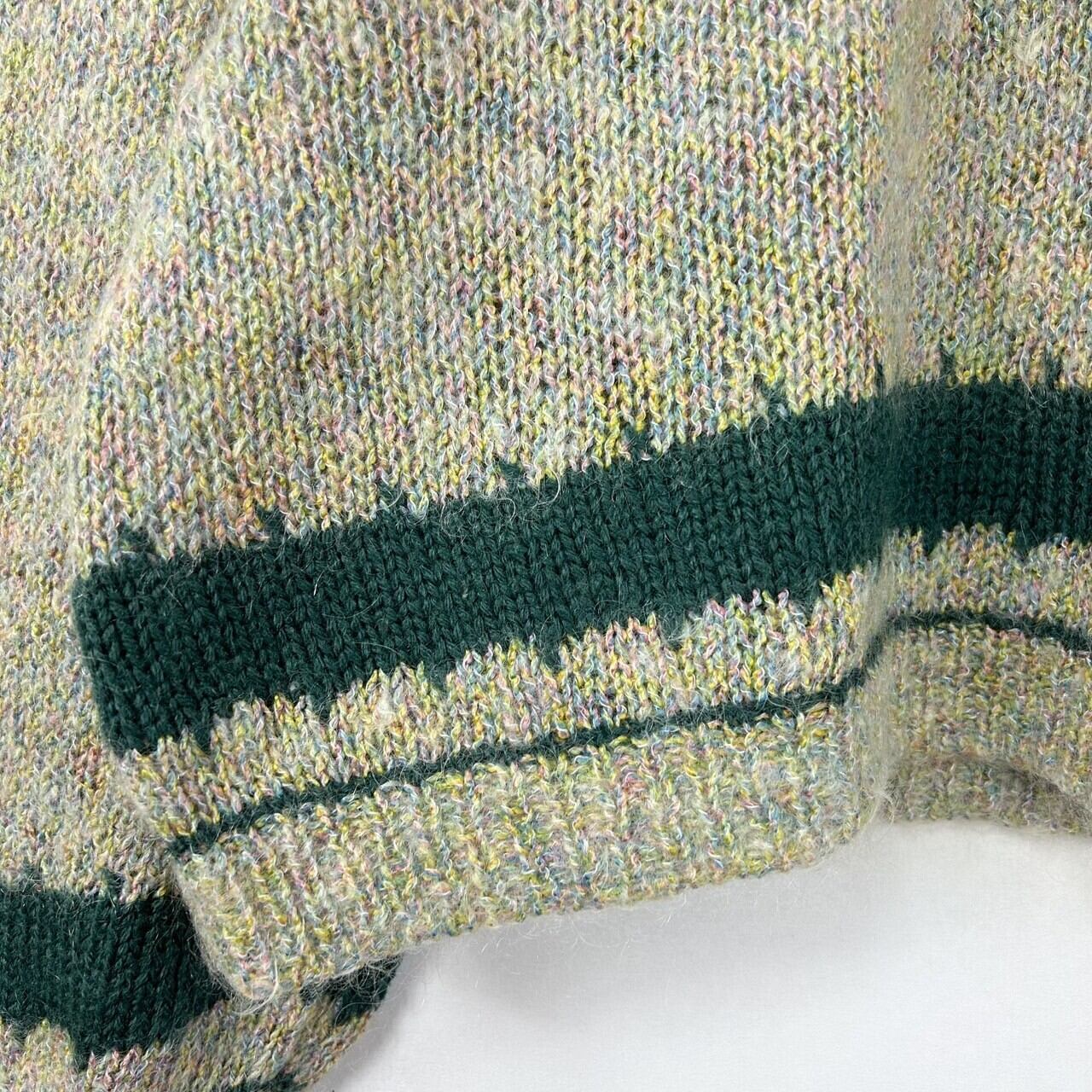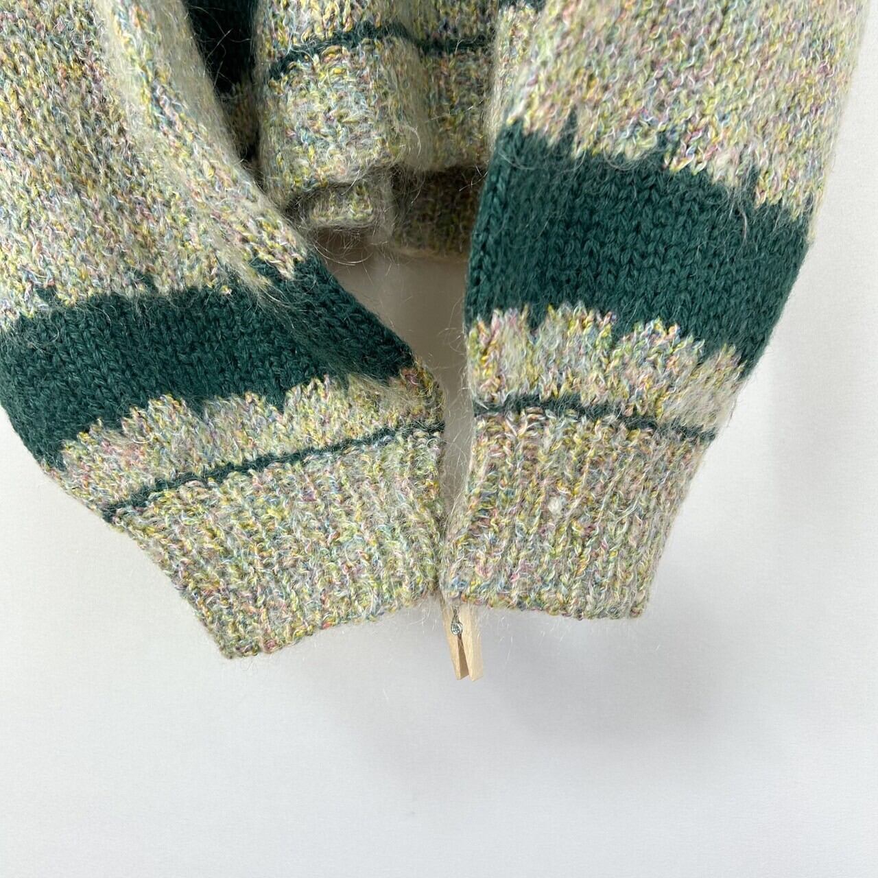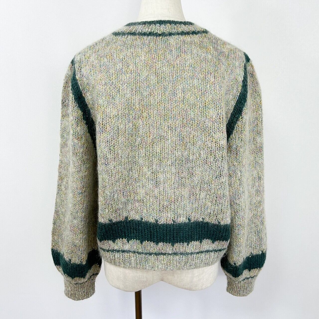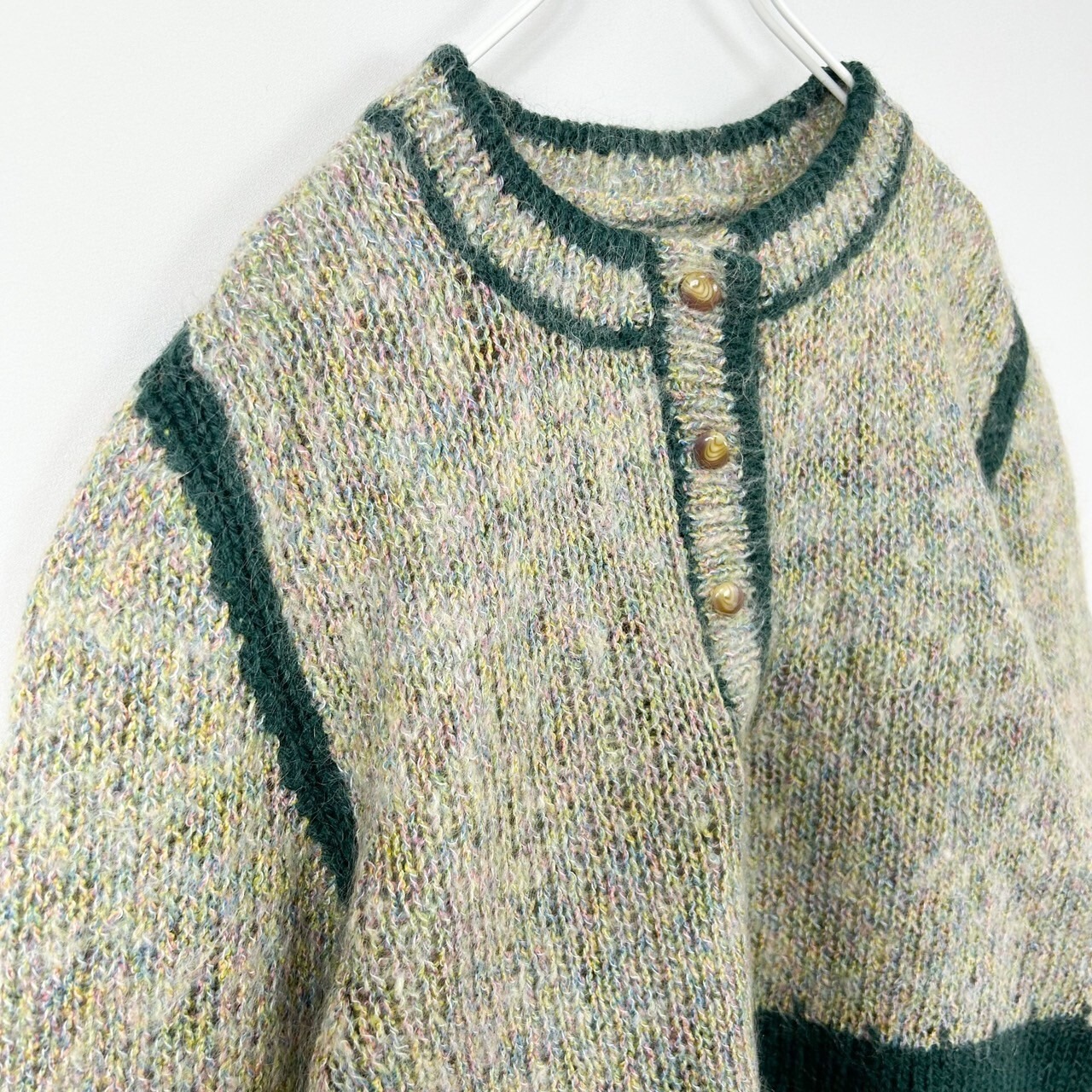 ハーフボタン ツートンカラー モヘア混 ハンドニット