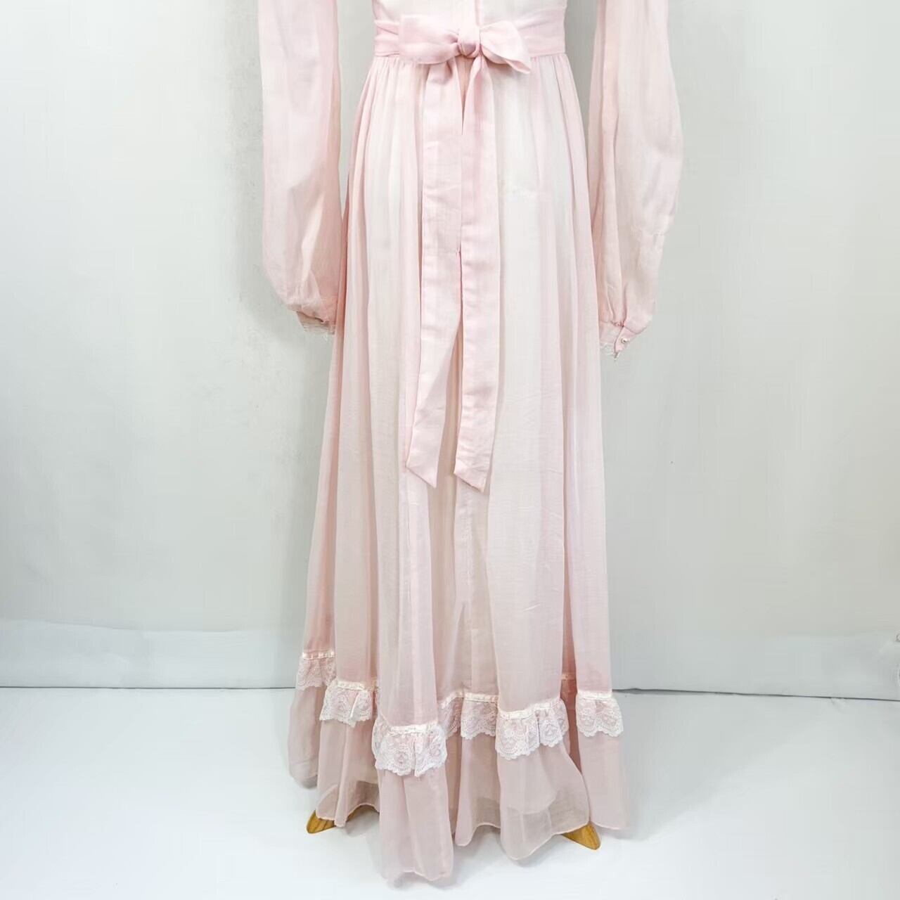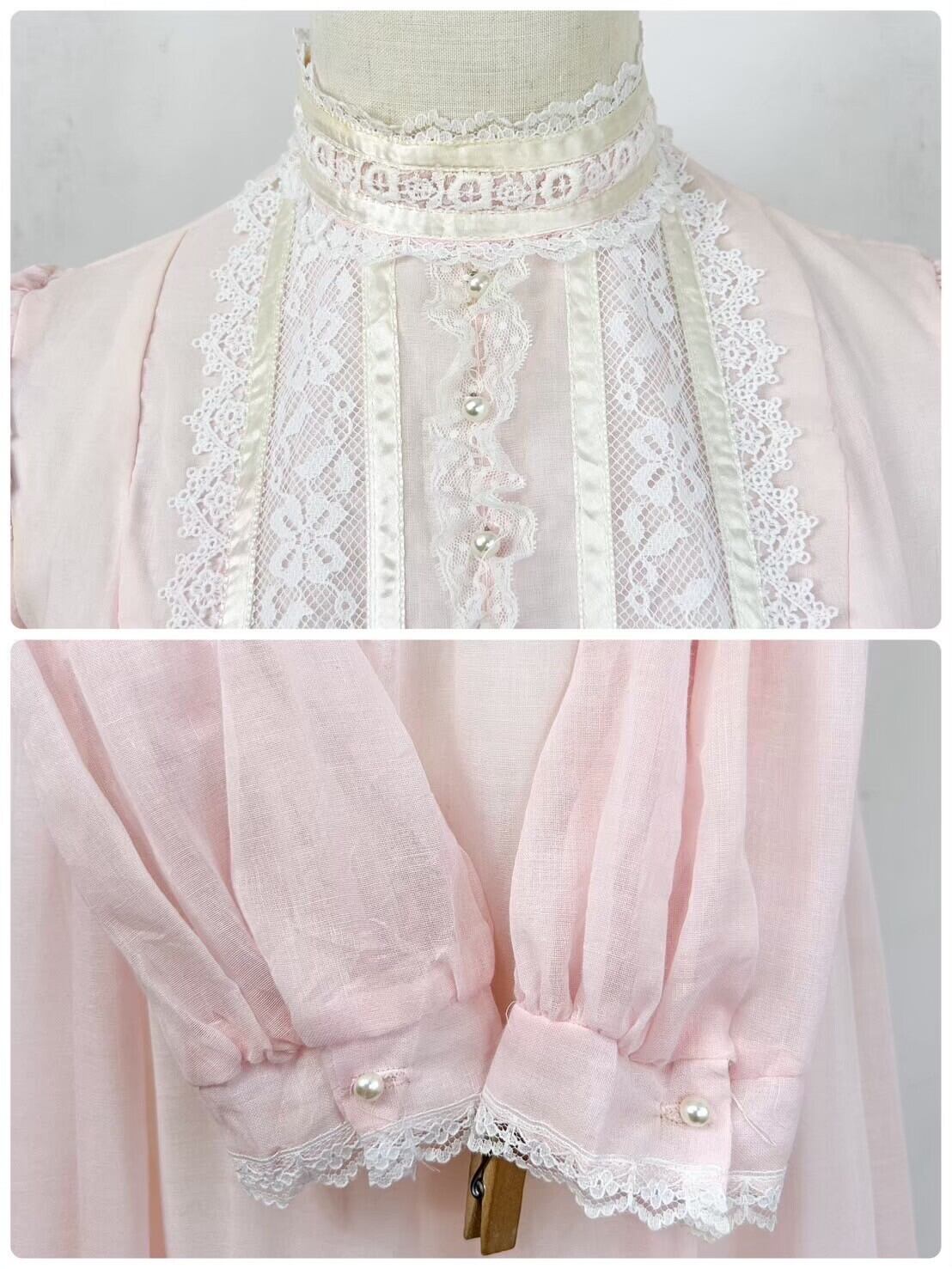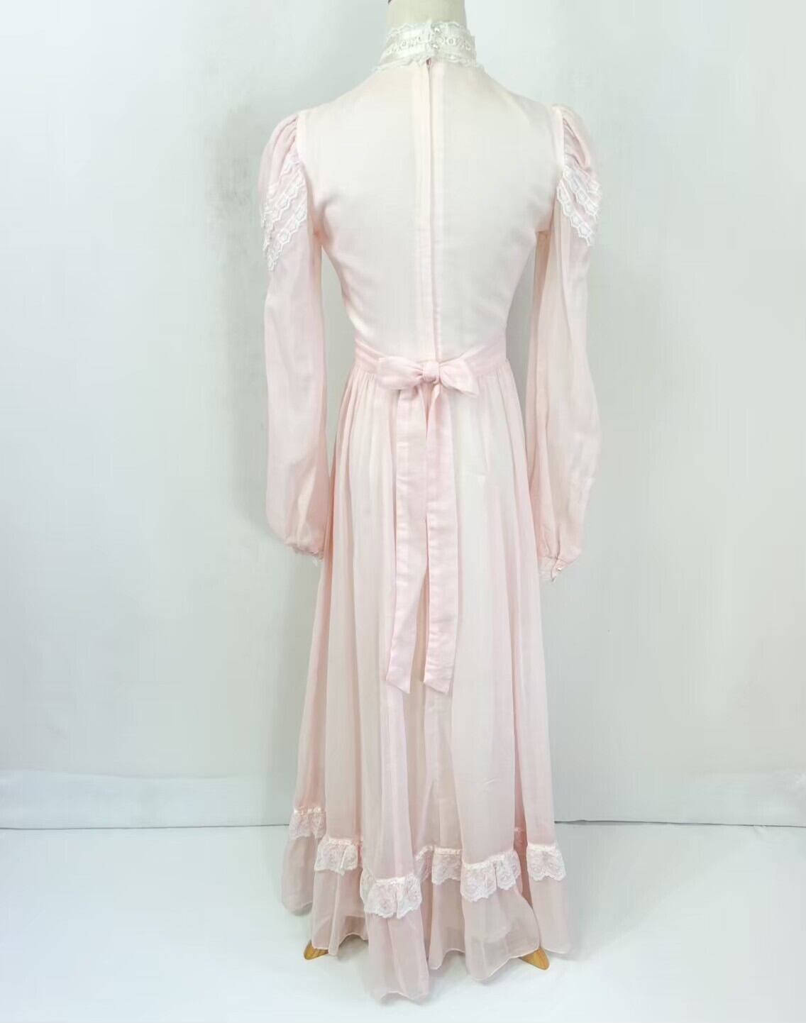 70s GUNNE SAX ガニーサックス USA製 レース パールボタン 長袖 スタンドカラー ロング ヴィクトリアン調ワンピース ドレス