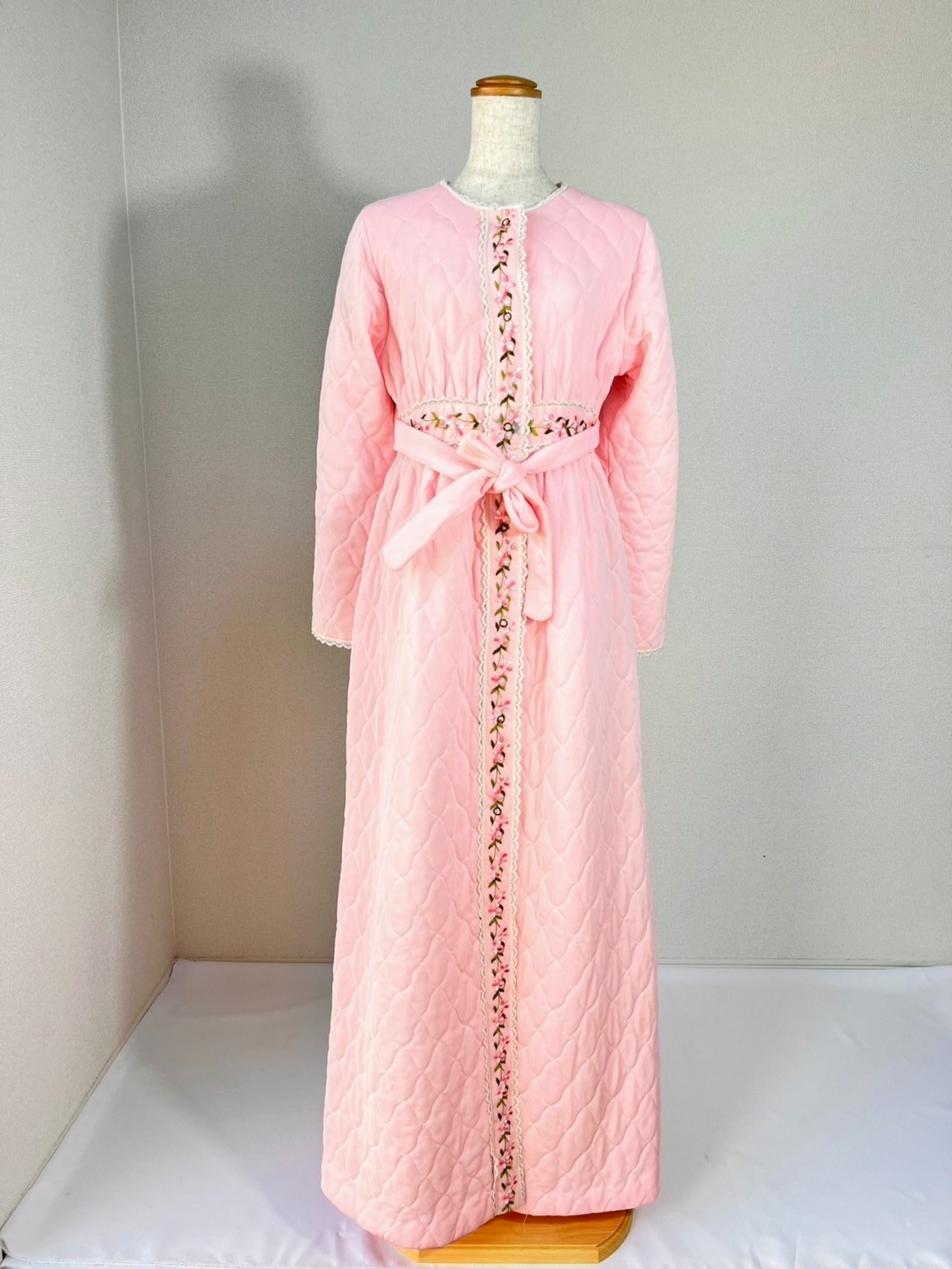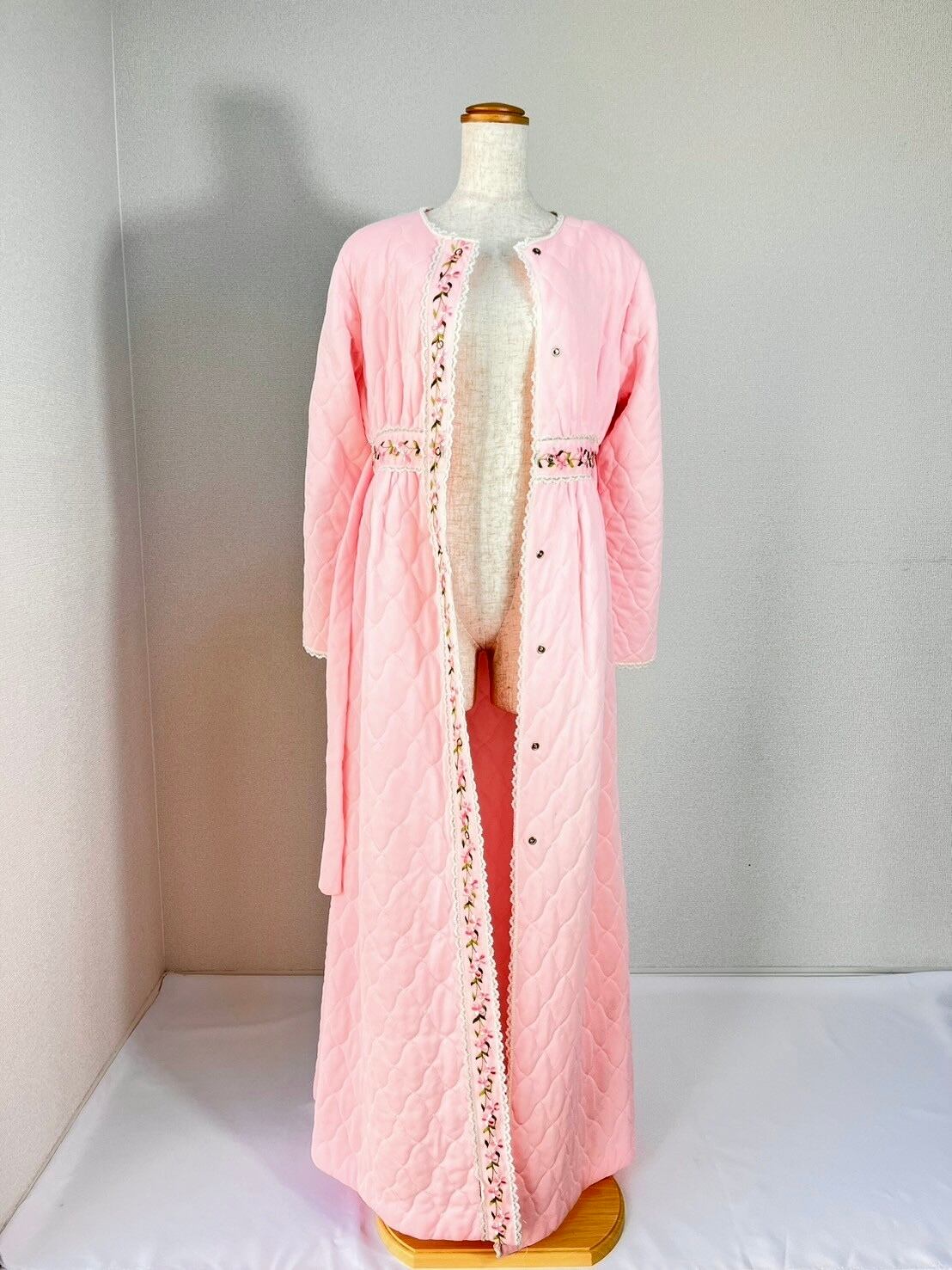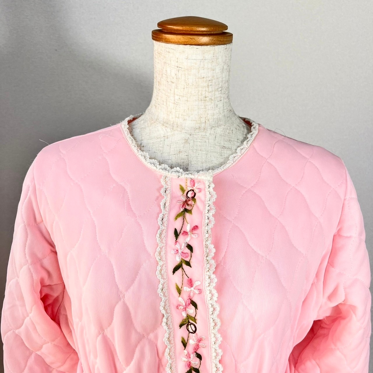 ヴィンテージ お花刺繍 レース エンブロイダリー 前開き レース キルティングコート キルトコート ロングコート