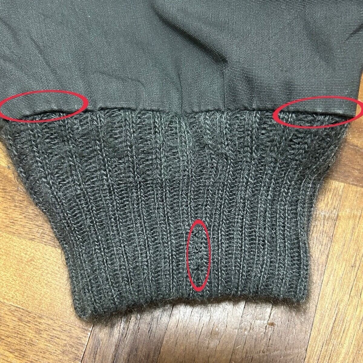左袖薄汚れ数カ所あり。右袖先リペア跡あり。袖先、前後裾擦れで白っぽくなっているところ数カ所あり。