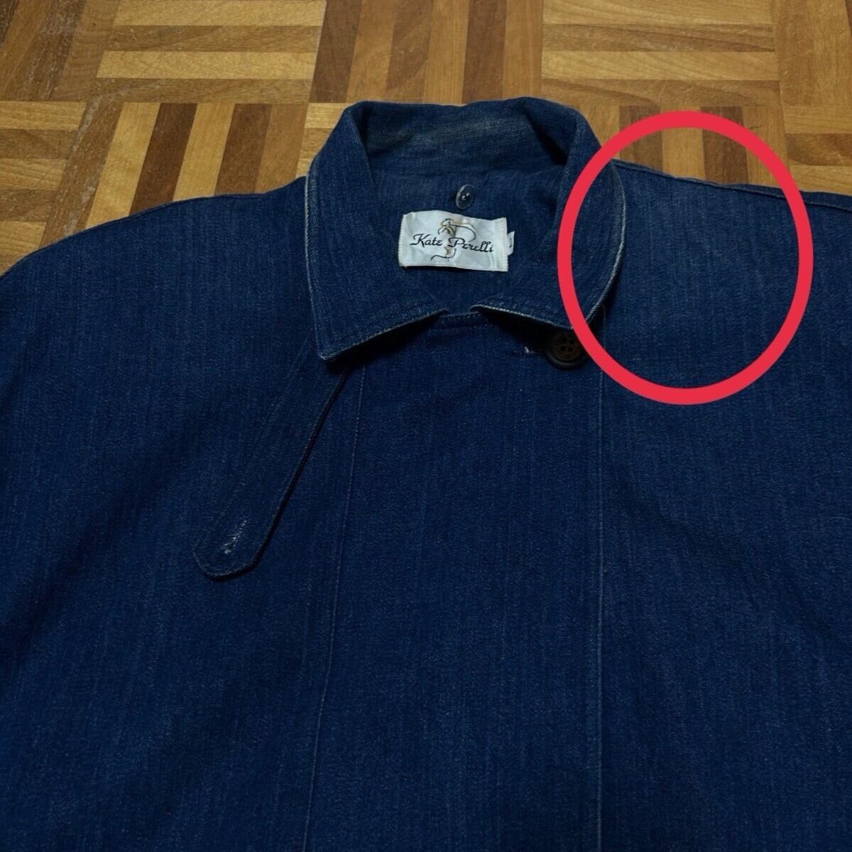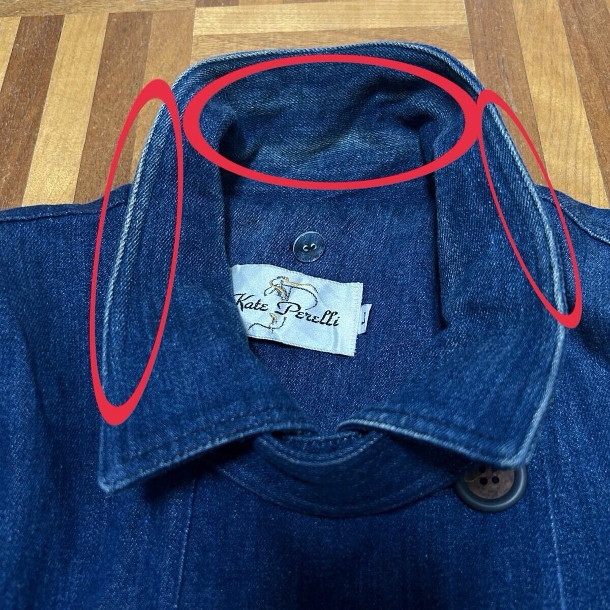 襟薄汚れあり。襟、袖、ポケット口、右裾擦れで白っぽくなっているところ数カ所あり。