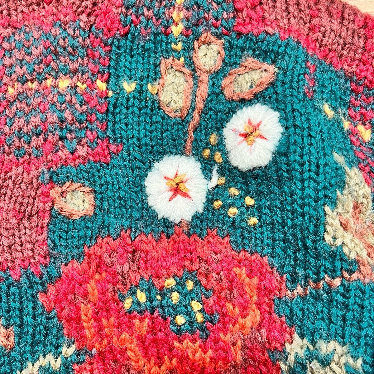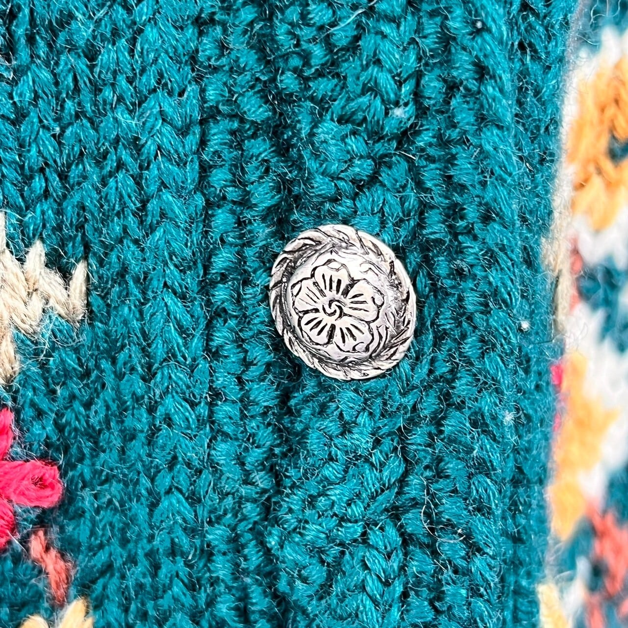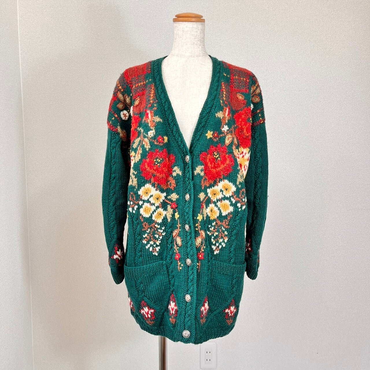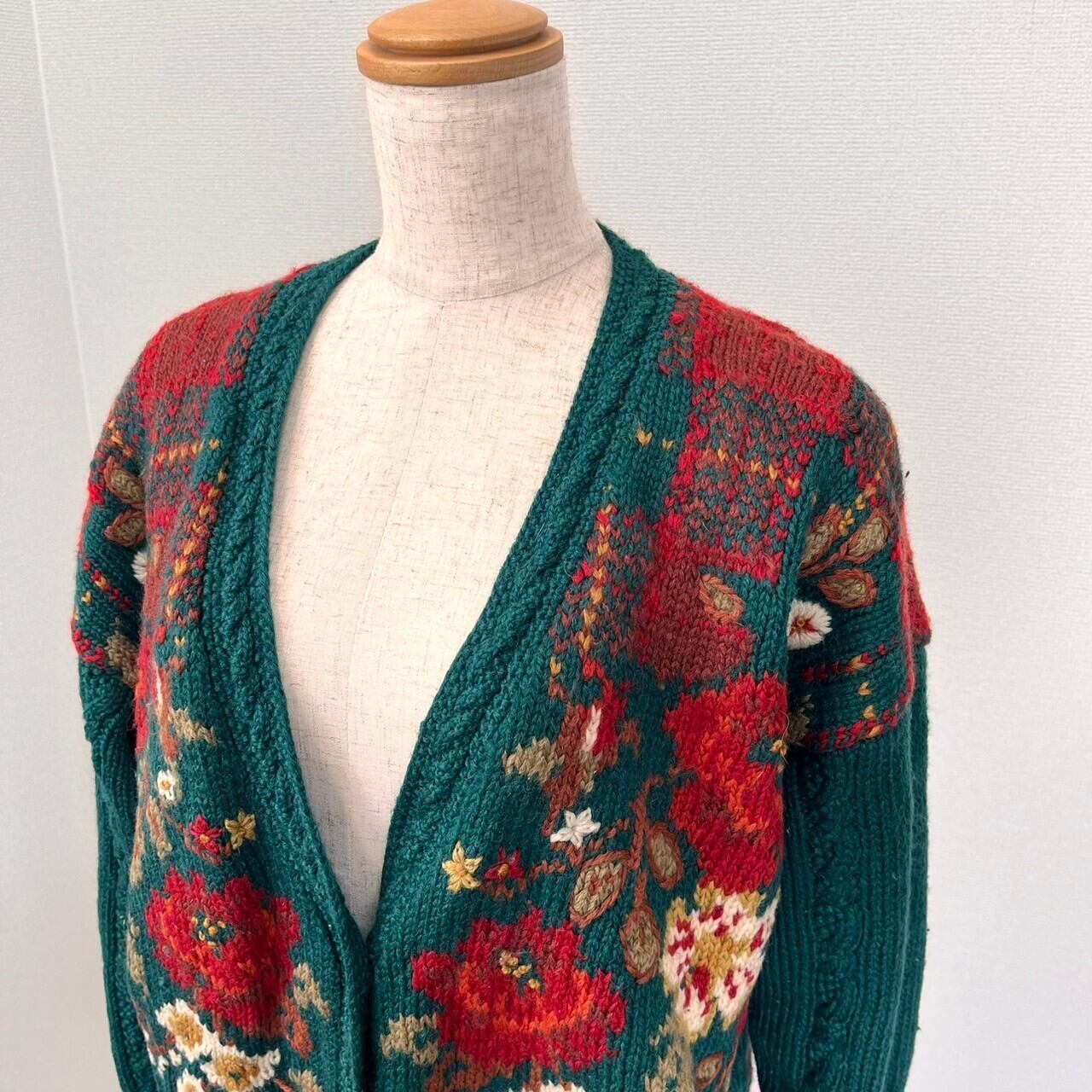 Laura Ashley ローラアシュレイ 花柄 チェック 総柄 刺繍 エンブロイダリー デザインボタン メタルボタン ウール ニット カーディガン セーター