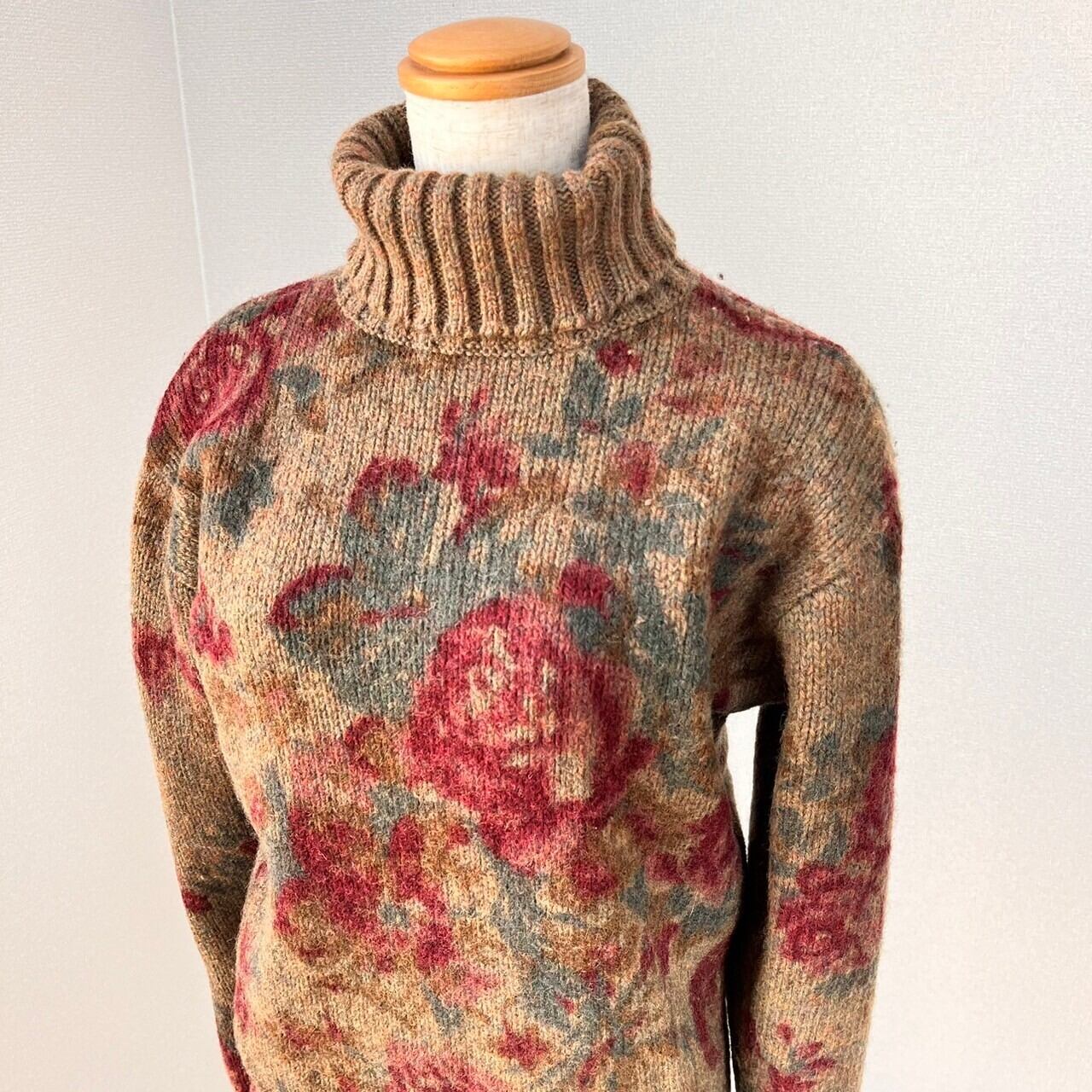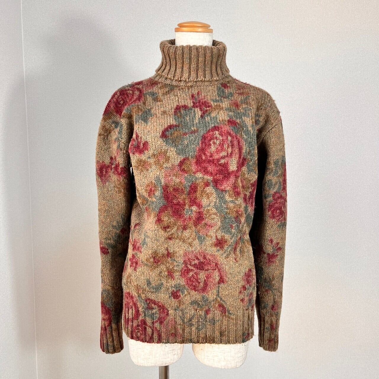 ラルフローレン Ralph Lauren ウール タートルネック ハイネック 花柄 フラワープリント バラ ニット セーター
