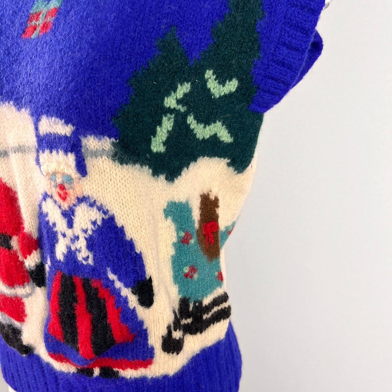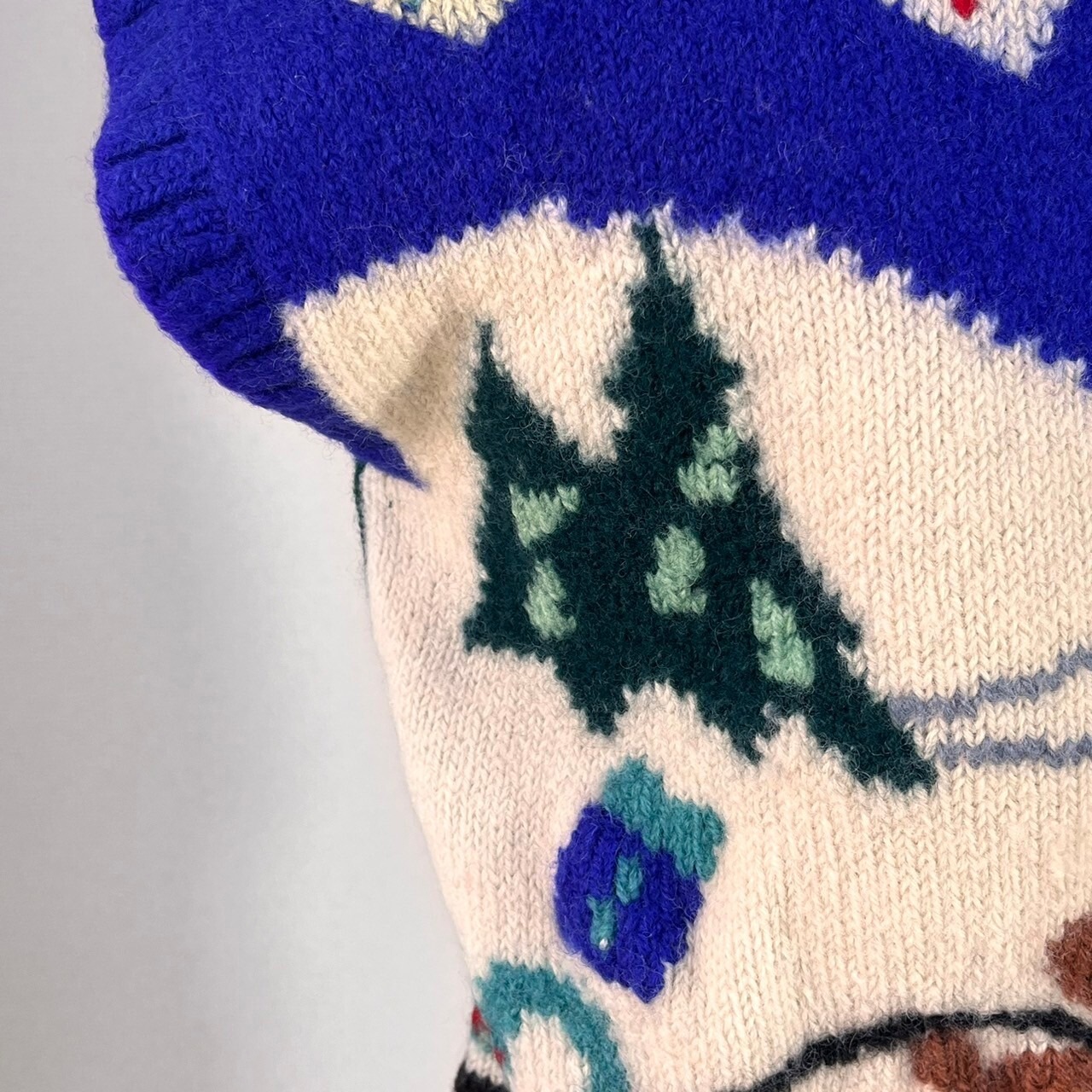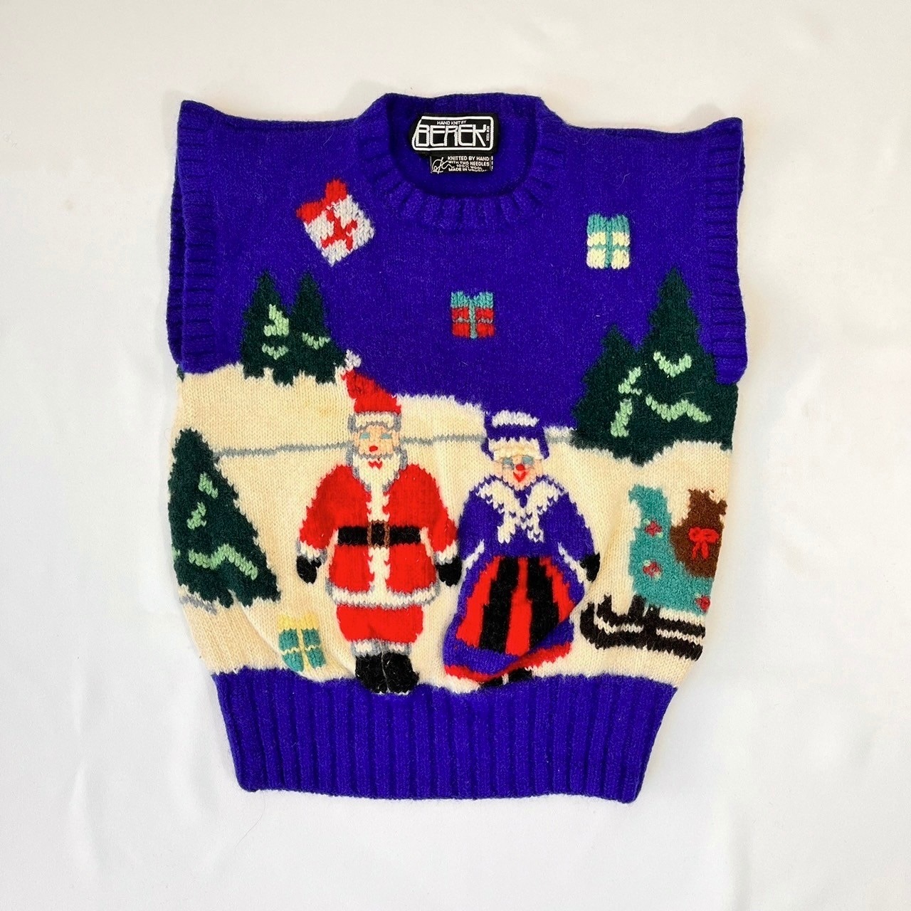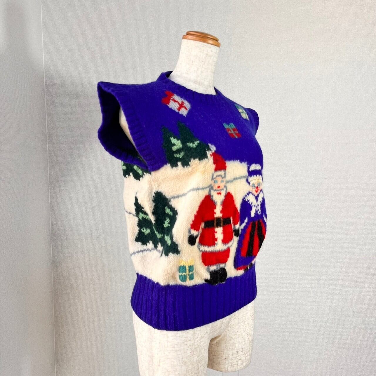 ウルグアイ製 クリスマス柄 サンタ 肉厚 ウール ハンドニット ベスト セーター
