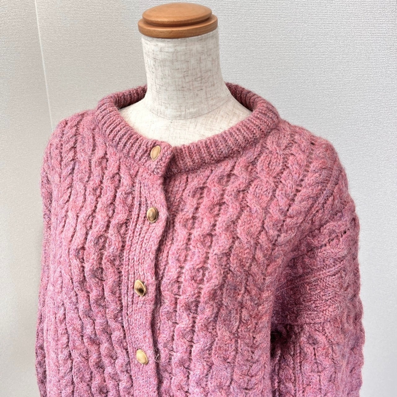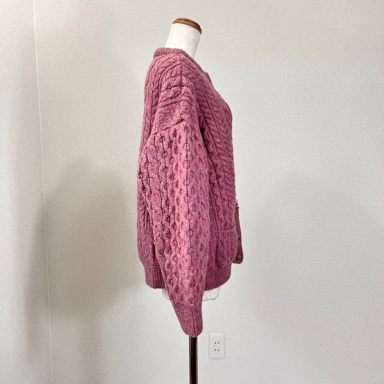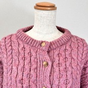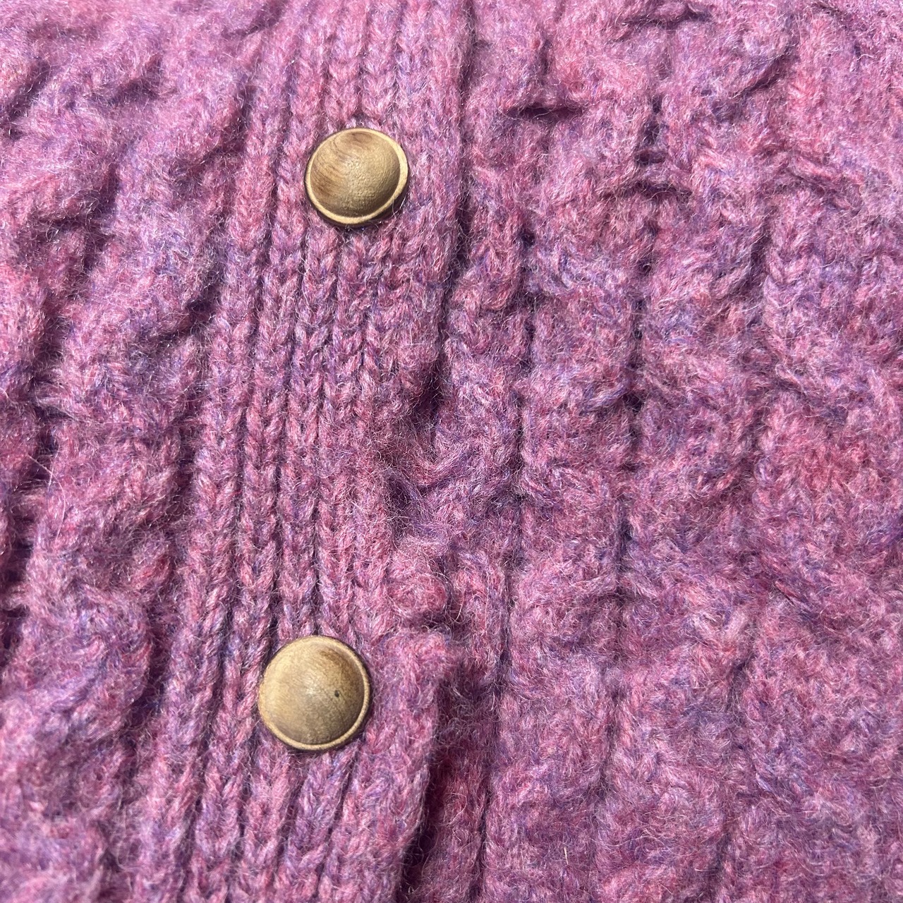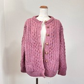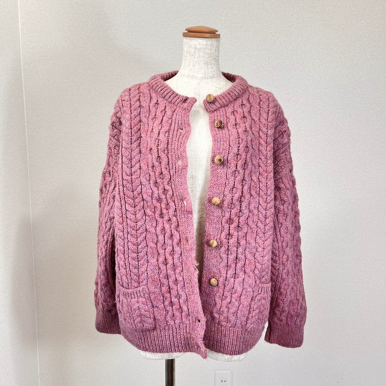 ヴィンテージ アイルランド製 肉厚 ウッドボタン フィッシャーマンニット ハンドニット カーディガン