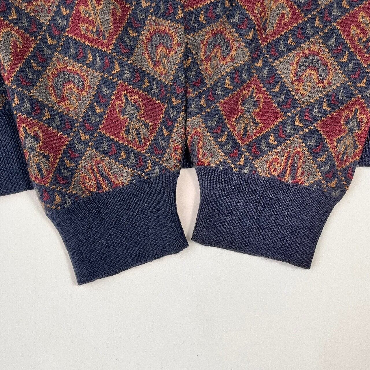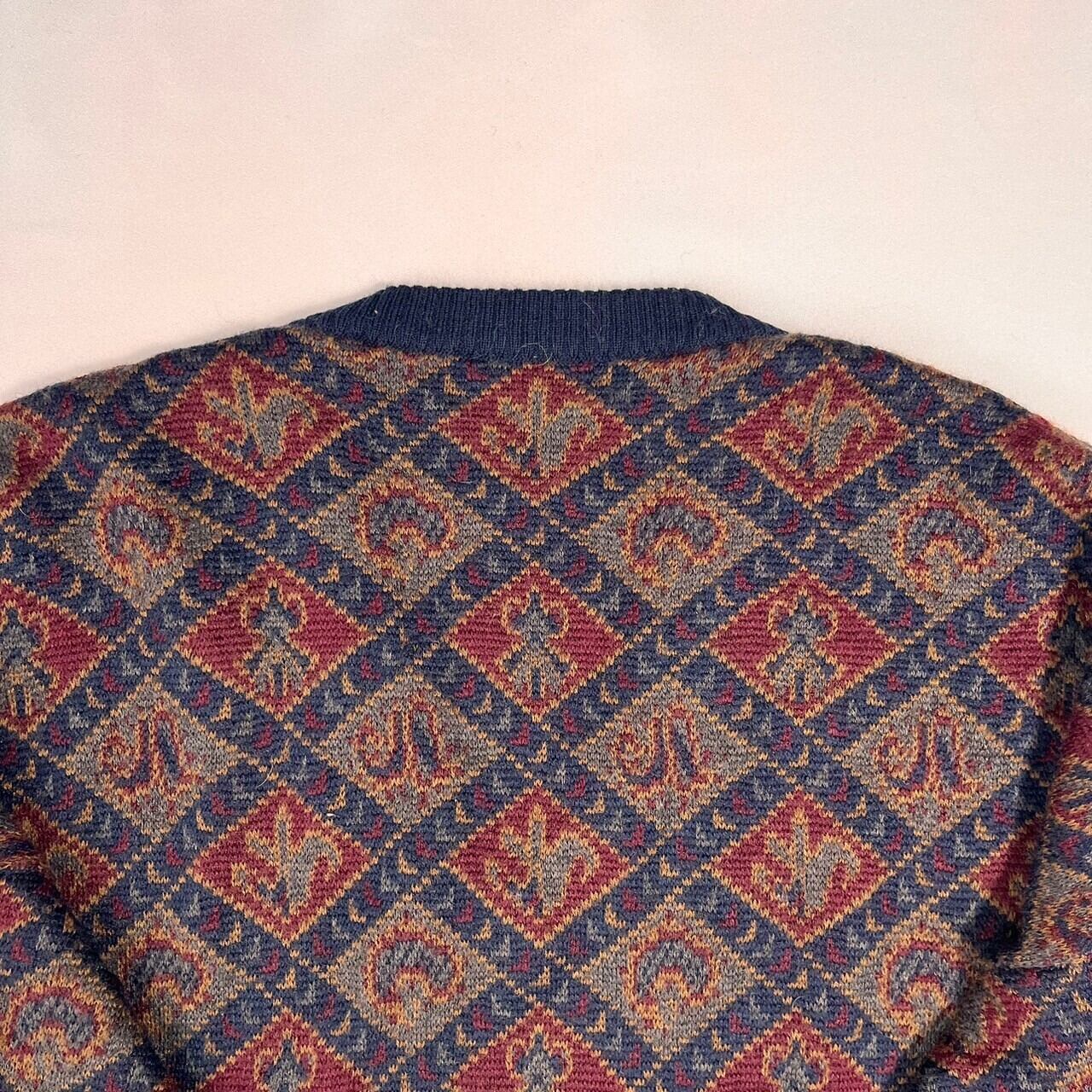 LANDS'END ランズエンド Vネック ウール混 総柄 ニット セーター