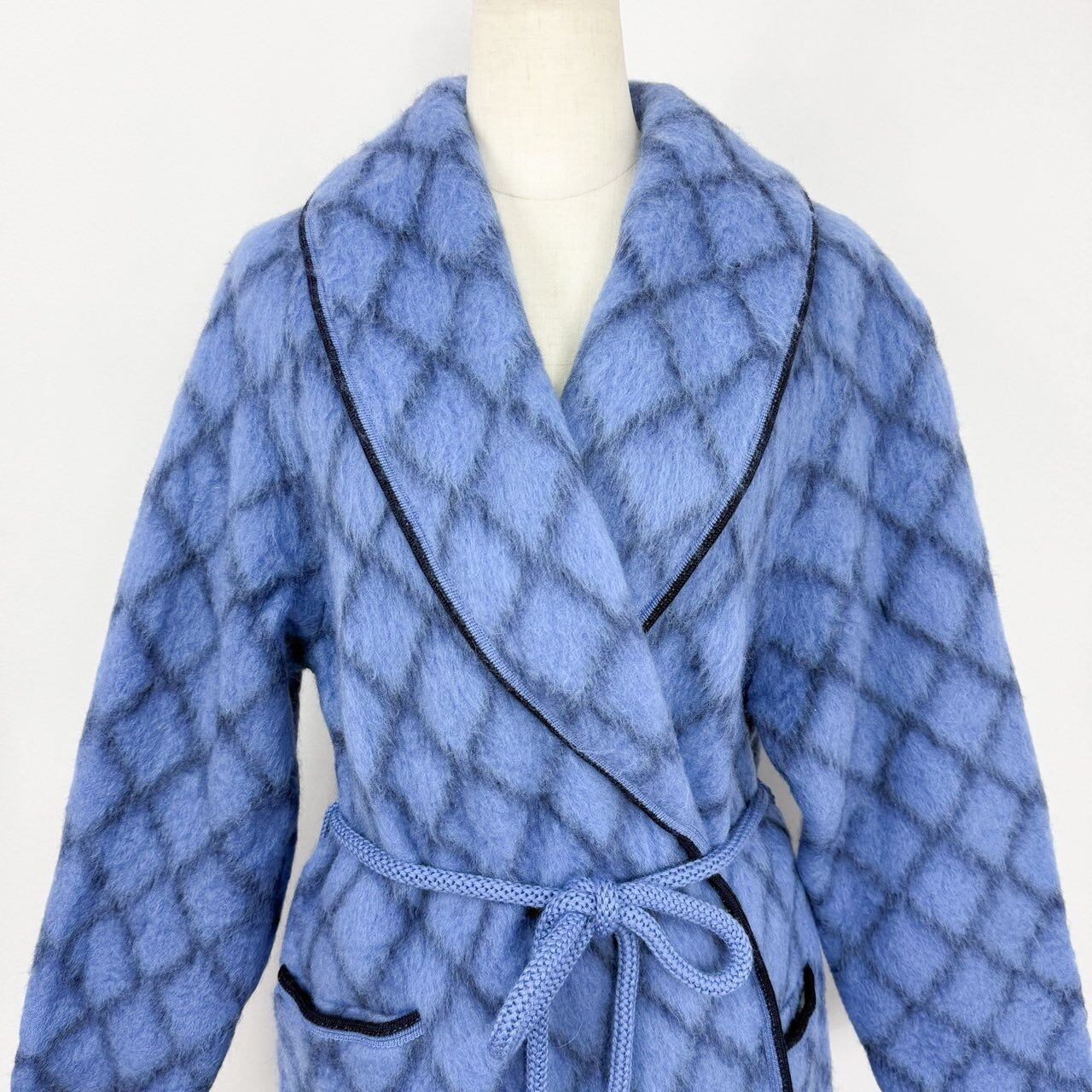 フランス製 ダイヤ柄 ウールガウンコート