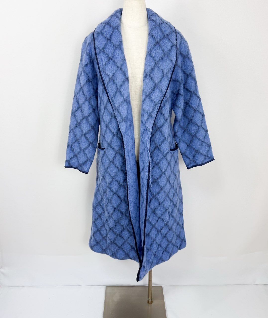 ヴィンテージ フランス製 ダイヤ柄 総柄 肉厚 ウールガウンコート ロングコート