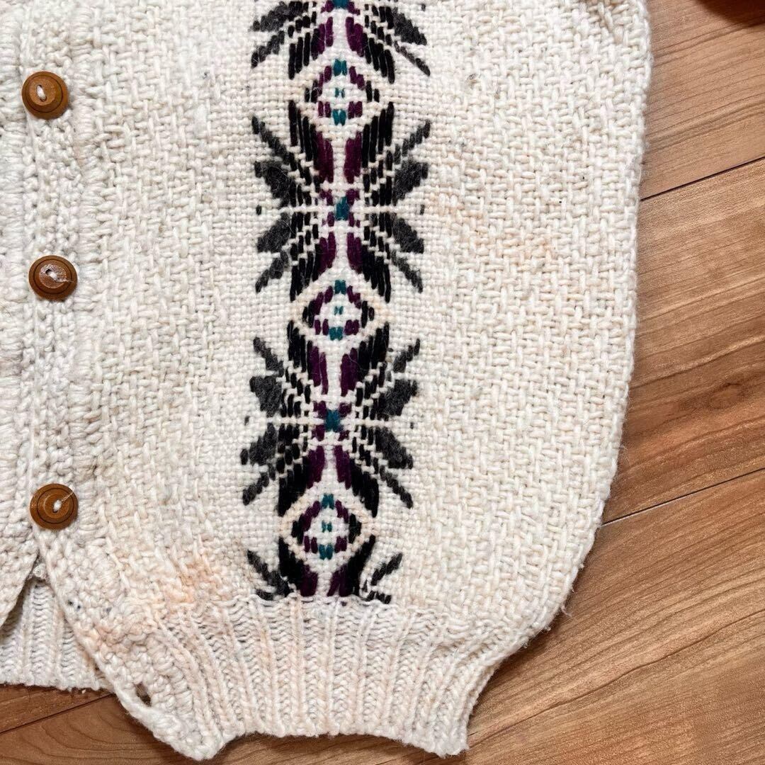 エクアドル製 肉厚 ウール 手編み ハンドニット カーディガン セーター