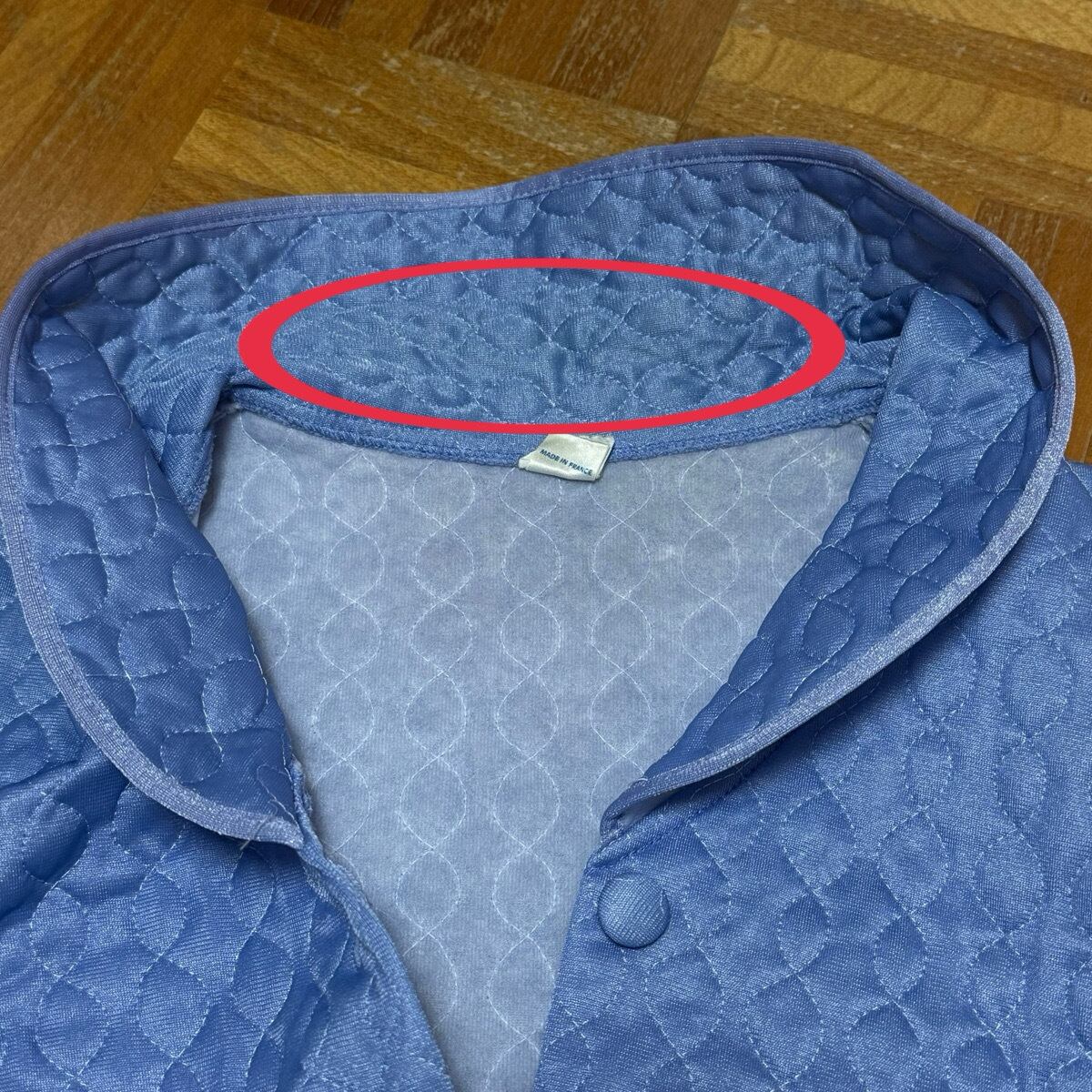 襟周り内側、薄汚れあり。右胸下辺り変色あり。