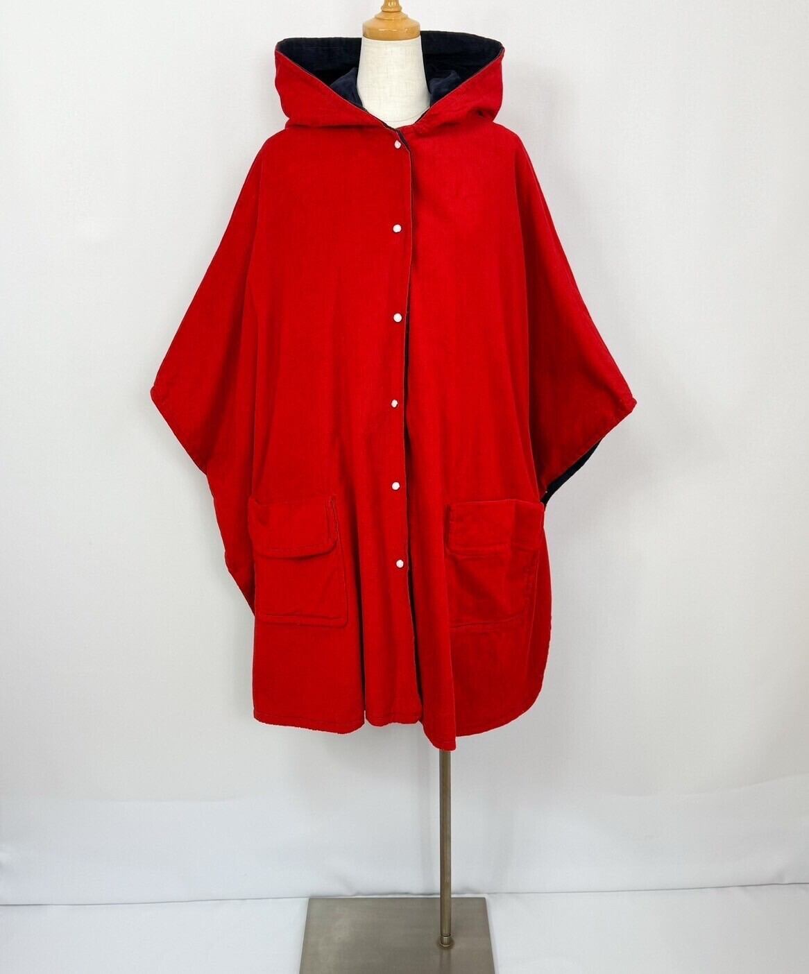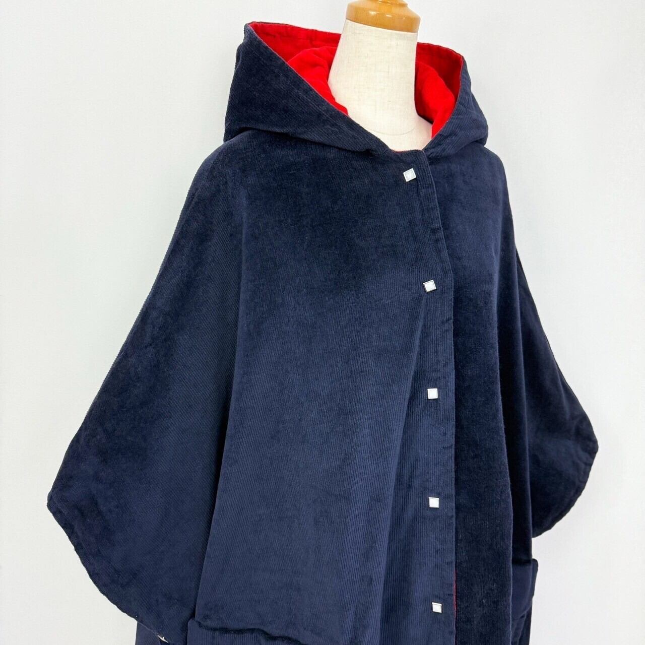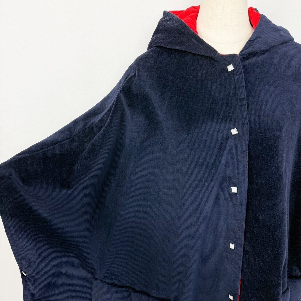 リバーシブル コーデュロイ フード付き ケープコート ポンチョ マントコート