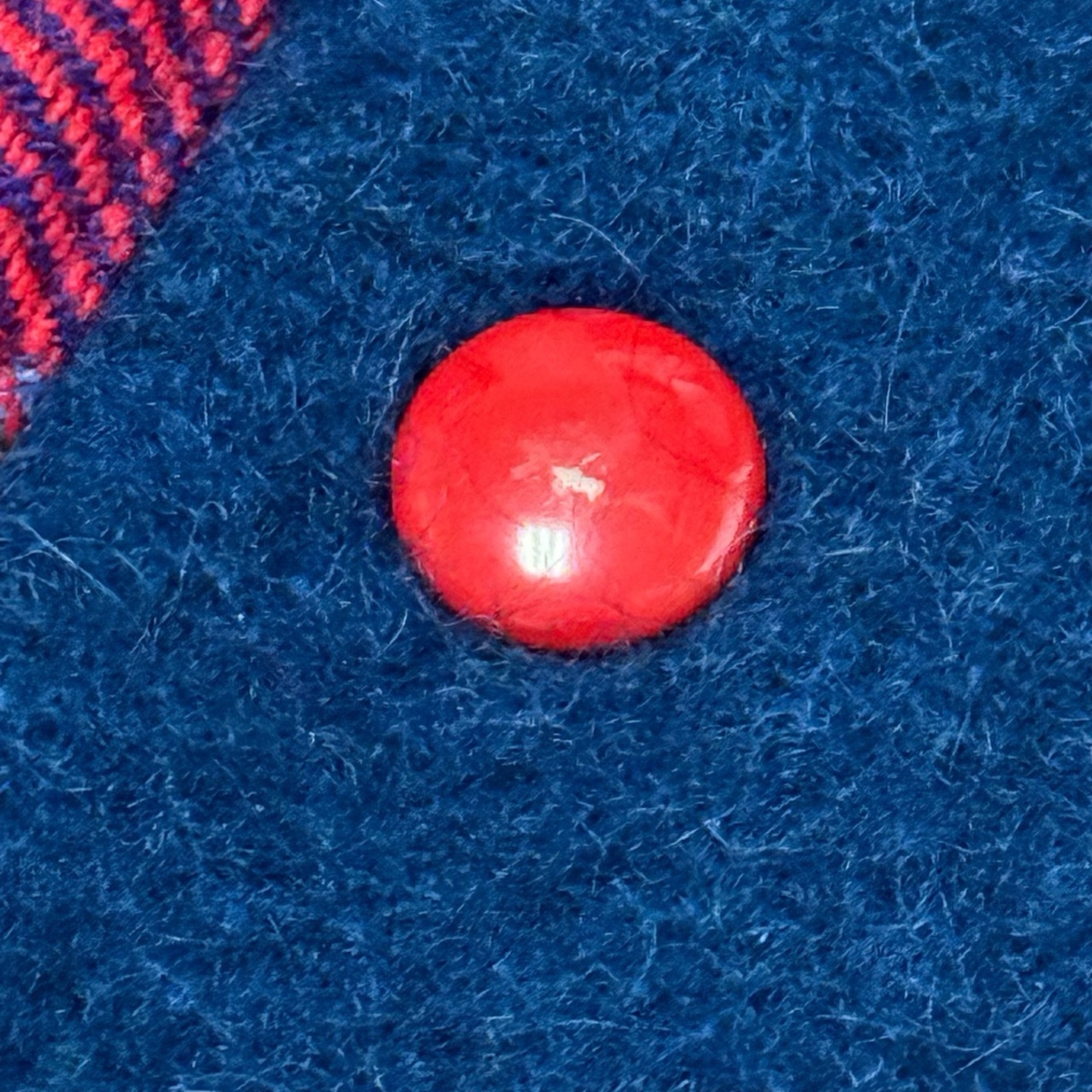 ネイビーにレッドのスナップボタンが良いアクセントになってます。