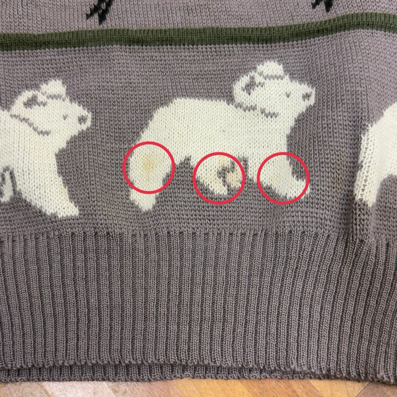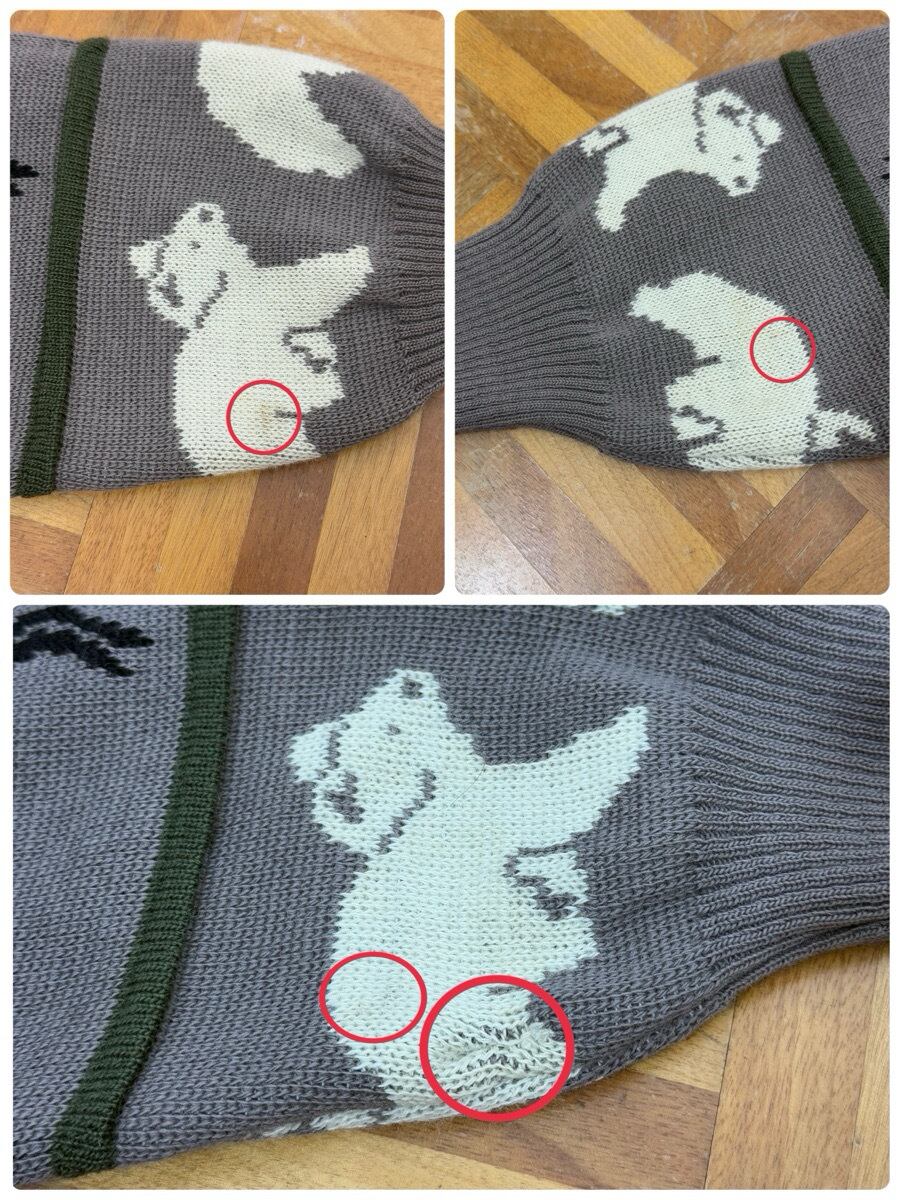 右袖先、右肩、バック右肩、リペア跡数カ所あり。袖、胸、裾上に薄汚れ数カ所あり。