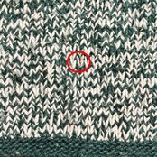 フロント中央下部分に薄汚れあり。フロント下、裾、左袖、右袖辺りを中心に複数毛玉あり。背面右肩、裾、左右袖裾辺りを中心に複数毛玉あり。