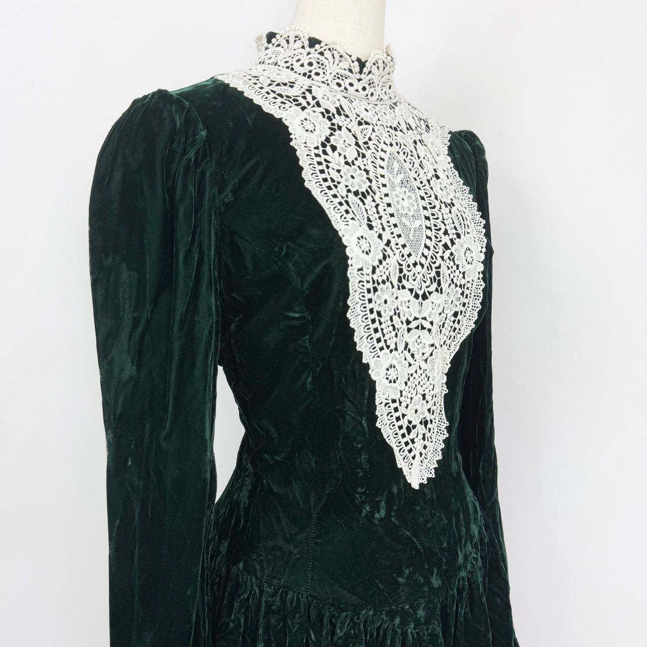 80s GUNNE SAX by JESSICA McCLINTOCK lace collar velvet dress ガニーサックス ハイネック レースデザイン パフスリーブ ベルベットドレス